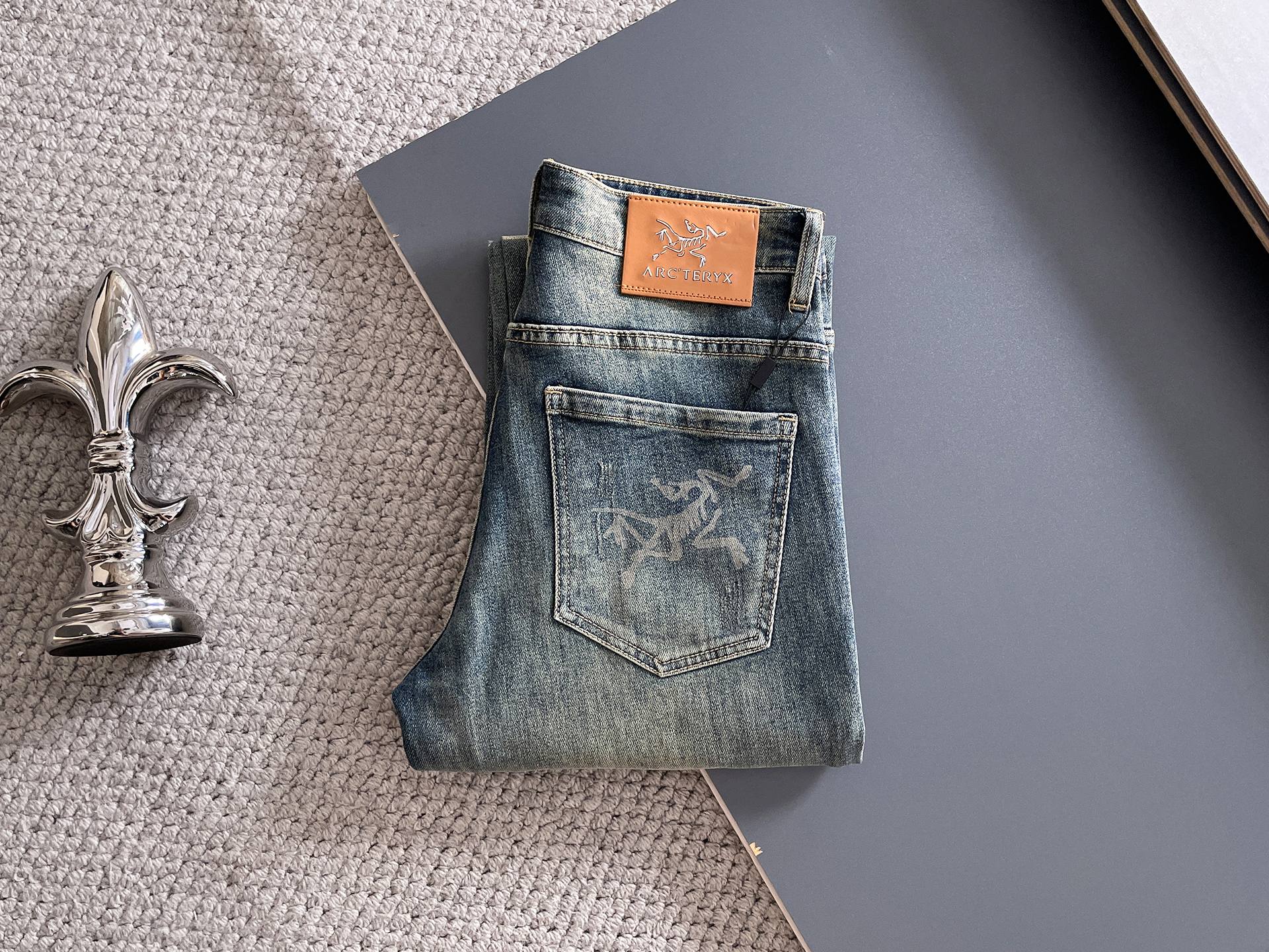 Arc* 25AW new jeans🔥 High elasticity fabric, imported custom high-end washed cloth, high breathability and comfort, impeccable details, brand element design concept, reflecting high quality. Soft and delicate texture! Presents casual tailoring, excellent fit when worn!