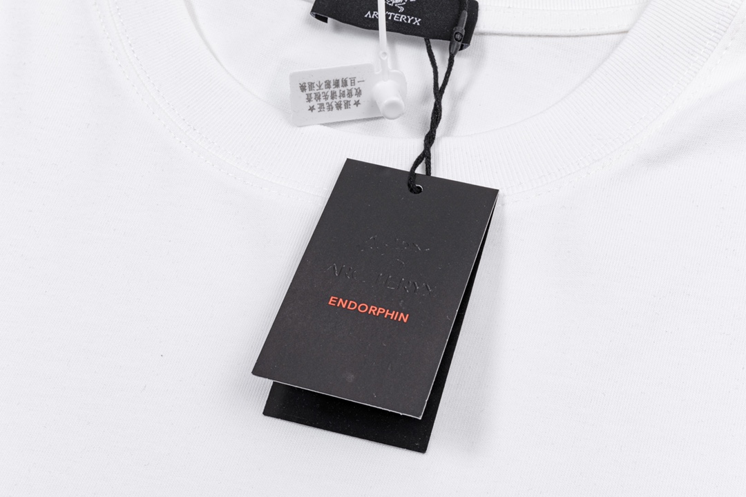 Arc'teryx logo, relaxed fit. 26s combed cotton, 280gsm. 1x1 Sorona rib. Washed fabric. Colors: White. Sizes: S-XXL.