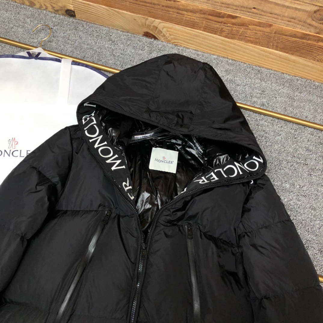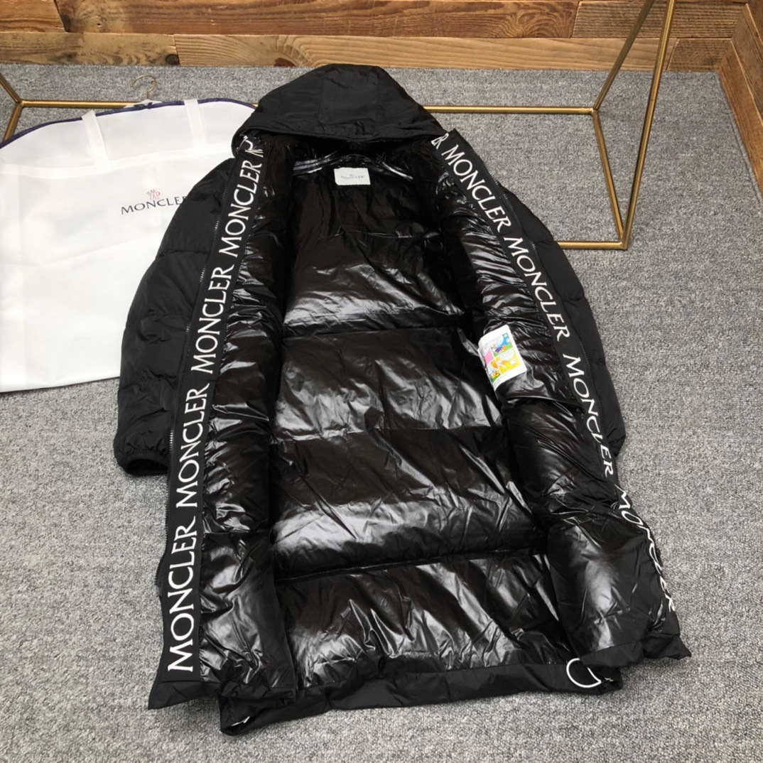 Guangzhou high version Moncler long embroidered ribbon hat black label Montclar jacket nods to those 80s brands that made Moncler a global icon. Waterproof with optimal insulation, and embroidered logo on the hood and trim, always on the podium. Down quilted nylon raincoat fabric jacket. Die-cast zipper front placket and pockets. Moncler's embroidered ribbon trim inside the hood and jacket closure. Adjustable elastic drawstring hood and hem. Technical knitted cuffs, feel the Moncler logo