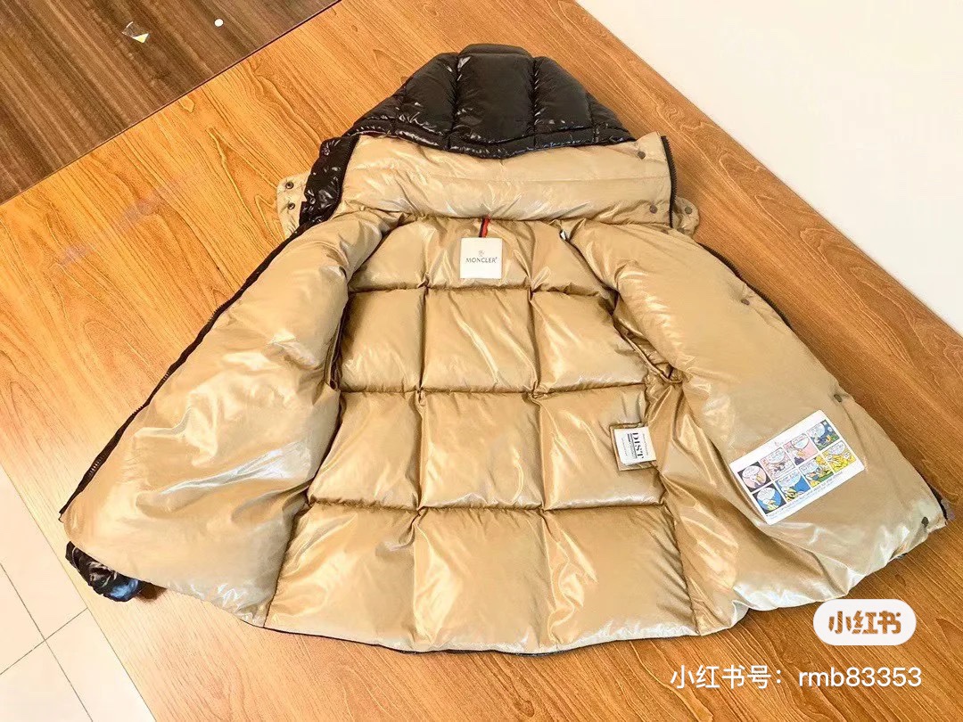 Guangzhou high version Moncler black and gold color block hooded down jacket, puffer jacket style, short style thickened