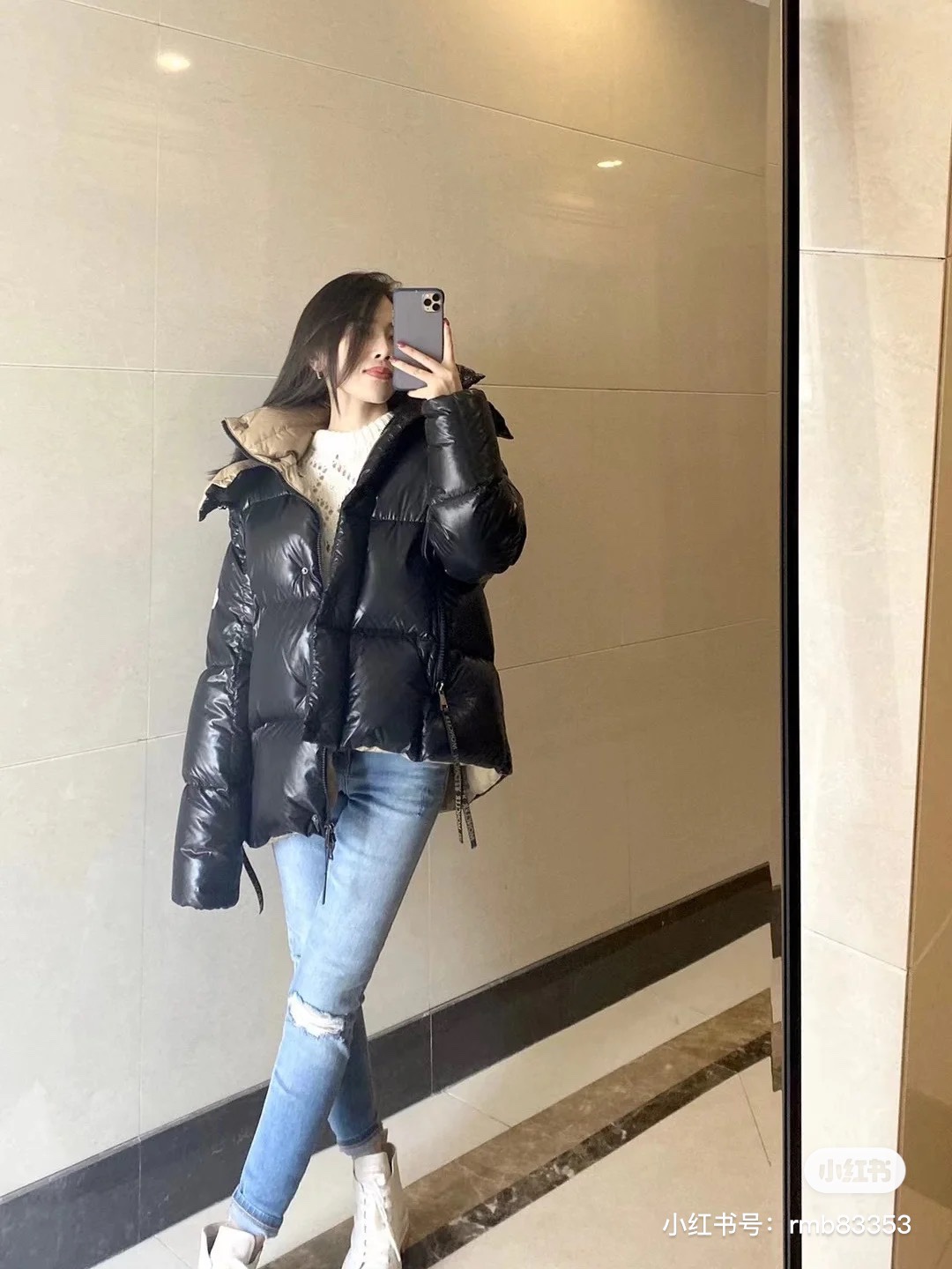 Guangzhou high version Moncler black and gold color block hooded down jacket, puffer jacket style, short style thickened Sizes: 0123.