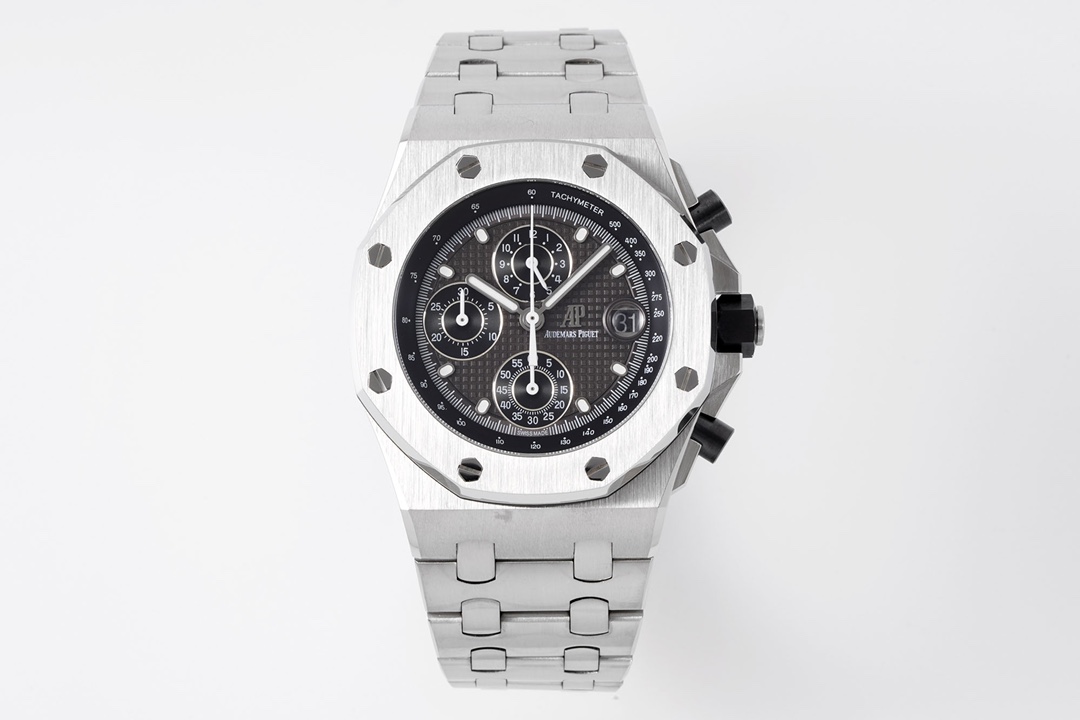 APF factory's 2023 latest Audemars Piguet Royal Oak Offshore, steel strap edition with original movable headpiece for better wrist fit. Features exclusive 4404 chronograph movement.