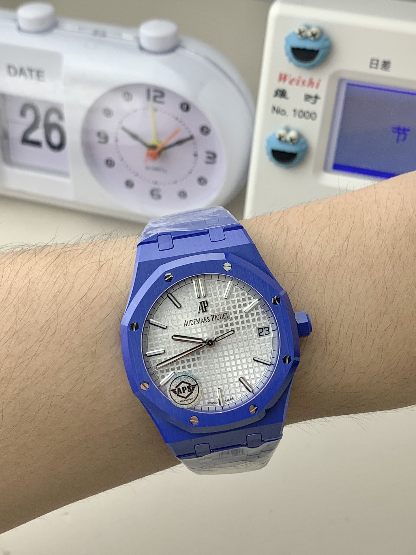 APS new Audemars Piguet 15500 full ceramic model released. Combines ceramic with Cal.4302 movement, exemplifying craftsmanship and innovation. Retains Royal Oak's classic aesthetics while breaking traditional material limits. Available in black, white, and rare blue.