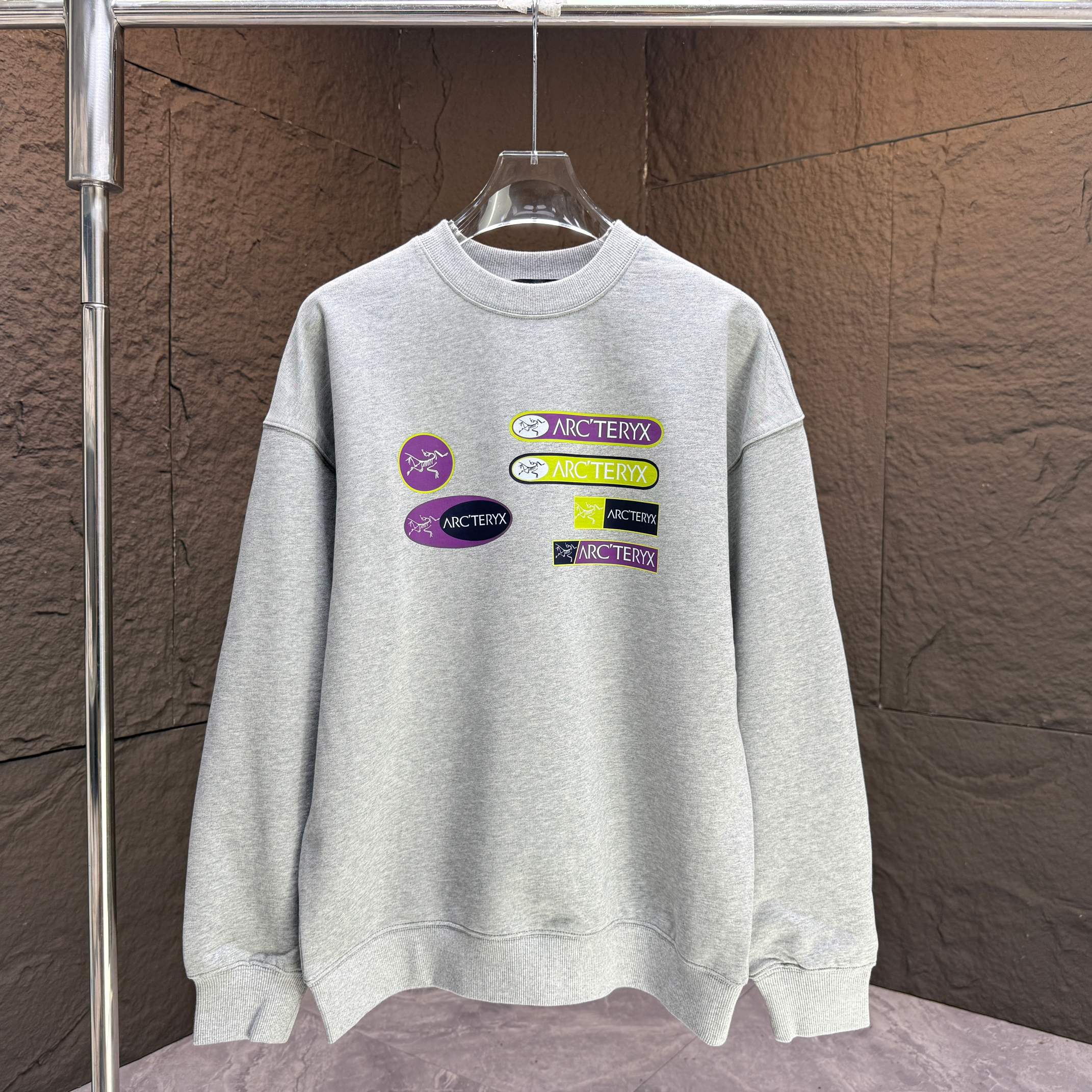 ARC Bird Brand 2025 Autumn Winter New Round Neck Sweatshirt 400g Cotton Logo Print Colors: Black White Purple Gray Sizes: S M L XL XXL