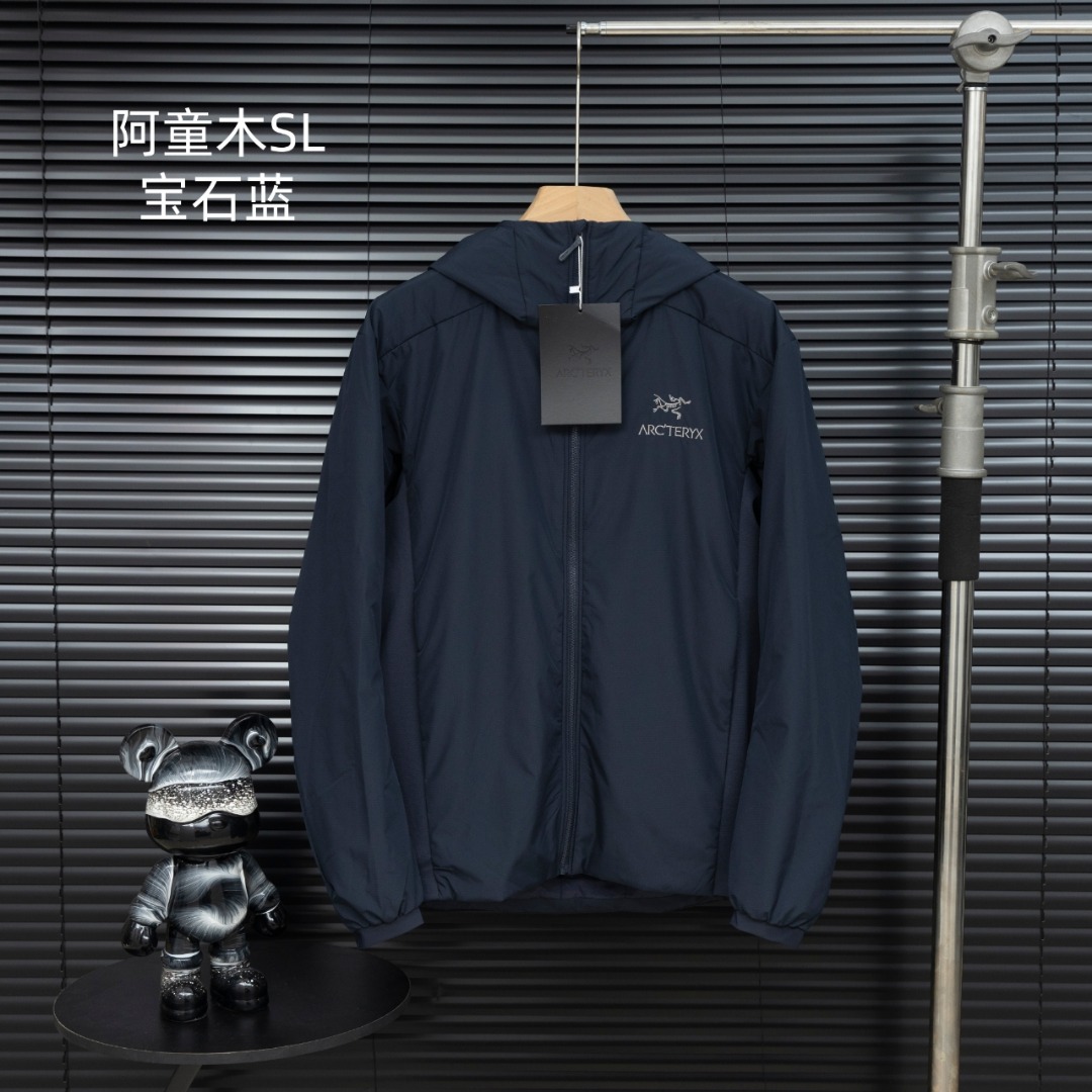 Style: Arcteryx始祖鸟 new Atom SL Hoody second generation, embroidered logo, outdoor wear-resistant, lightweight, waterproof, windproof, warm, hooded jacket, thin quilted coat