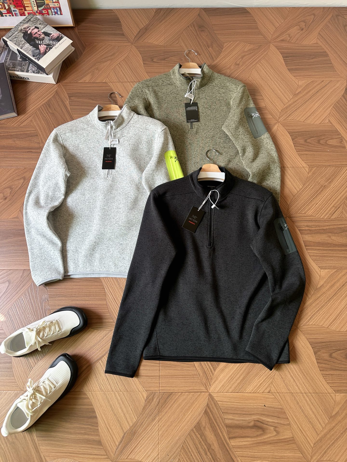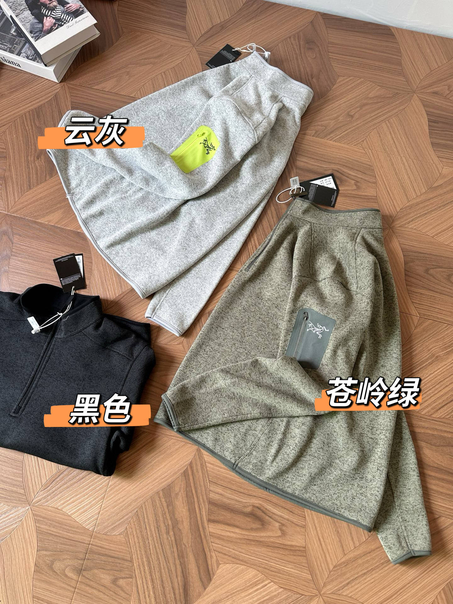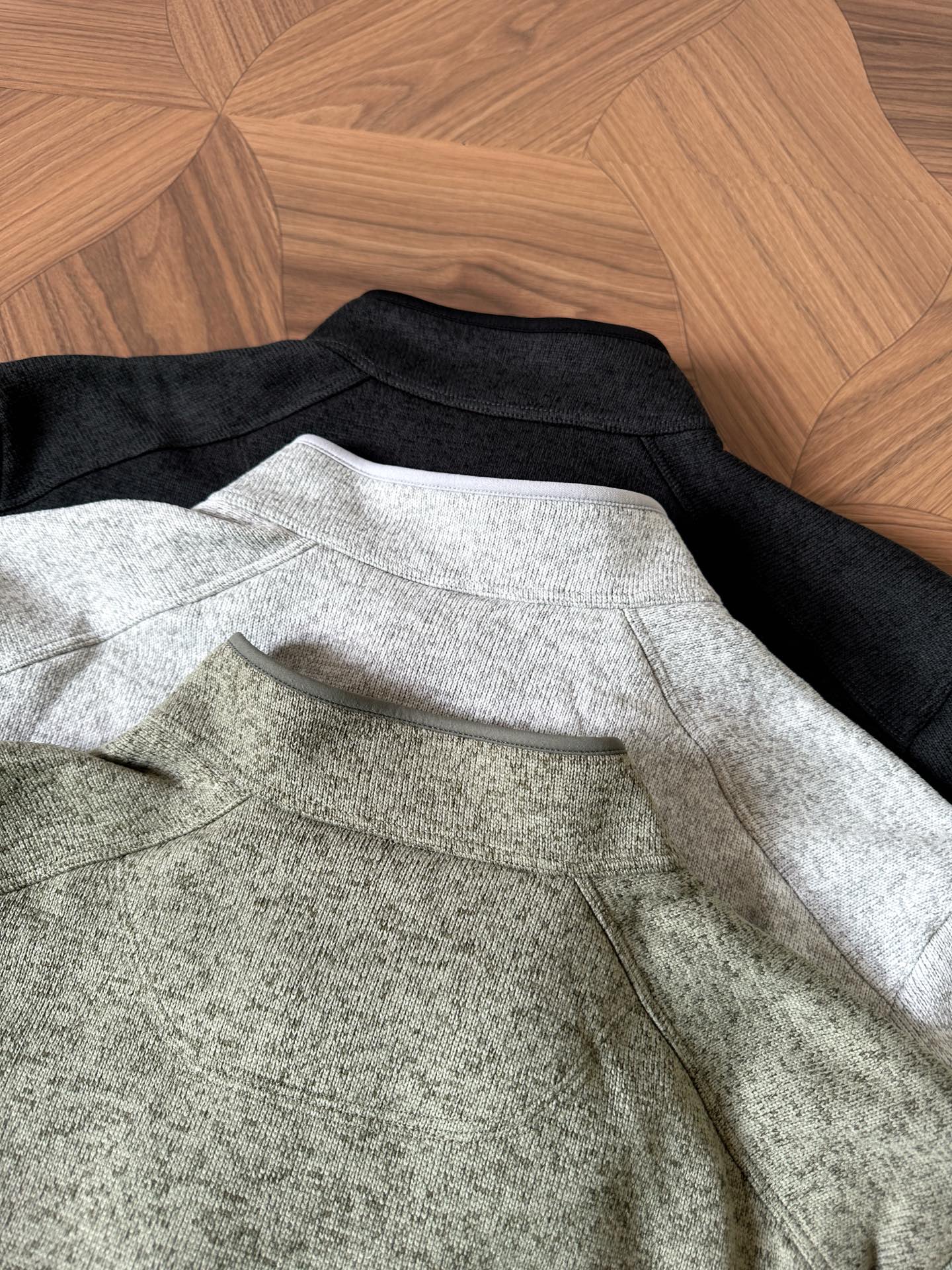 ARC'TERYX Covert 1/2 Zip fleece, high collar, warm & breathable. Colors: Cloud Gray, Sage Green, Black. Sizes L-3XL.