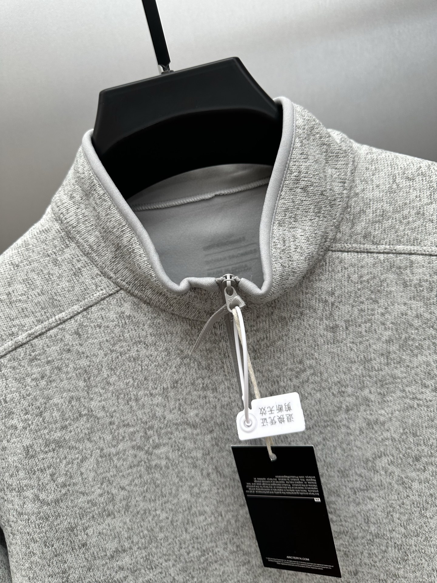 Arcteryx Covert 1/2 Zip fleece jacket, mid-layer or standalone, soft, warm, breathable. Colors: Cloud Grey. Sizes: L-3XL.