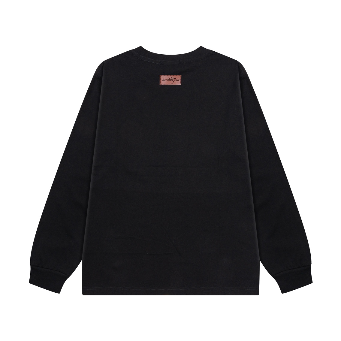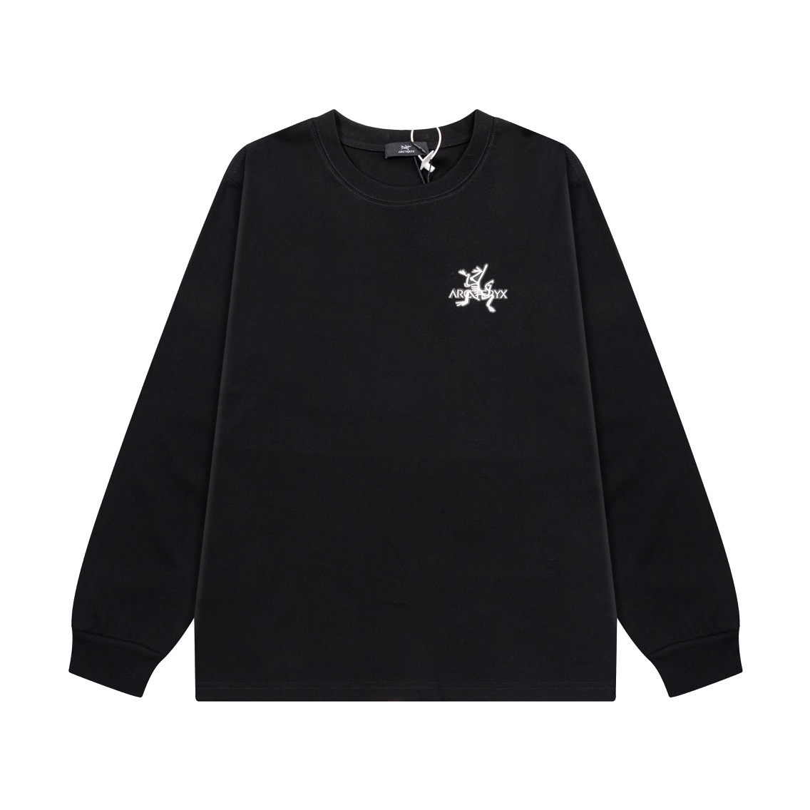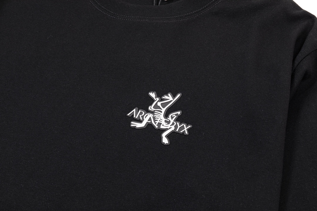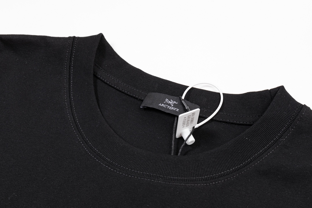 Arc'teryx logo, stylish drop shoulder. 26s combed cotton, 280gsm, 1x1 Sorona rib, relaxed fit. Colors: Black. Sizes: S-XXL.