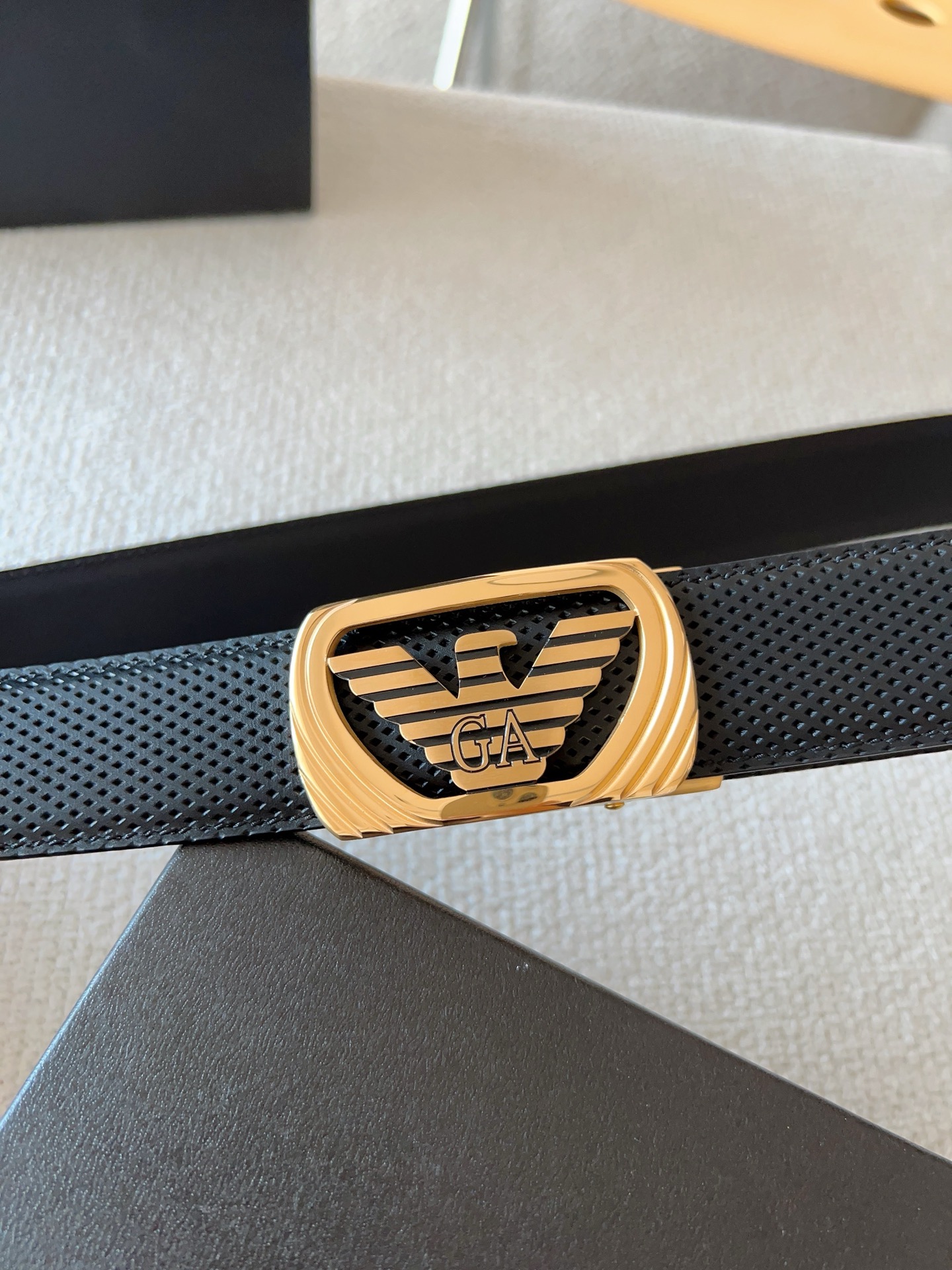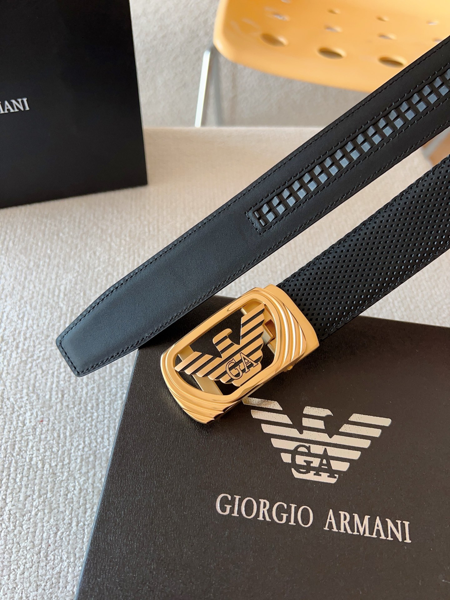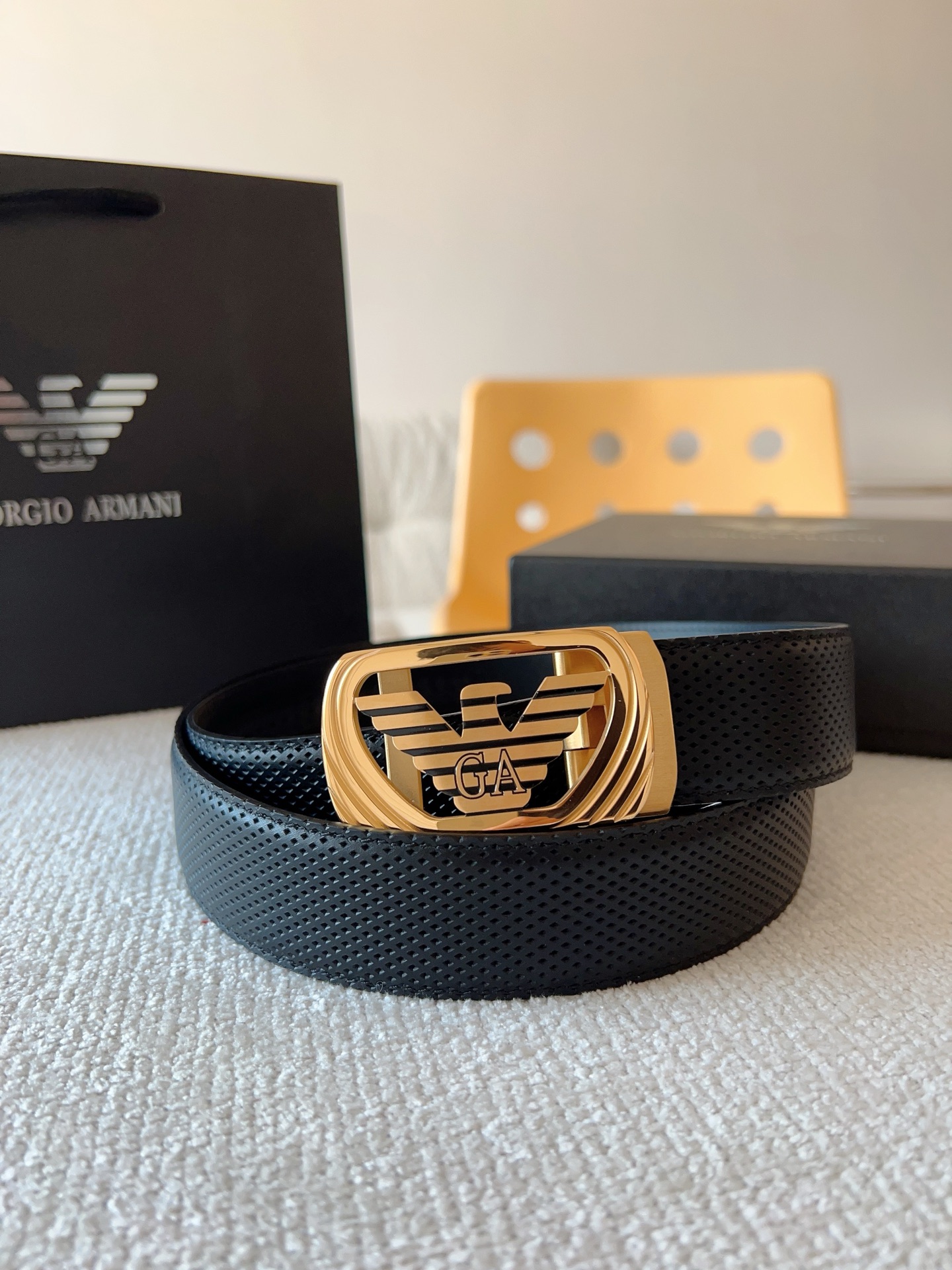 Armani custom smooth automatic buckle series. Genuine leather with steel buckle, easy to wear. Adjustable fit, 35mm width.
