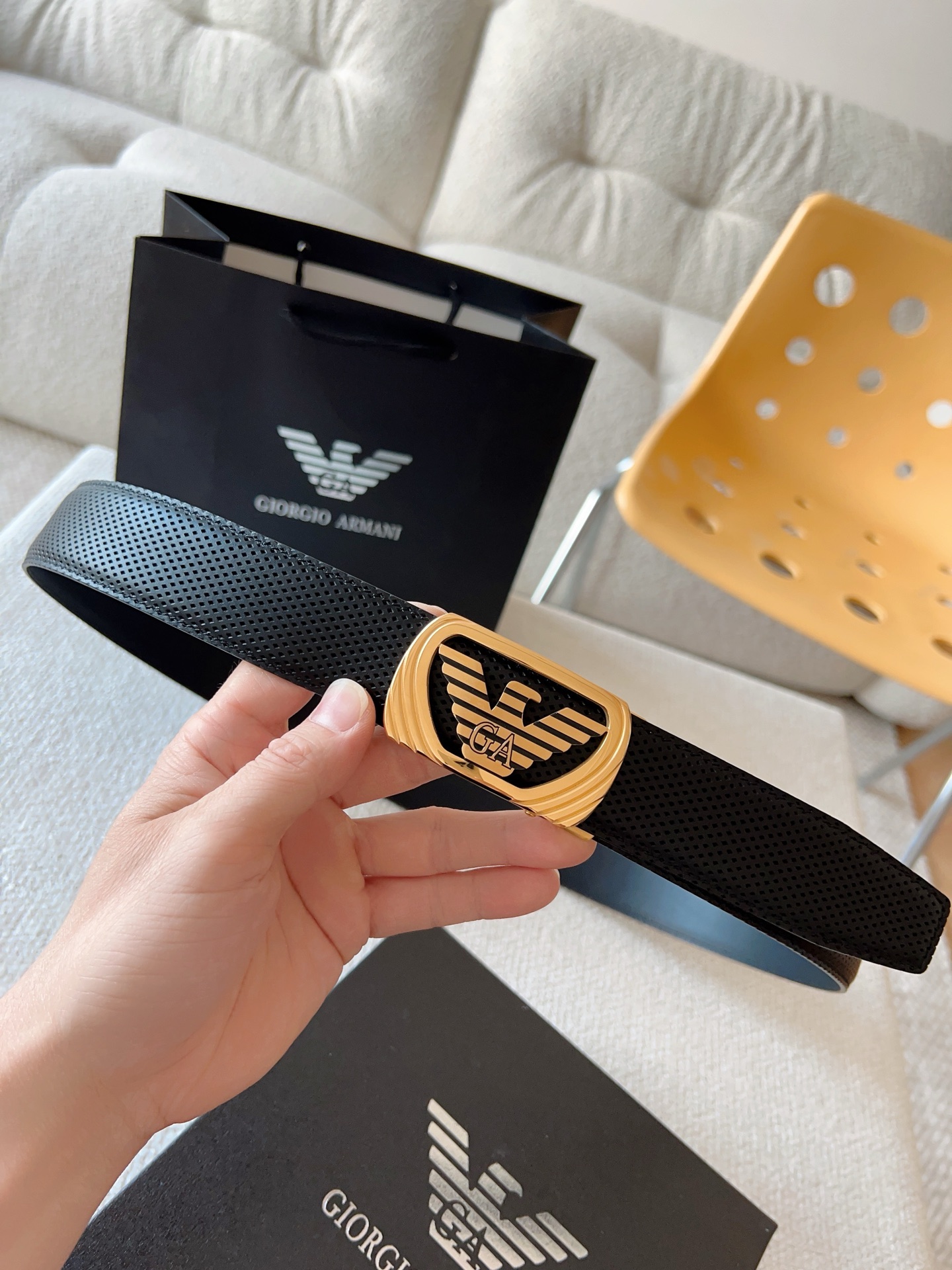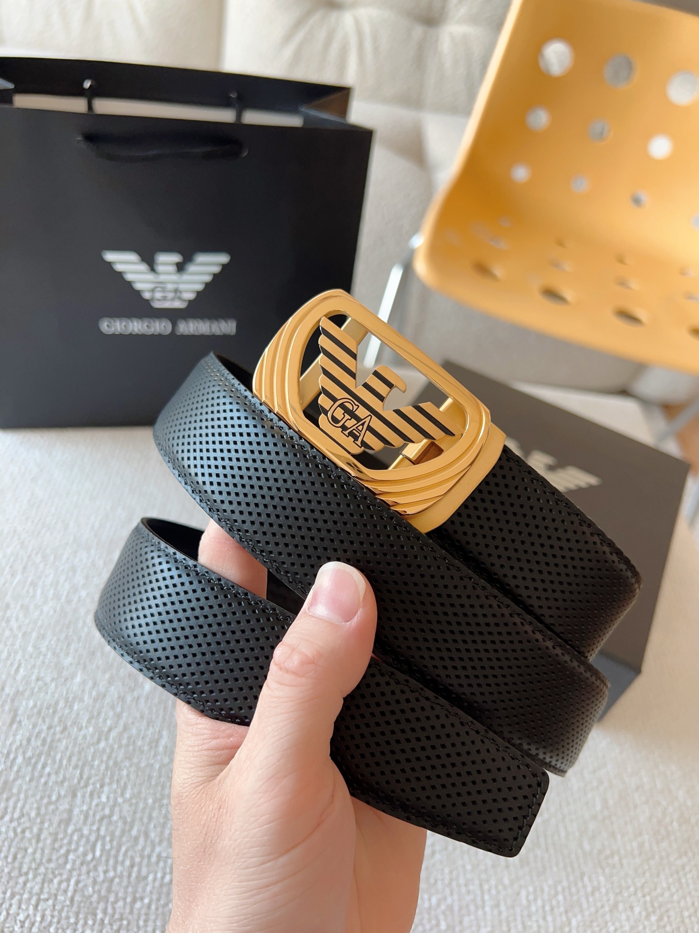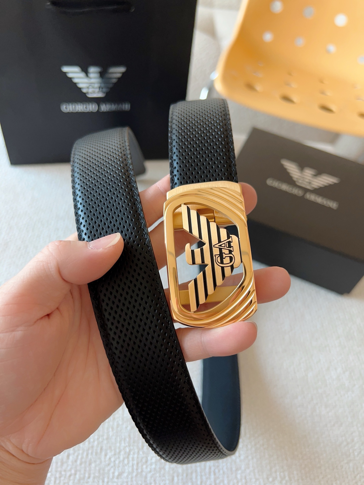Armani custom smooth automatic buckle series. Genuine leather with steel buckle, easy to wear. Adjustable fit, 35mm width.