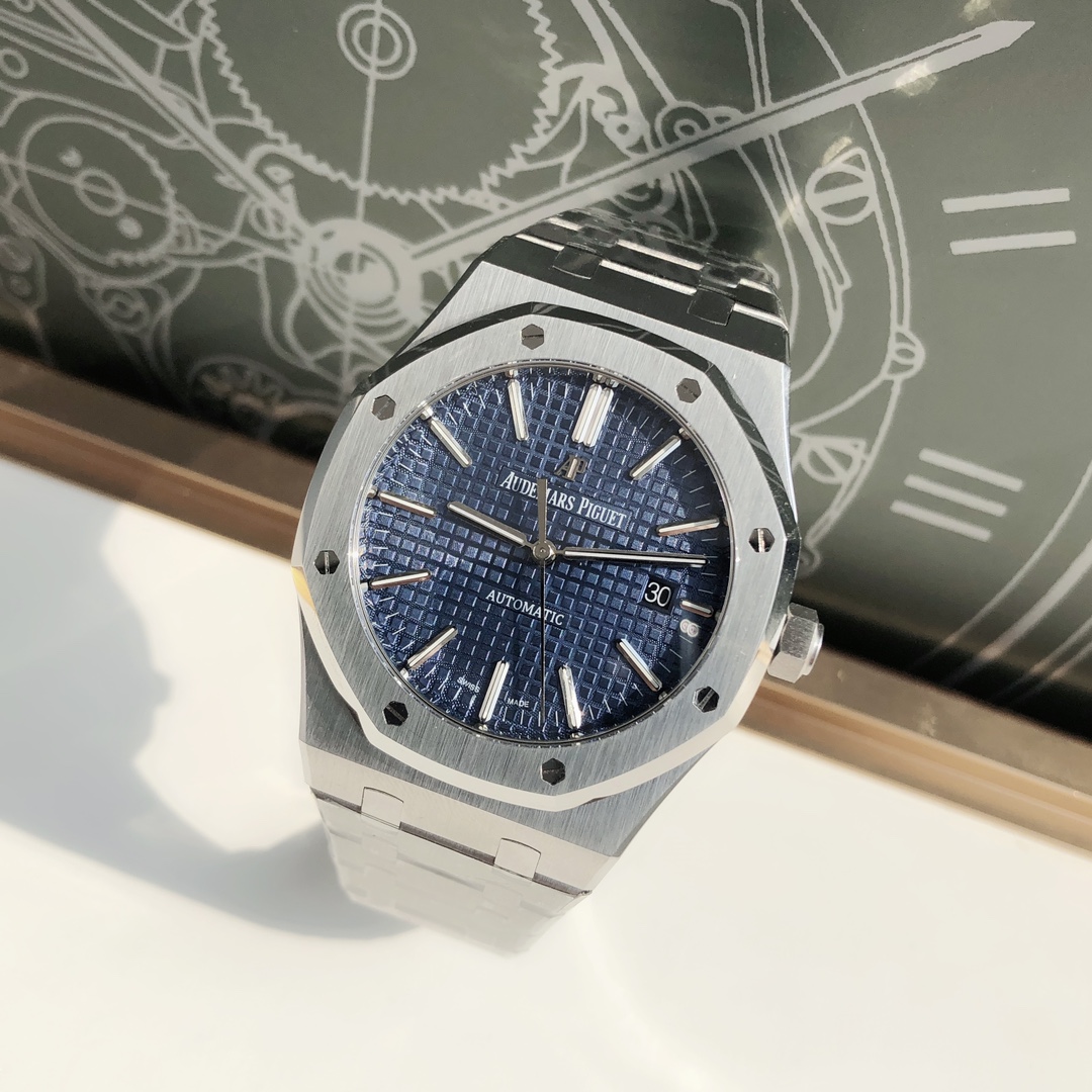 Audemars Piguet Royal Oak 15400 series top-tier original quality (rare genuine machine premium product). The only version on the market where every component is universally interchangeable with the original. Four dial colors available: black, blue, white, and gray ruthenium. The dial features a large "Grande Tapisserie" decorative pattern, paired with white gold three-dimensional luminescent hour markers and Royal Oak hands. Known as the strongest "King of Steel Watches," AP best showcases a man's powerful style and charm! The dial size is 41mm, thickness 9.8mm, identical to the original. The case and bracelet are made from imported high-quality steel material, hard and wear-resistant. The fine brushing on the case and bracelet, without sharp edges, perfectly replicates the meticulous attention to detail of the original, exquisite and refined, deeply reflecting the noble aura of the Steel King. The bracelet's end links connecting to the case feature a movable end link design consistent with the original. The clasp's opening and closing feel and the engraving craftsmanship in various parts are all identical to the original. The dial workmanship and color show no difference from the original. The case back is brushed and polished from high-quality steel, with a sapphire crystal that is clear and transparent, allowing an unobstructed view of the movement's operation through the glass case back. The movement is equipped with the original 3120 model movement, a true free-sprung integrated movement. The direction of the movement's balance wheel can indicate whether it is consistent with the original. Many movements on the market are exaggerated as 9015 with overlay plates; those who understand know. You get what you pay for; higher price has its reasons! Professional lifetime warranty; only charging for component costs if damaged by human factors, achieving perfect humanized service and customer satisfaction index! Full set of packaging from the counter. Ideal for gifting or personal use!