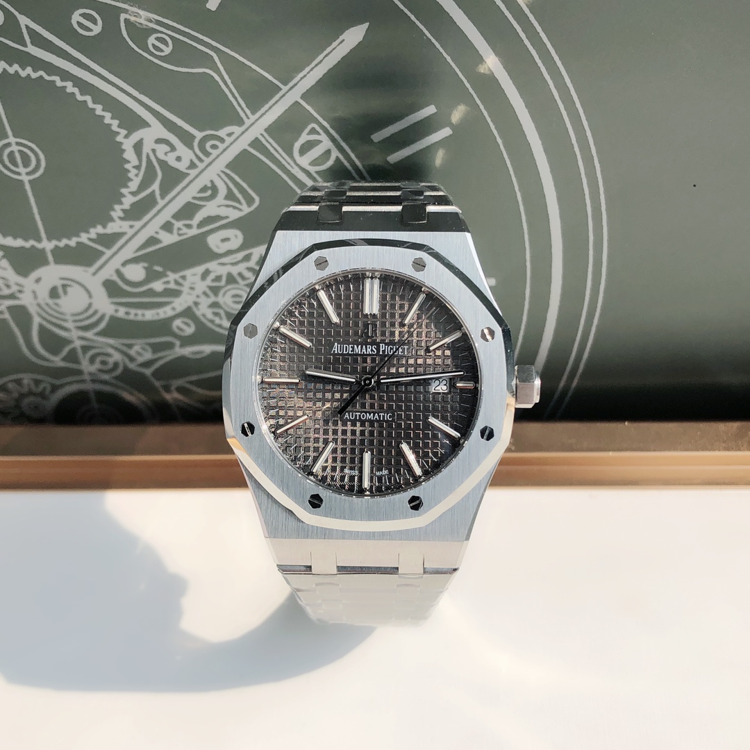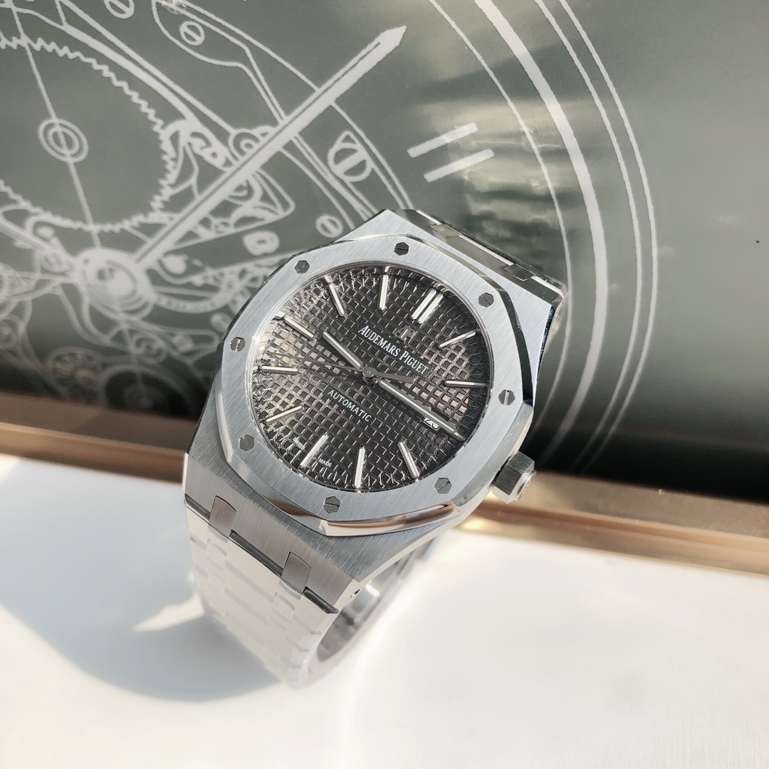 Audemars Piguet Royal Oak 15400 series top-tier original quality (rare genuine machine premium goods). The only version on the market where every component is universally interchangeable with the original. Four dial colors available: black, blue, white, and gray ruthenium. The dial features a large "Grande Tapisserie" decorative pattern, paired with white gold three-dimensional luminescent hour markers and Royal Oak hands. Known as the strongest "King of Steel Watches," AP best showcases a man's robust style and charm! The dial size is 41mm, thickness 9.8mm, identical to the original. The case and bracelet are made from imported fine steel material, hard and wear-resistant. The fine brushing on the case and bracelet, without sharp edges, perfectly replicates the meticulous attention to detail of the original, exquisite and refined, deeply reflecting the noble aura of the Steel King. The bracelet's end links connecting to the case feature a movable end link design consistent with the original. The clasp's opening and closing feel and the engraving craftsmanship in various parts are all identical to the original. The dial workmanship and color show no difference from the original. The case back uses fine steel brushing and polishing, with a sapphire crystal that is clear and transparent, allowing an unobstructed view of the movement's operation through the glass back. The movement is equipped with the original 3120 model movement, a true free-sprung integrated movement. The direction of the movement's balance wheel can indicate whether it is consistent with the original. Many movements on the market are exaggerated as 9015 with overlay plates; those who understand know. You get what you pay for; higher price has its reasons! Professional lifetime warranty; only charging for component costs if damaged by human factors, achieving perfect humanized service and customer satisfaction index! Full set of packaging from the counter. Ideal for gifting or personal use!