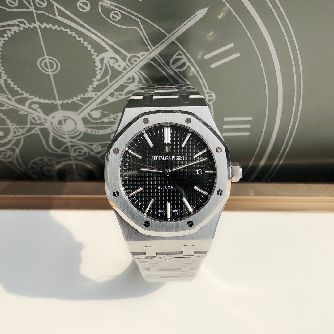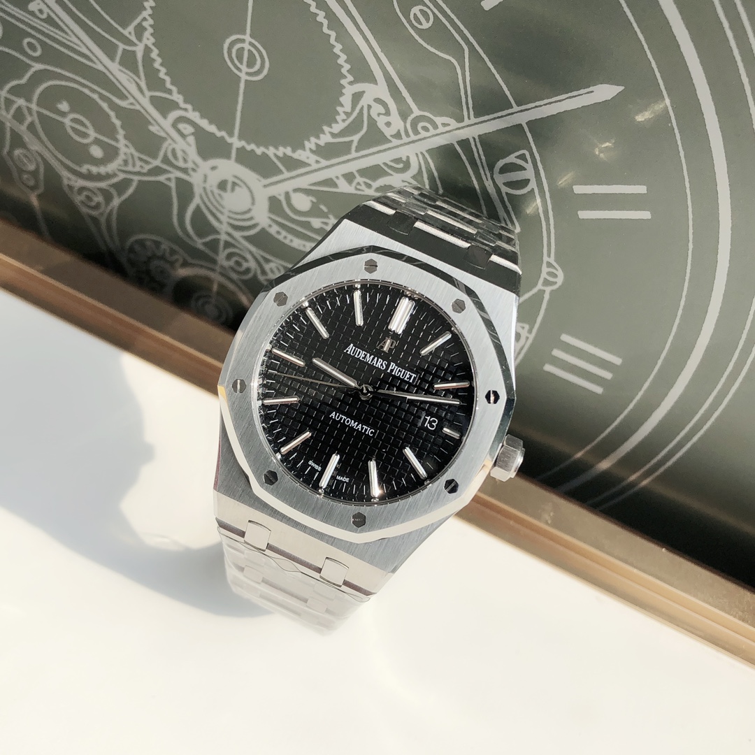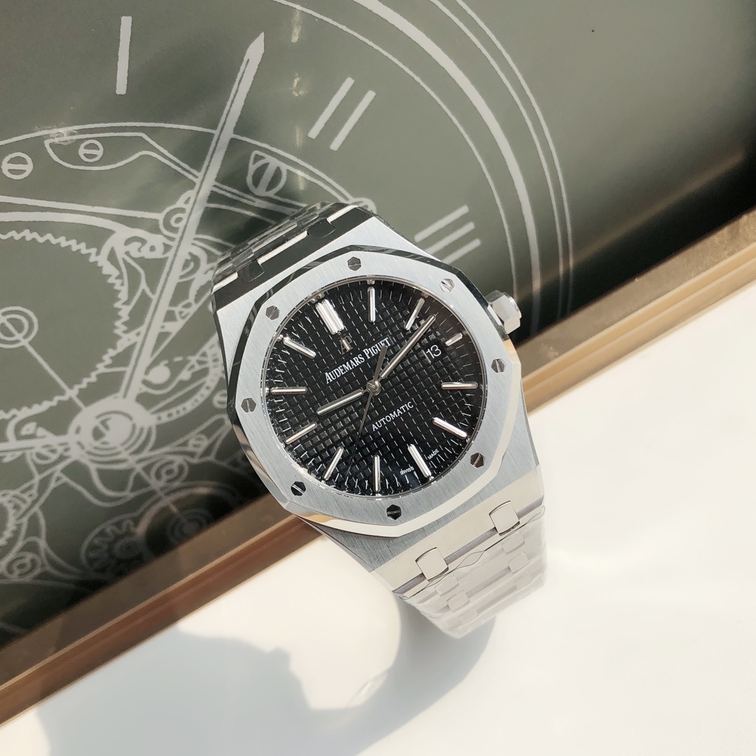 Audemars Piguet Royal Oak 15400 series top-tier original quality (rare genuine unit). The only version on the market where every component is universally interchangeable with the original. Four dial colors available: black, blue, white, and gray ruthenium. The dial features a "large checkerboard" decorative pattern paired with white gold three-dimensional luminescent hour markers and Royal Oak hands. Known as the strongest "King of Steel Watches," AP best showcases a man's powerful style and charm! The dial size is 41mm, thickness 9.8mm, identical to the original. The case and bracelet are made from imported premium steel, offering hardness and wear resistance. The fine brushing on the case and bracelet, without sharp edges, perfectly replicates the meticulous attention to detail of the original, exuding a noble aura befitting the steel king. The bracelet's end links feature a movable design consistent with the original at the connection point with the case. The clasp's switching feel and the engraving craftsmanship in various parts are identical to the original. The dial workmanship and color show no deviation from the original. The case back is crafted with brushed steel and features a sapphire crystal, clear and transparent, allowing a full view of the movement's operation. The movement is equipped with the original 3120 model, a true free-sprung integrated movement. The direction of the movement's balance wheel indicates whether it matches the original. Many in the market boast about movements, but those using 9015 with decorative plates are understood by those in the know. You get what you pay for; higher price has its reasons! Professional lifetime warranty; only charging for component costs in case of human factors, achieving perfect humanized service and customer satisfaction! Full set packaging from the counter. Ideal for gifting or personal use!