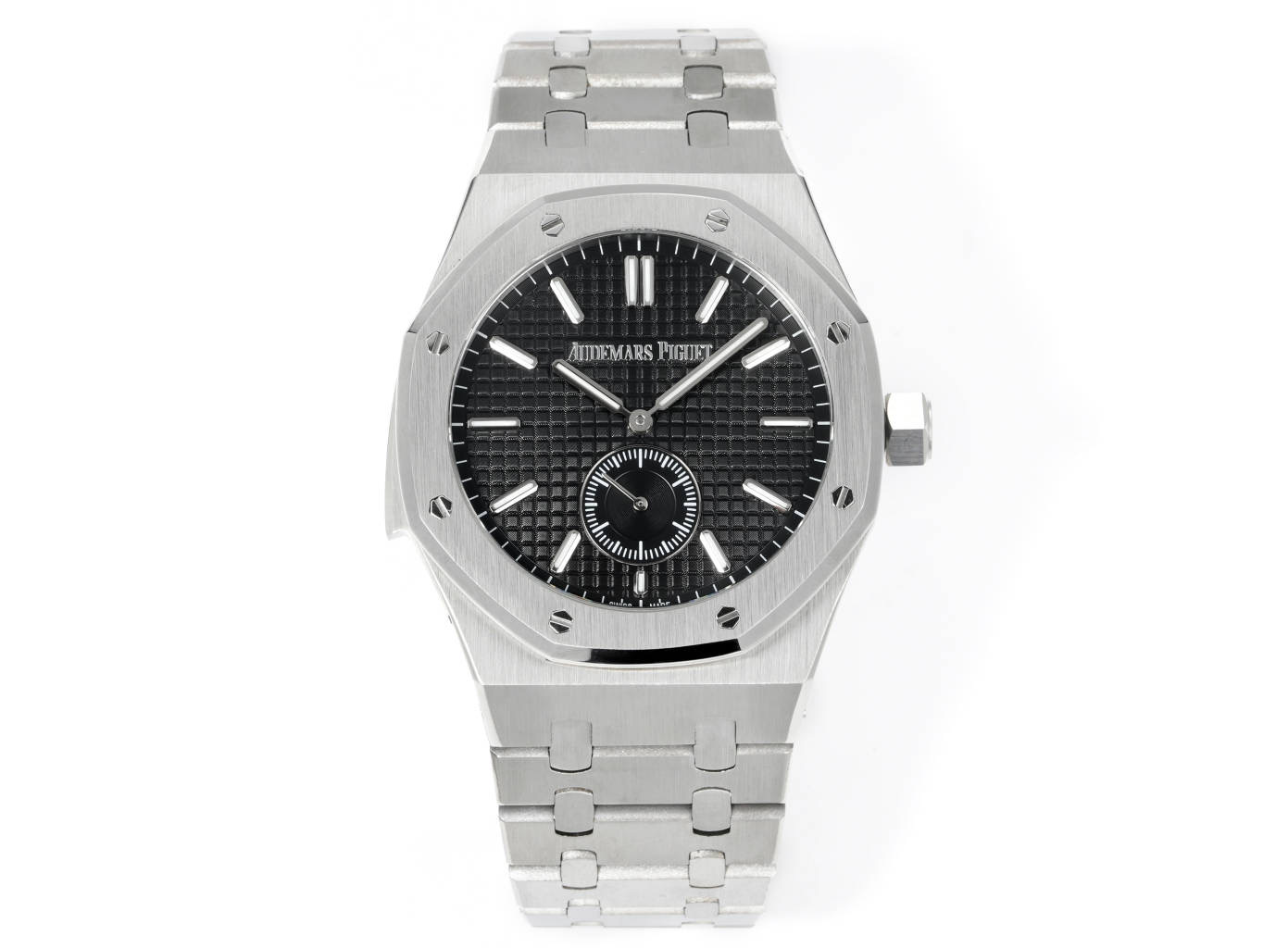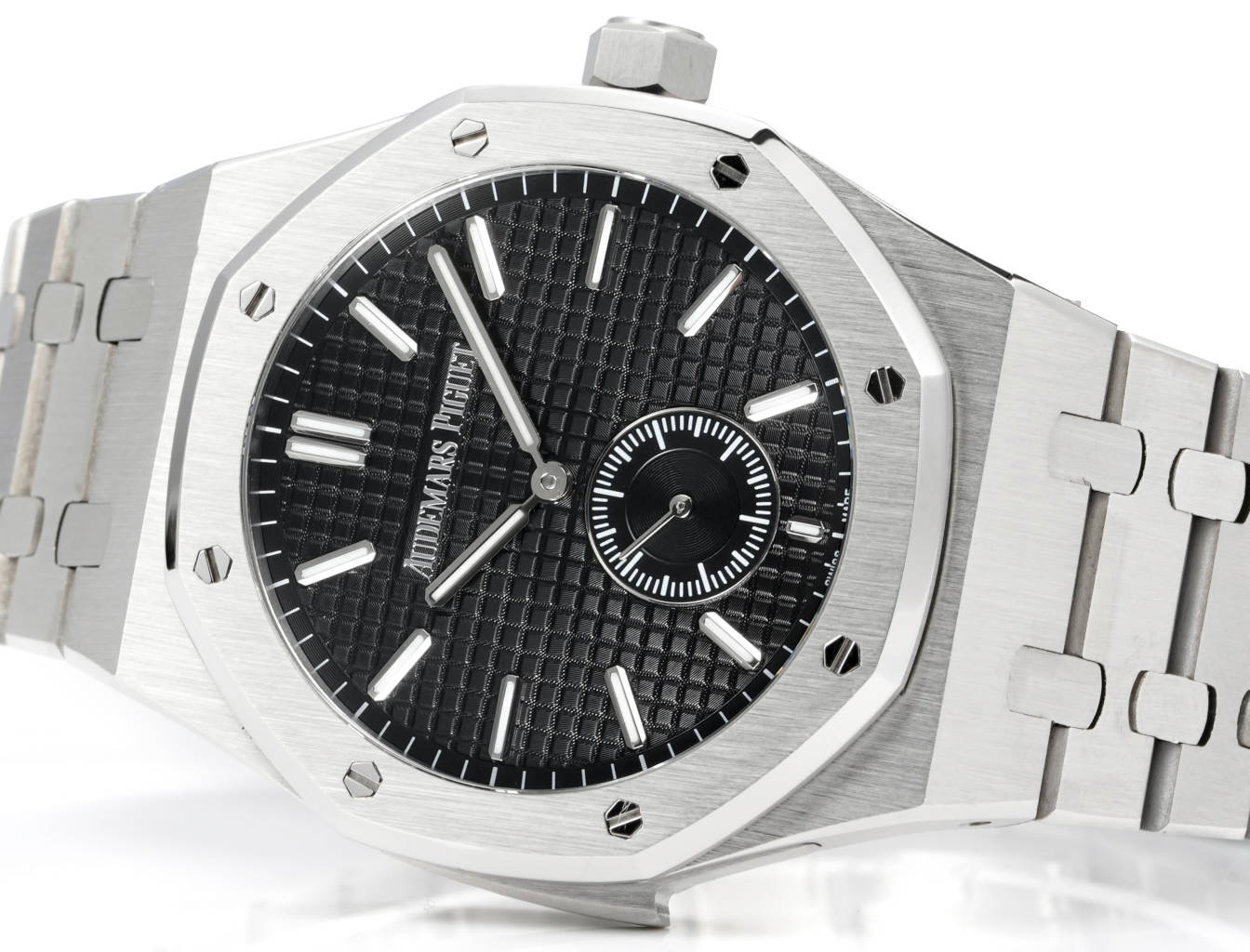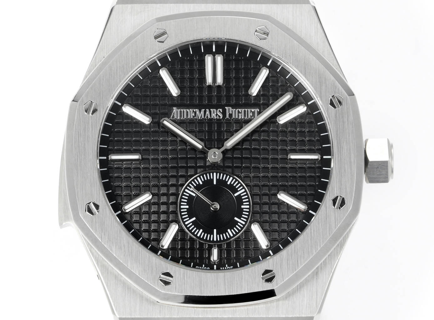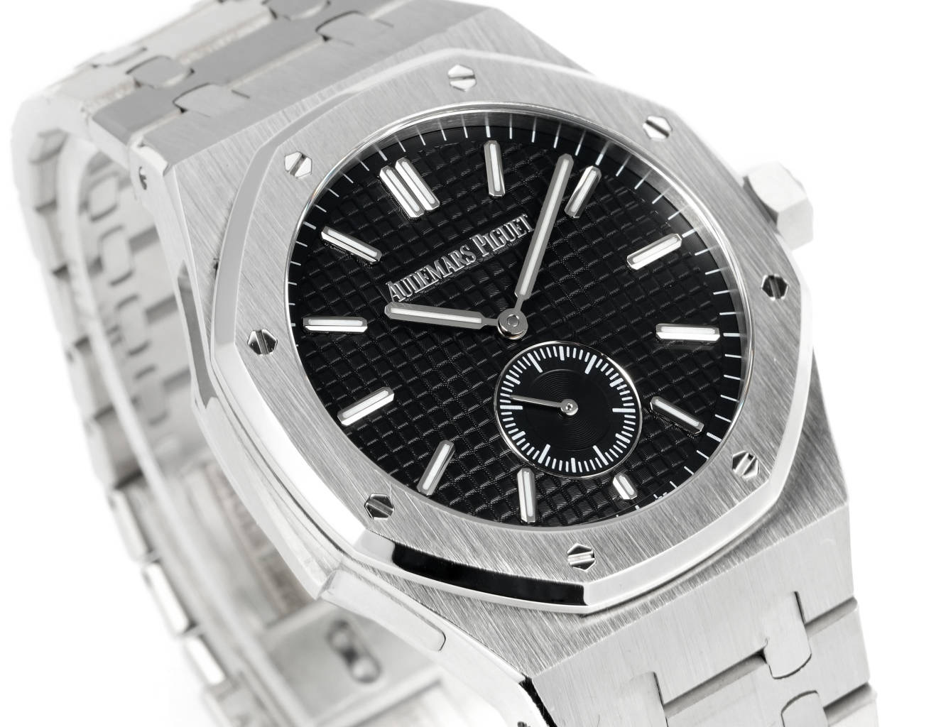 Paired with white gold luminous hour markers and Royal Oak hands, experience the sophistication and feel the difference! A must-have masterpiece!