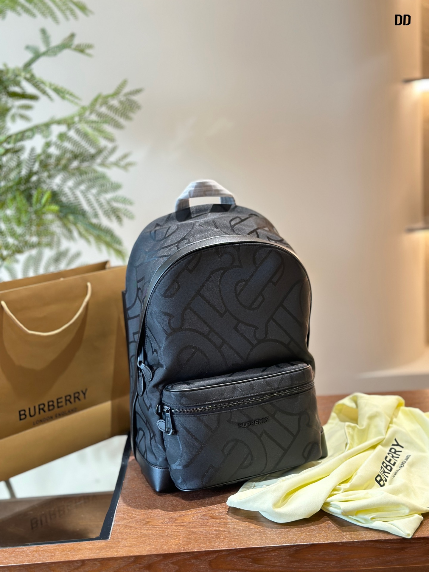 This style and color are not Burberry's traditional beige British style. It features an all-over print of the Burberry logo on a black base, making it more low-key and steady without losing its grandeur. The texture is truly impeccable. Those who want to buy a backpack recently can take a look. Both students and office workers can purchase it, and it is also very suitable for business professionals! 32×40