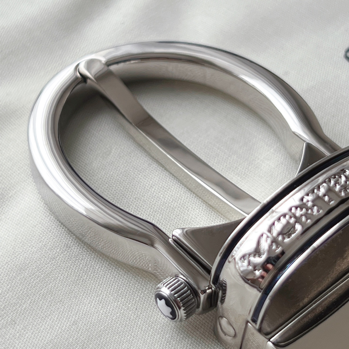 Rectangular frame black cross-grain printed leather and stainless steel decorative buckle. Adjustable length, 3.0 cm x 120 cm, cross-grain printed black leather belt