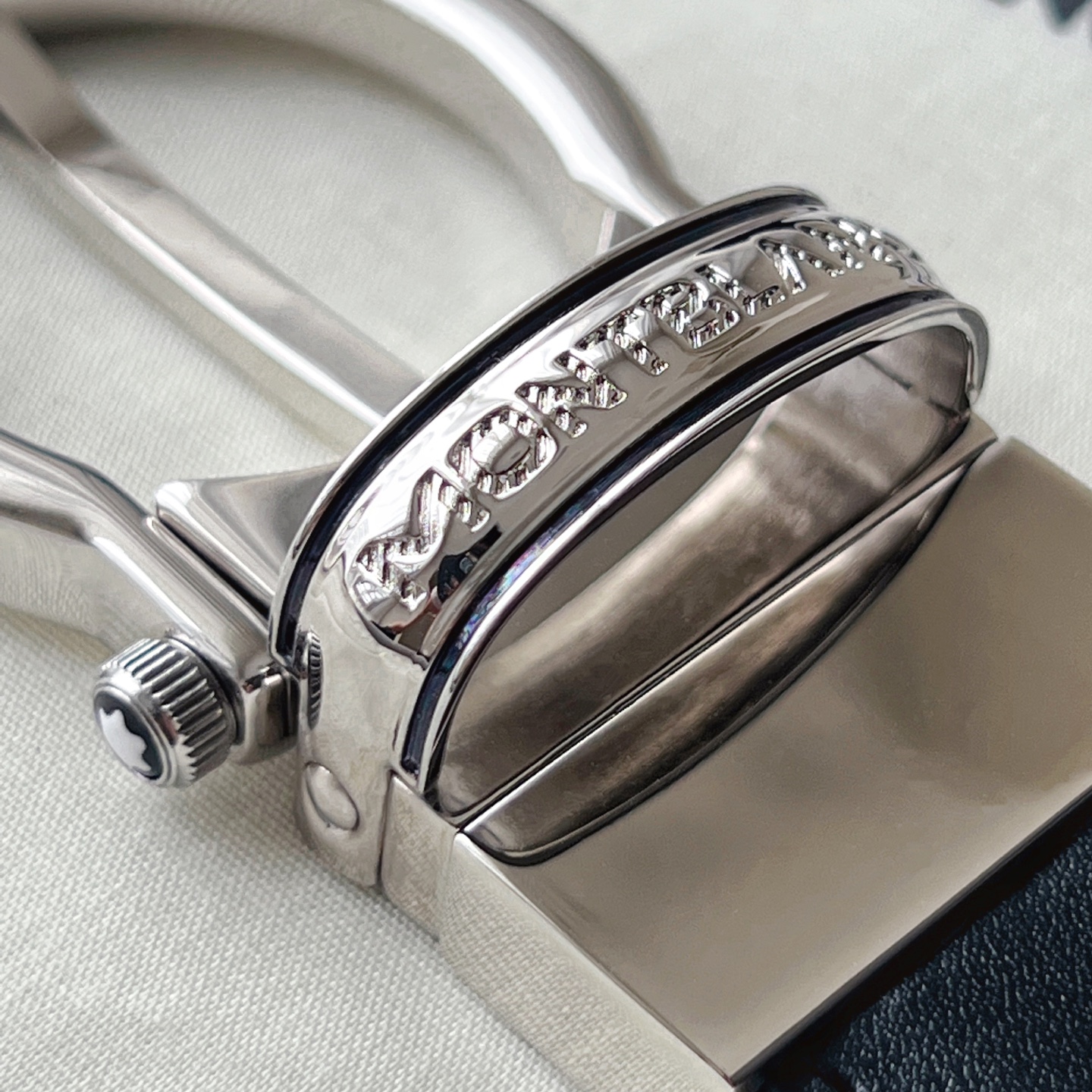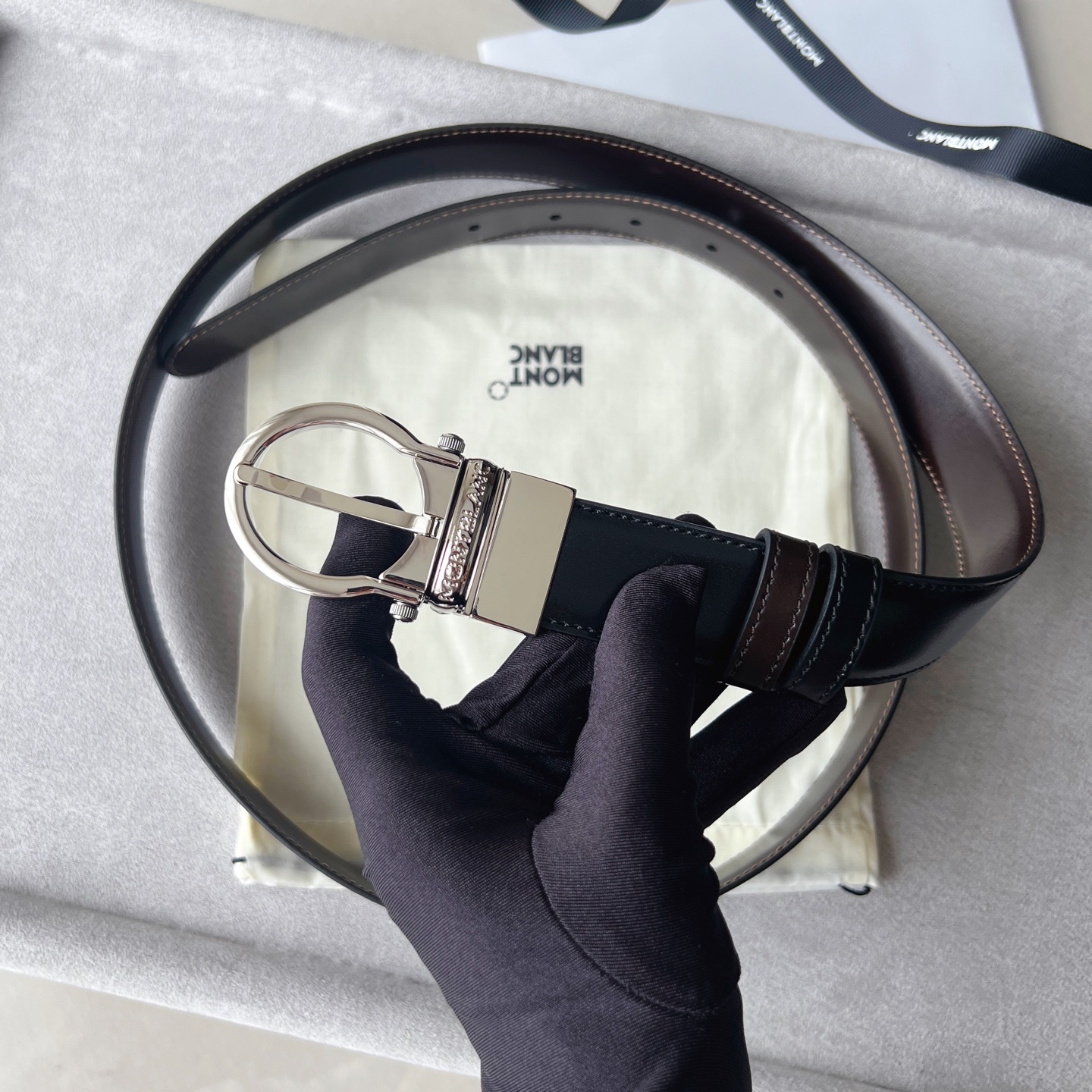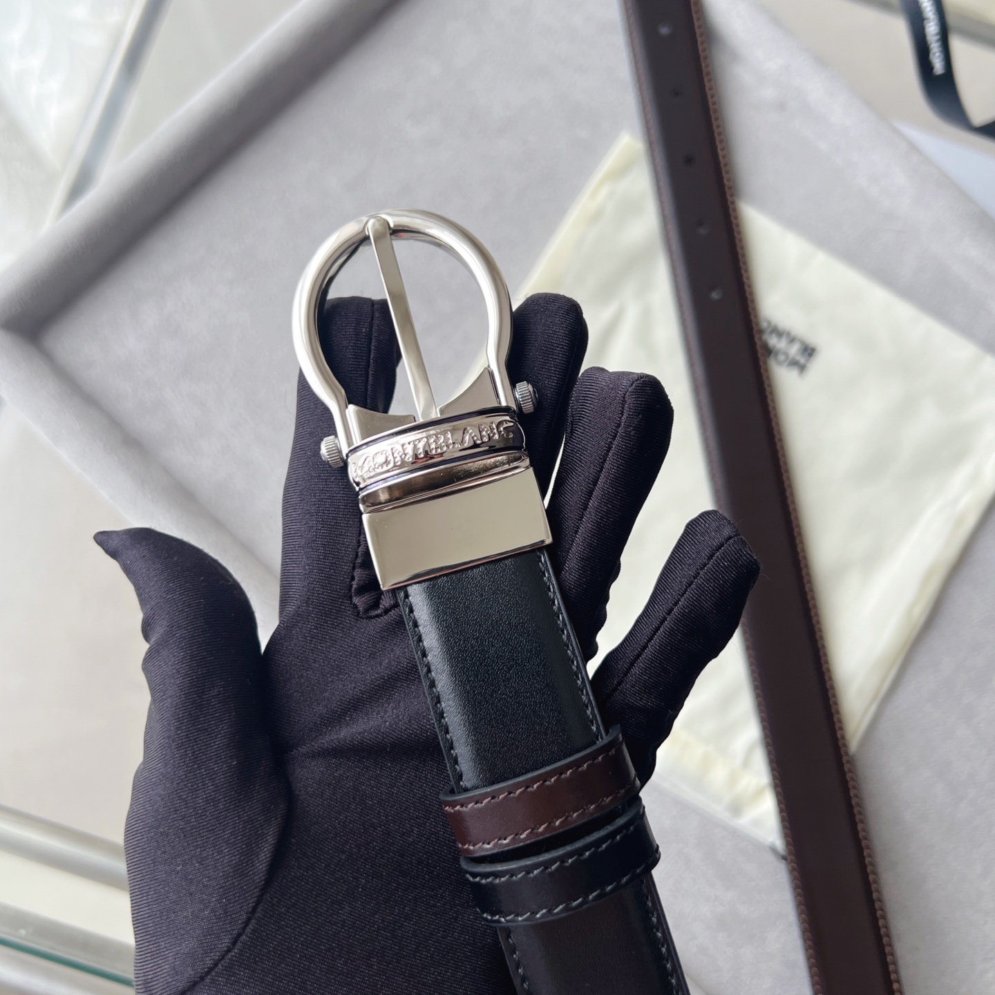 Black leather belt with rectangular steel buckle, adjustable length 3.0cm x 120cm.