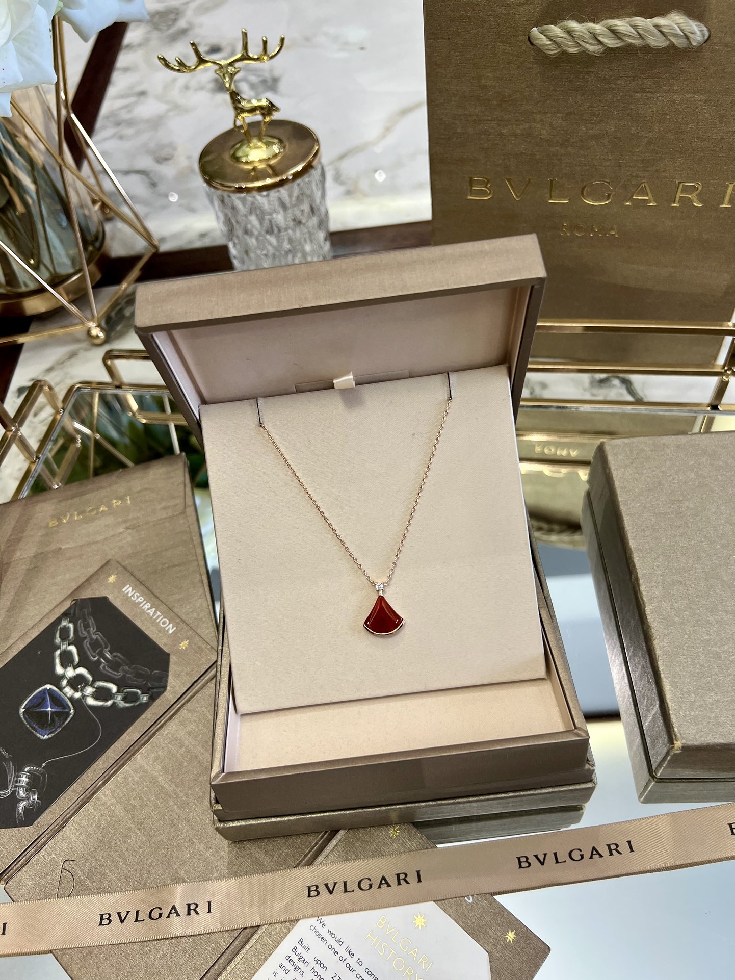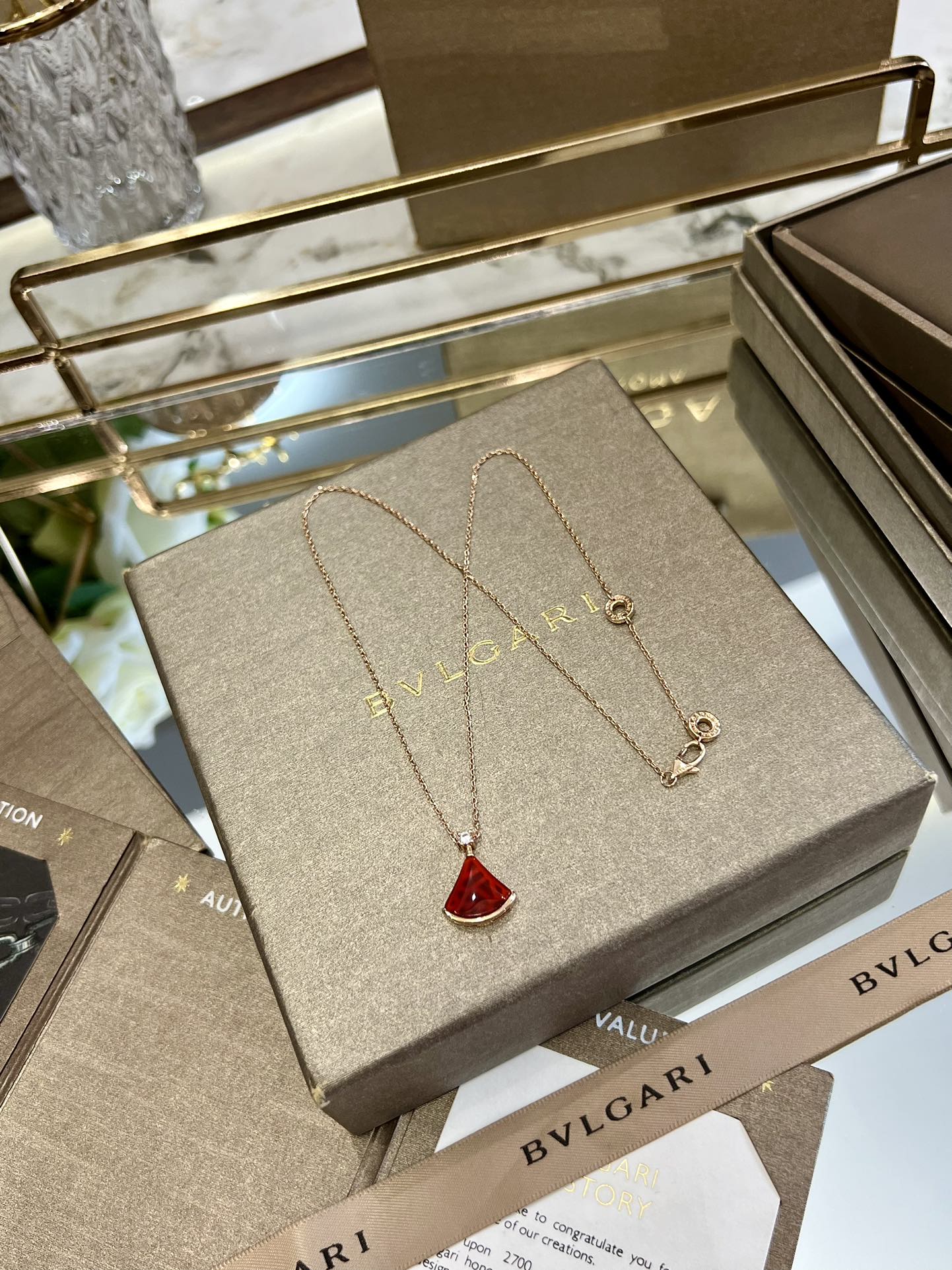 【B H】p (additional 30 for picture packaging) Bulgari dress necklace, latest counter Bulgari high-end original clasp original engraving beautiful small dress diva series necklace high-end 1:1 custom popular, fan-shaped necklace luxury beautiful in-store stock necklace length 44cm Original title: 【B H】p (additional 30 for picture packaging) Bulgari dress necklace, latest counter Bulgari high-end original clasp original engraving beautiful small dress diva series necklace high-end 1:1 custom popular, fan-shaped necklace luxury beautiful in-store stock necklace length 44cm