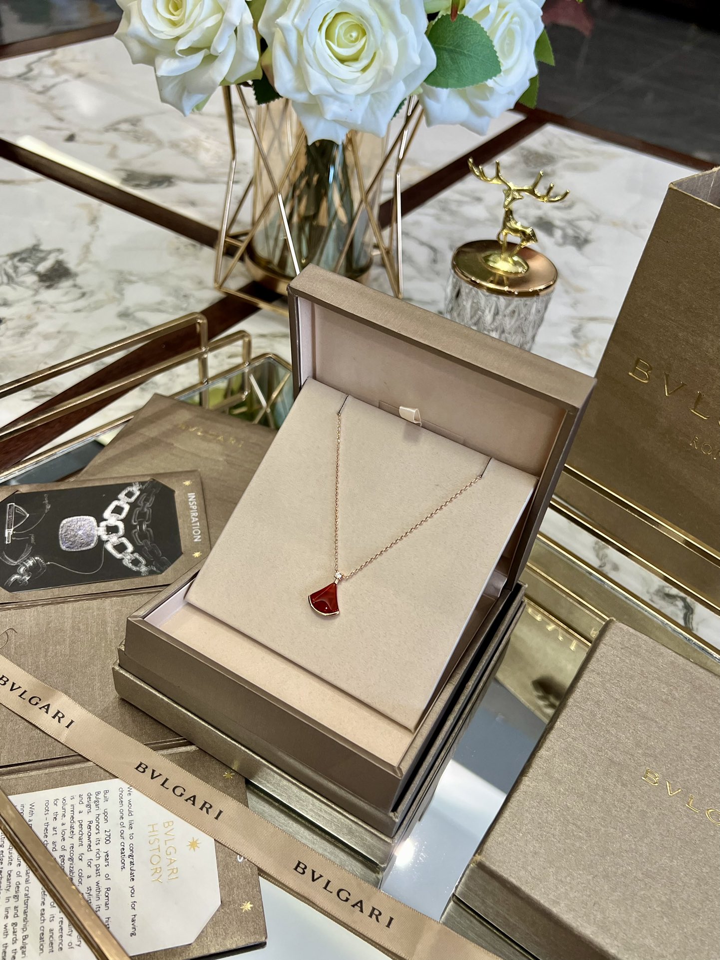 Bulgari dress necklace, latest counter Bulgari high-end original clasp original engraving beautiful small dress diva series necklace high-end 1:1 custom popular, fan-shaped necklace luxury beautiful in-store stock necklace length 44cm
