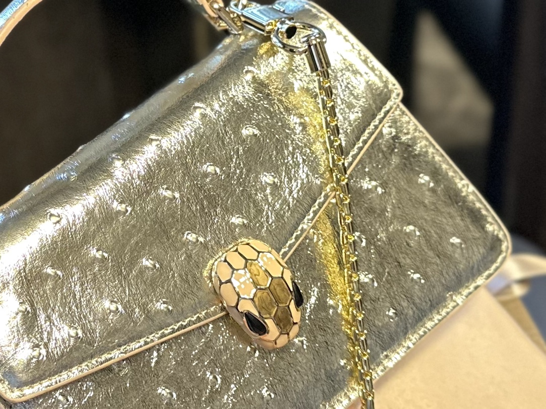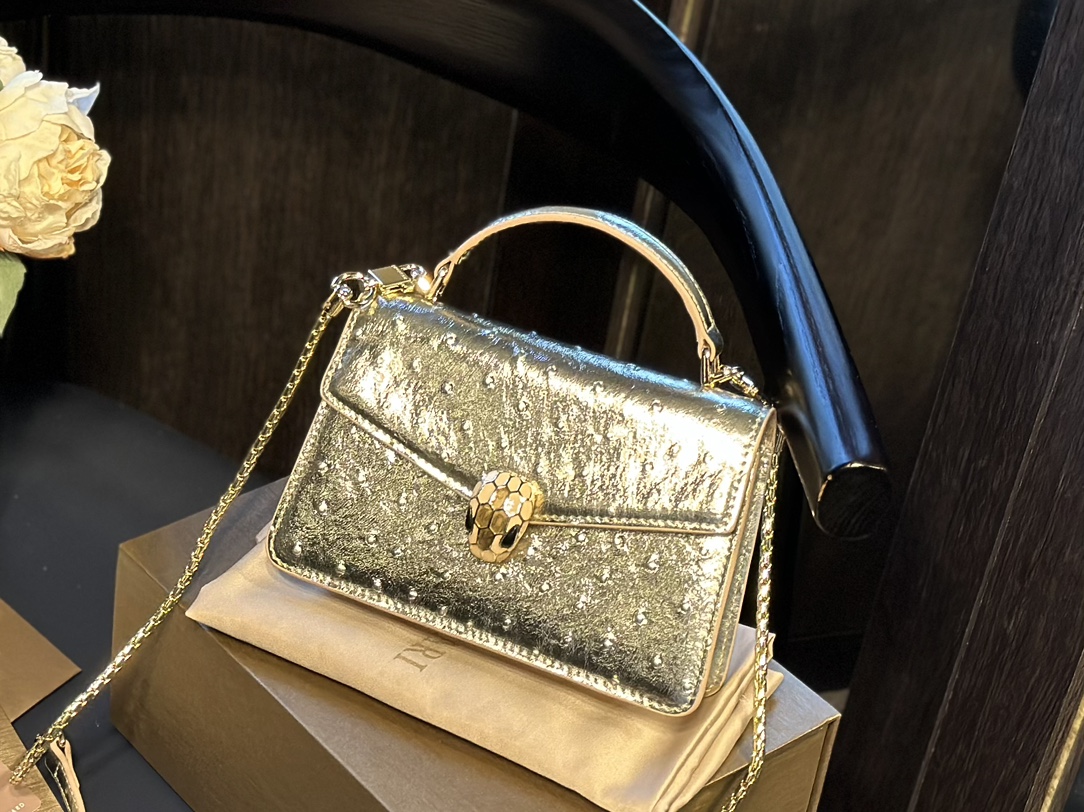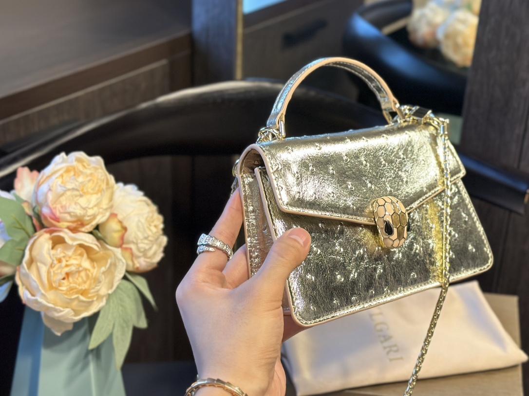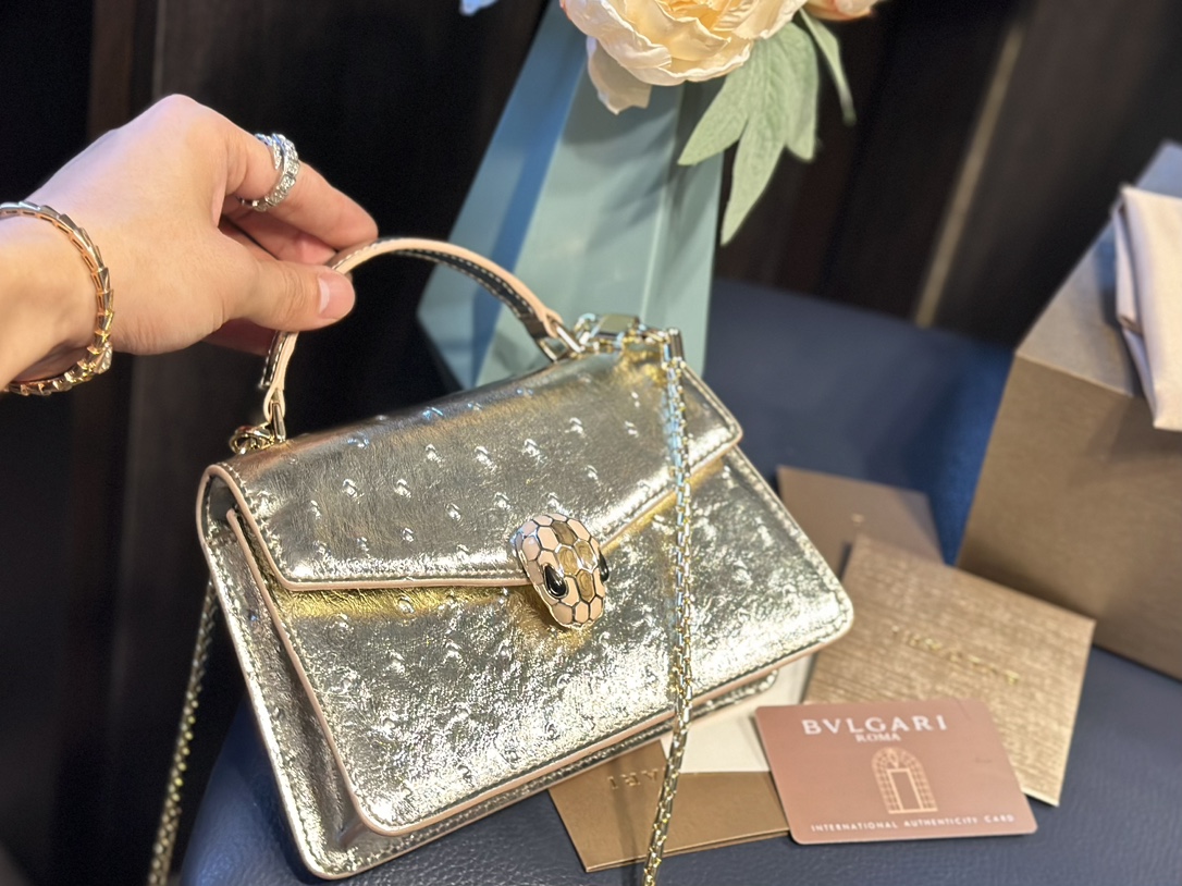 Bvlgari divine collaboration Ss24 limited series color-blocking new design original enamel snake head Super trendy original item Woc accordion bag interior original compartments [Smirk] Can be carried as a shoulder bag or crossbody never goes out of style matches boutique version showcases high-end taste If a woman's wardrobe doesn't have a Bvlgari it can't be called a perfect woman❤️ Imported original enamel snake head buckle hardware buckle great quality extremely versatile quality is exceptionally good silhouette and edge painting are super impressive [Smirk][Smirk] Details determine quality [Rose] Dimensions: 20 14cm