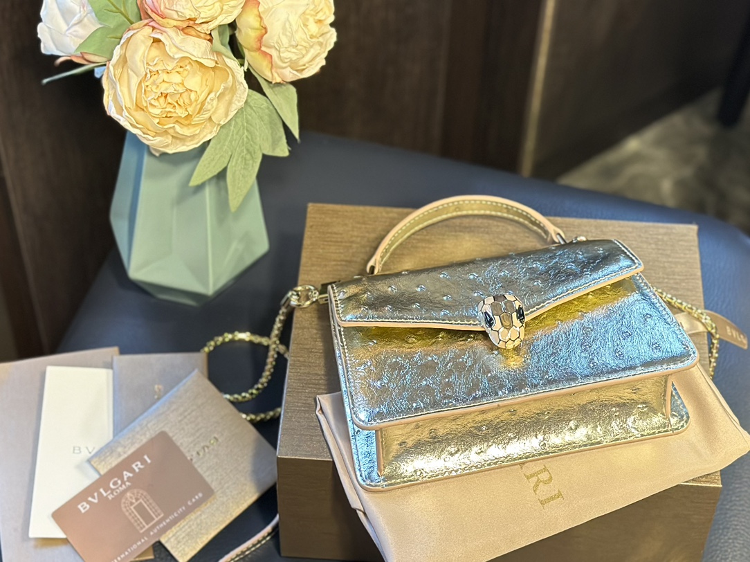 Bulgari limited edition snake head woc bag. Genuine leather foldable gift box. Original enamel hardware. Timeless shoulder crossbody. Size 20 14cm.