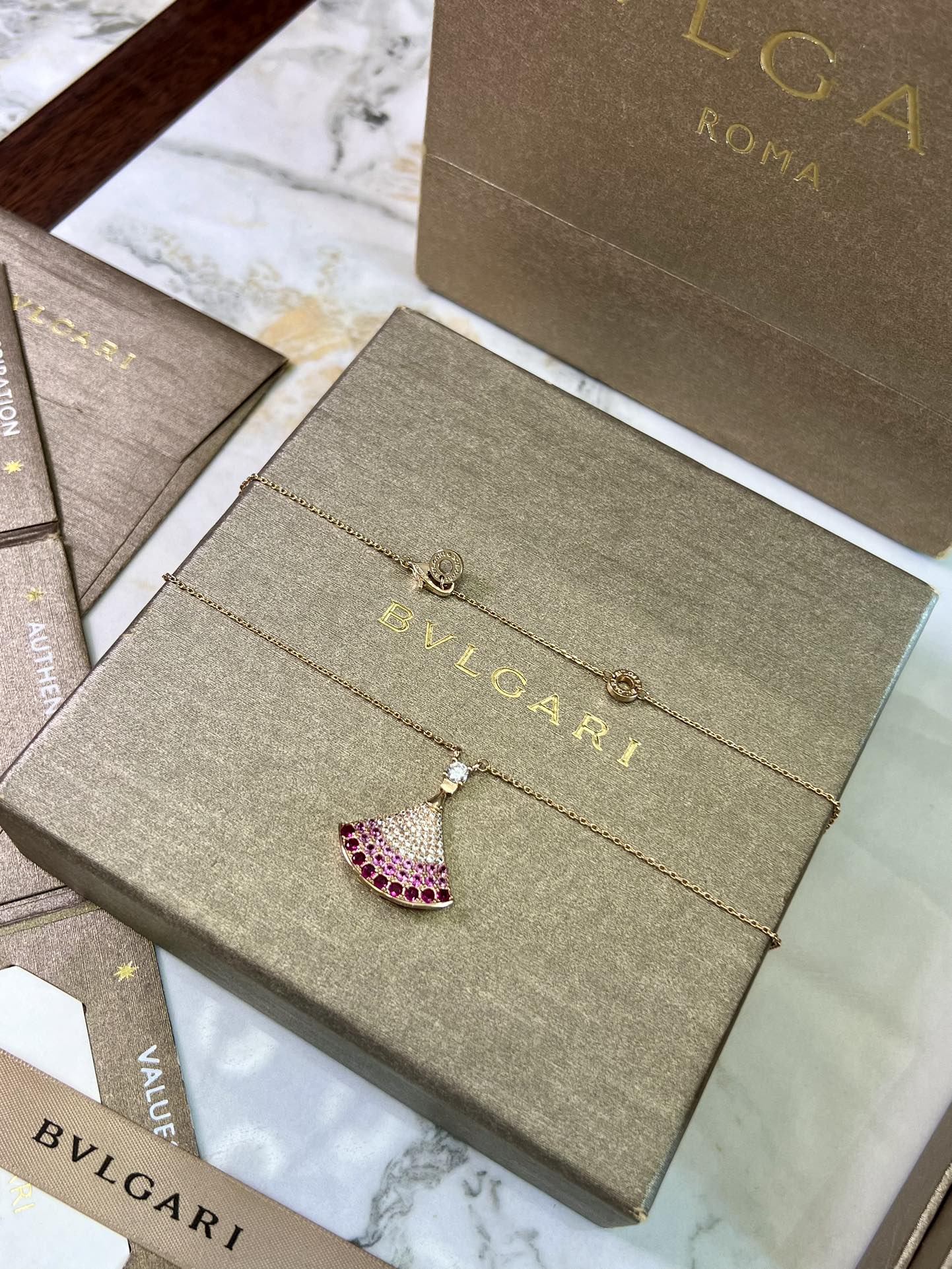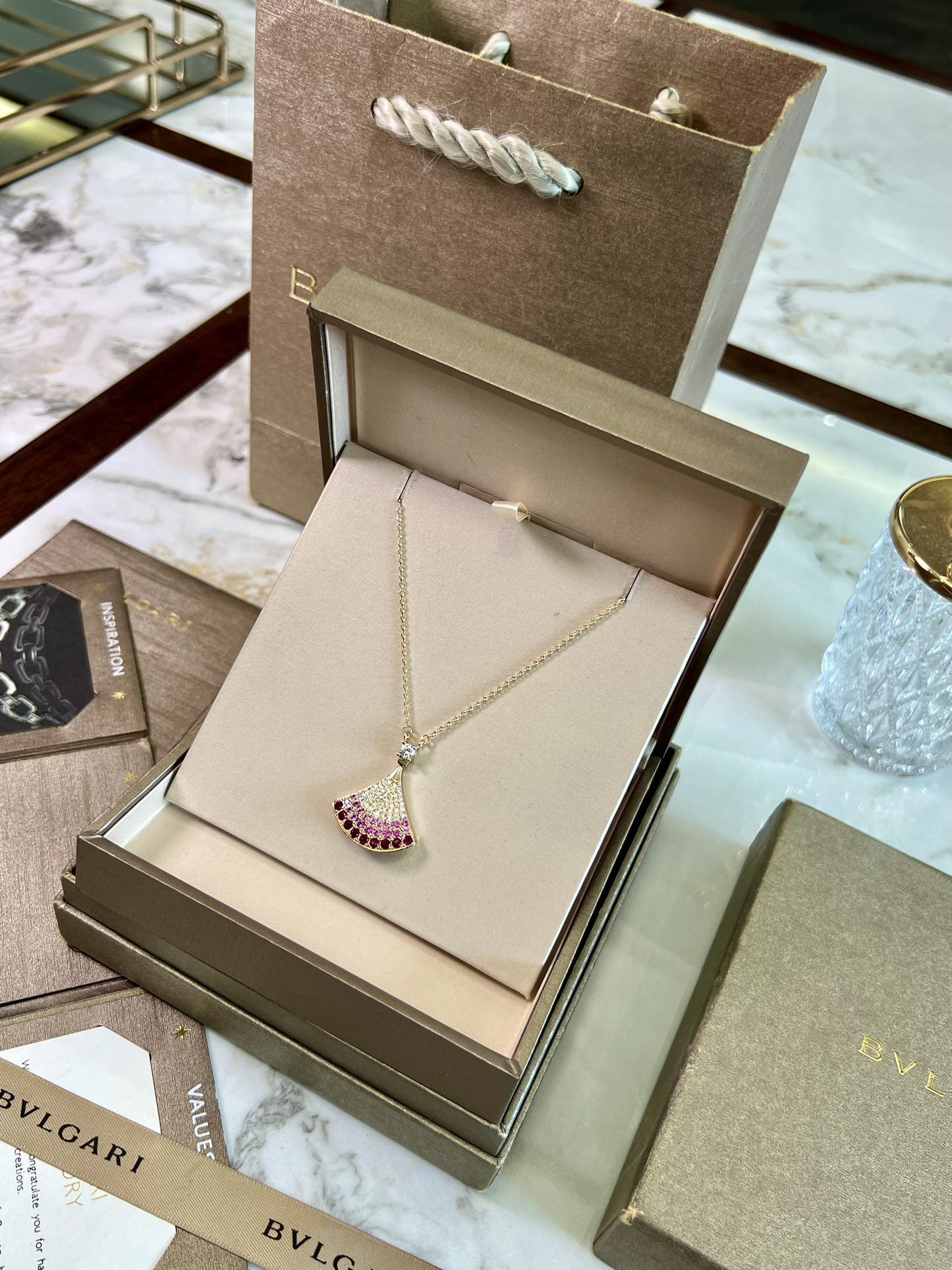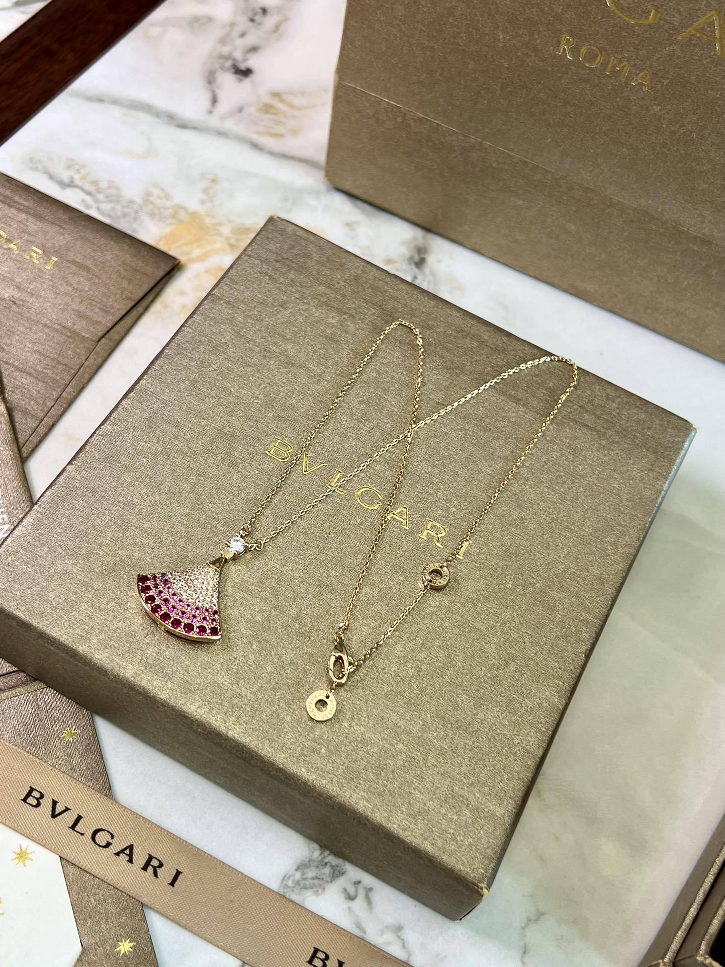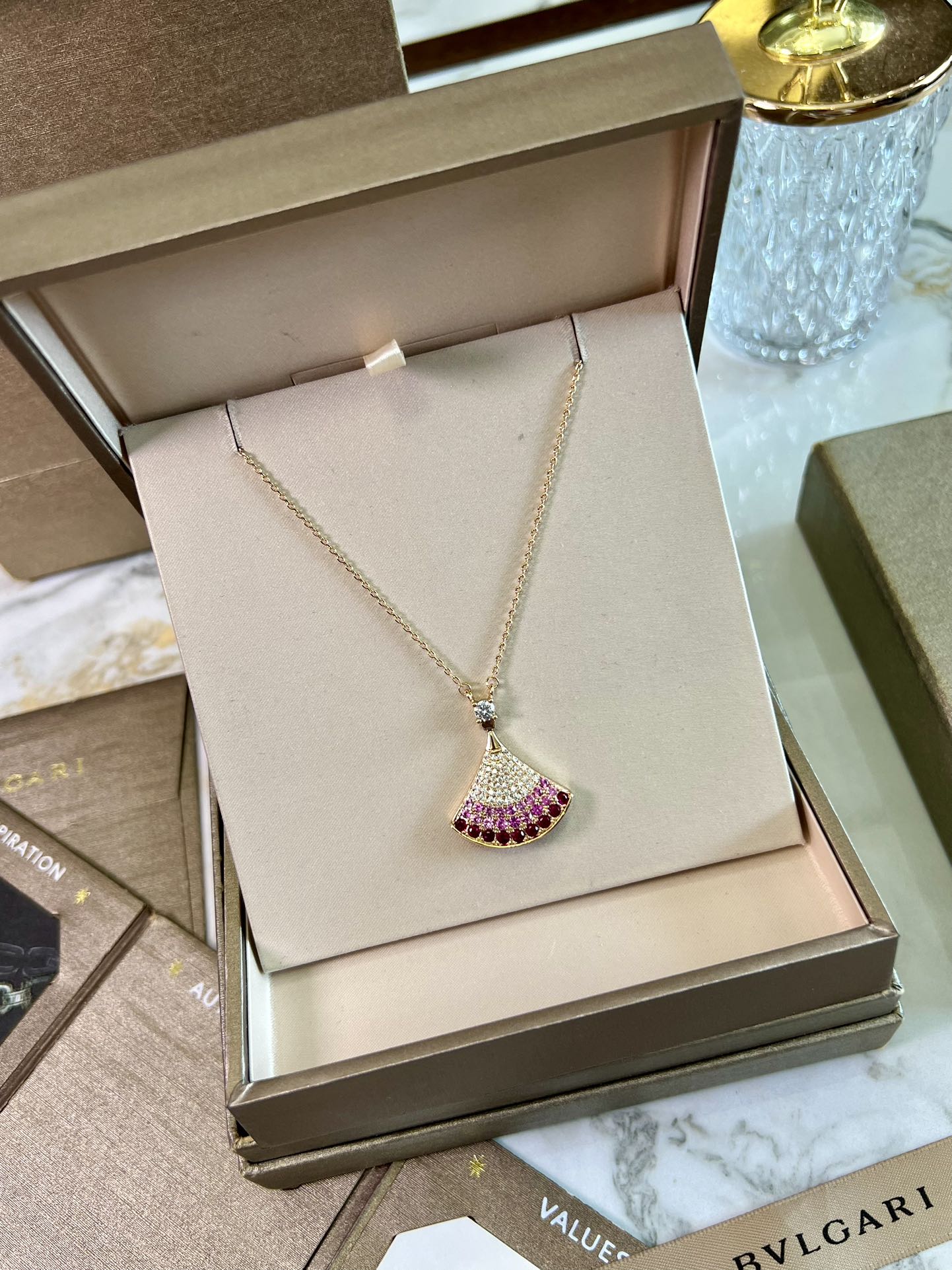 [🎀B H🎀] (with picture packaging) Bulgari large skirt pink full diamond, latest boutique Bulgari high-end original clasp original engraving beautiful small skirt diva series necklace high-end 1:1 custom popular, fan-shaped necklace luxurious beautiful in-store现货 necklace length 48cm