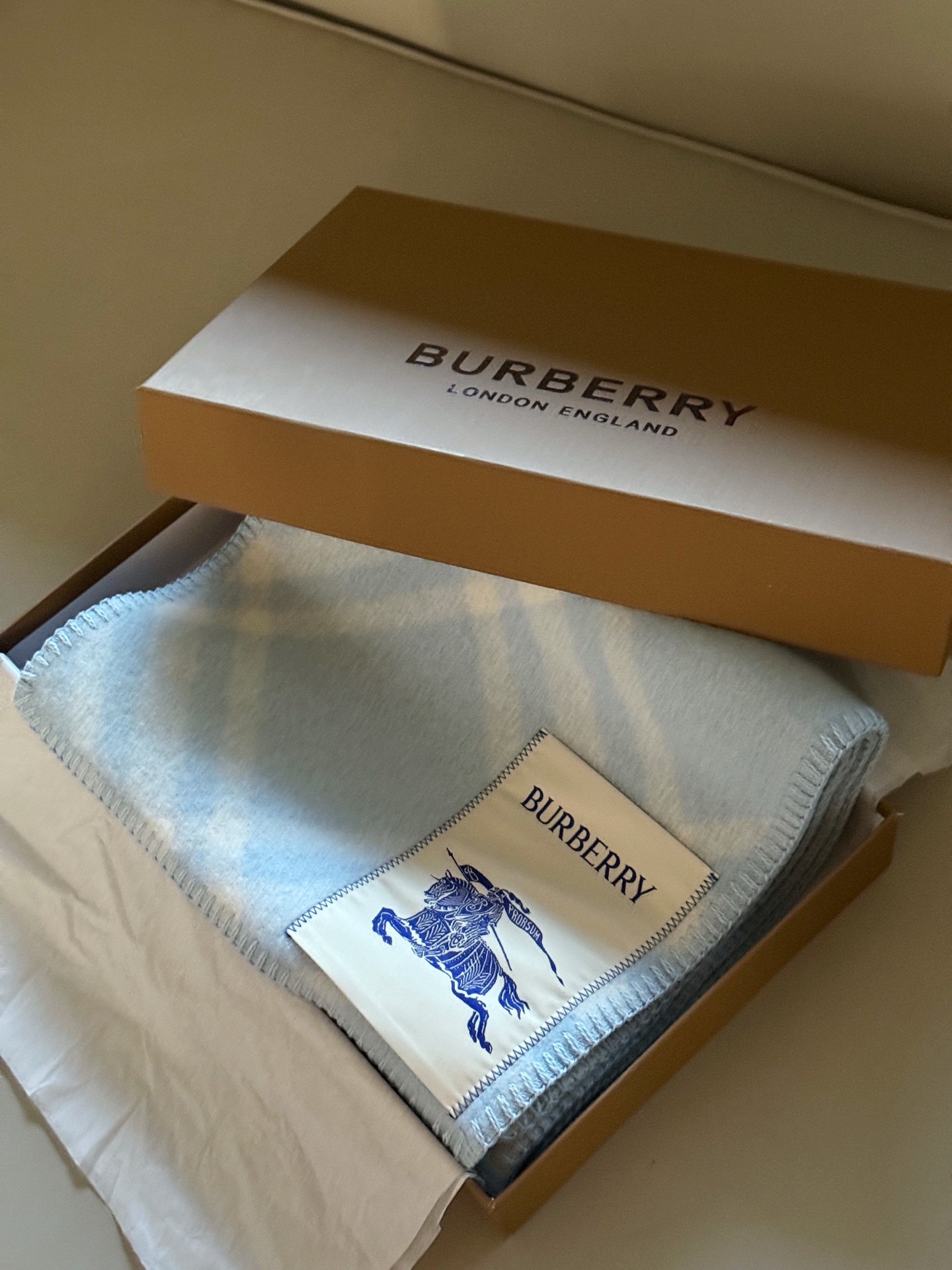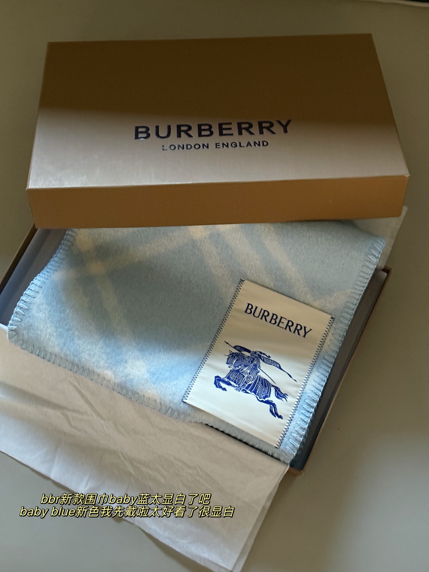 Such a gentle soft milky blue scarf! Super brightening! Cashmere scarf comes with a box