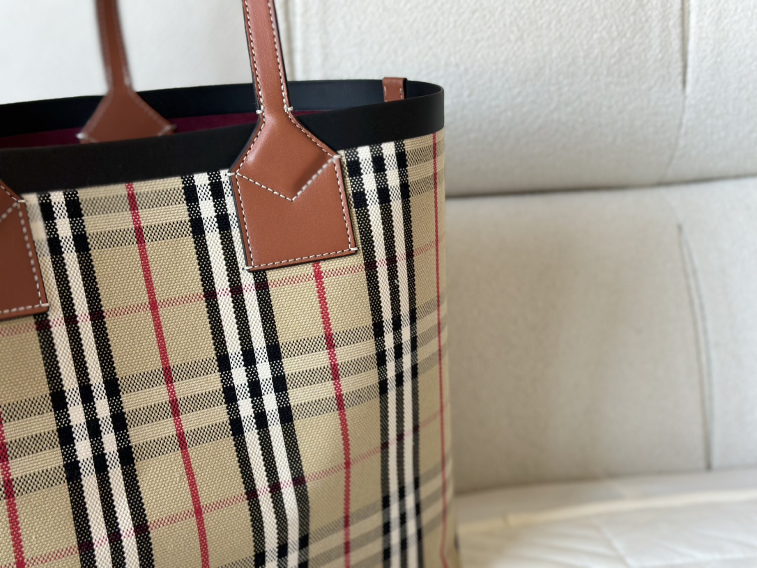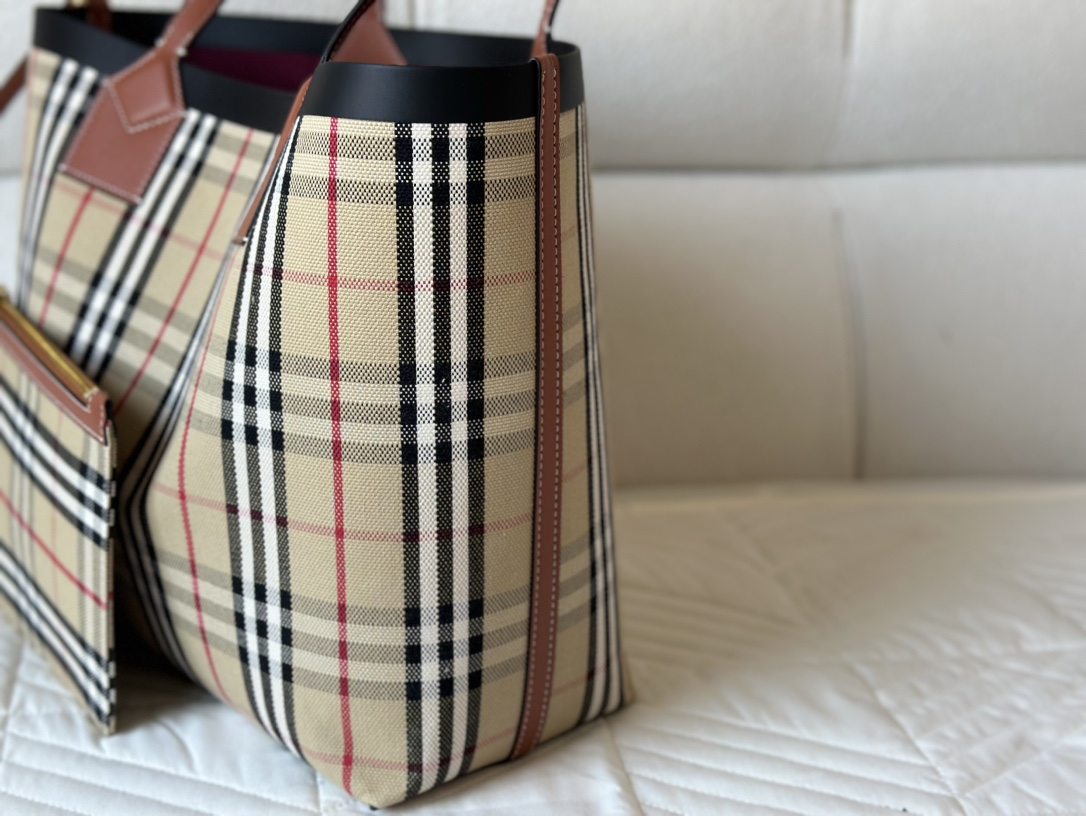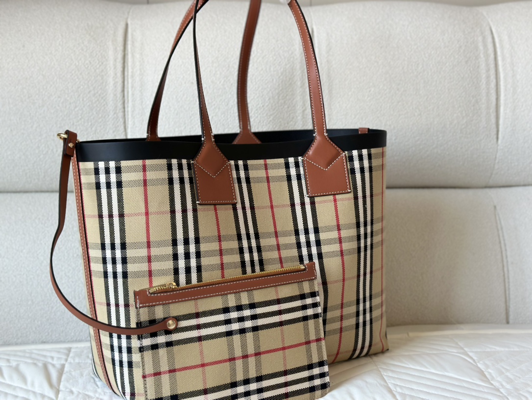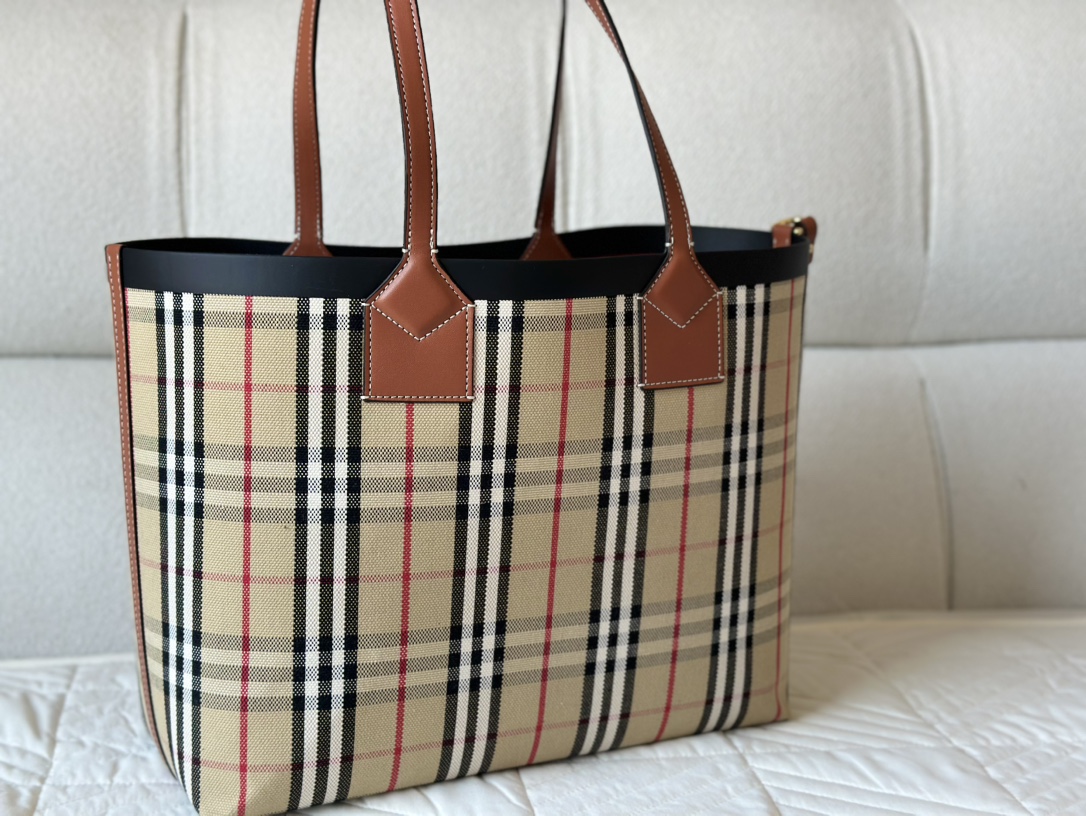Burberry canvas tote, size 36x30cm. Beautiful, versatile, includes inner pouch. High-quality imported fabric.