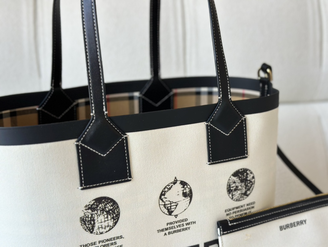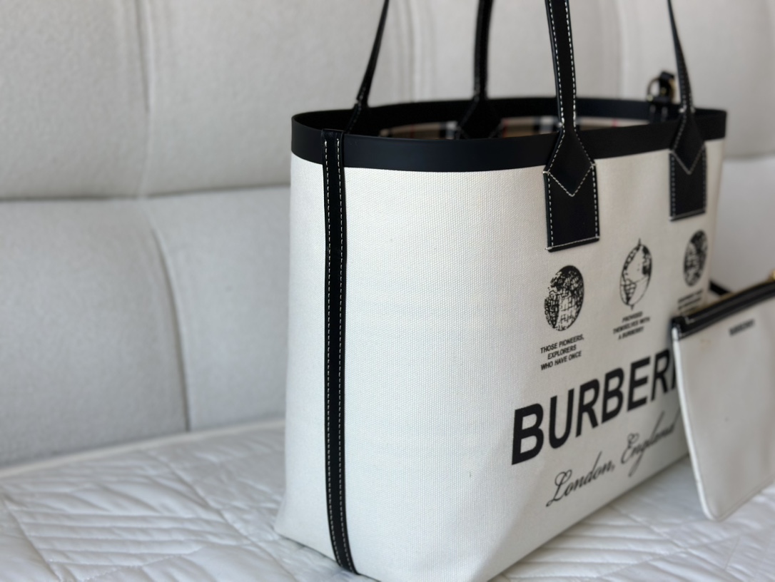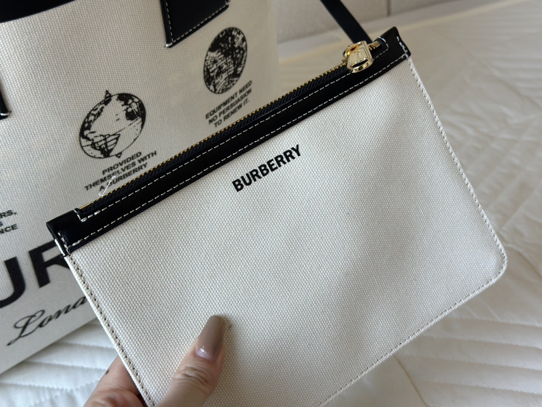 Burberry canvas tote, size 36x30cm. Beautiful, versatile, includes inner pouch. High-quality imported fabric.