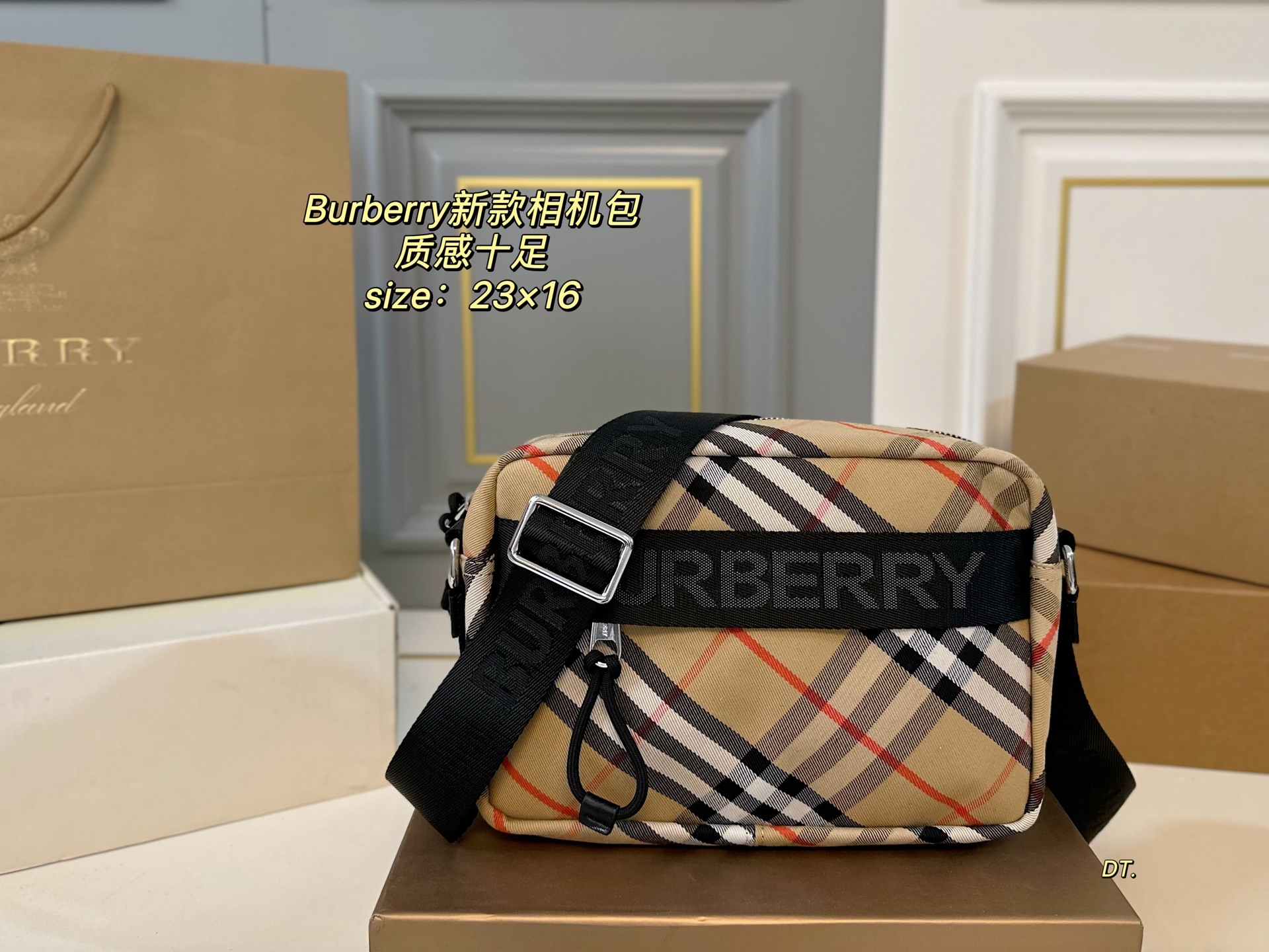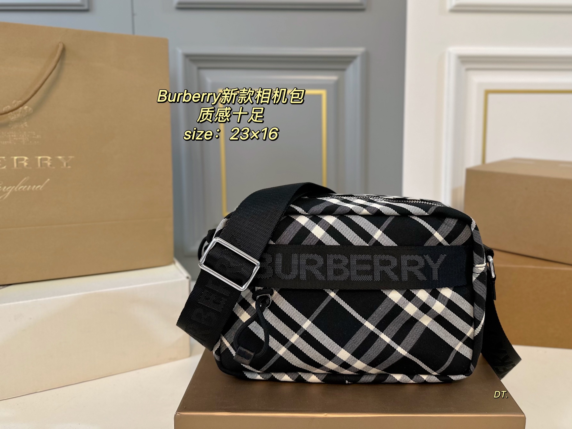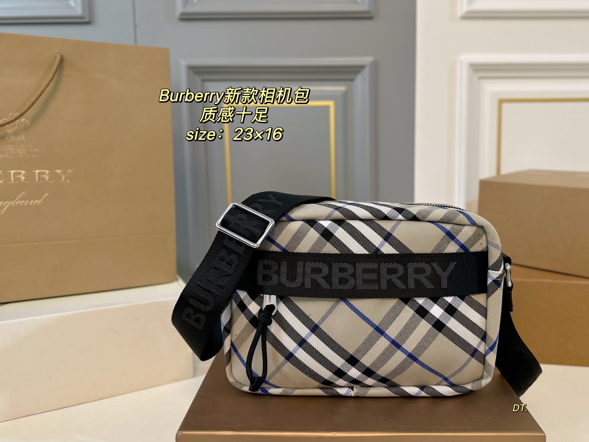 (With box) Size: 23×16 Burberry Check Camera Bag Classic check design, full of texture! Adjustable shoulder strap, can be worn single shoulder or crossbody. Suitable for both men and women, great capacity. Versatile and cute when worn, full of charm.