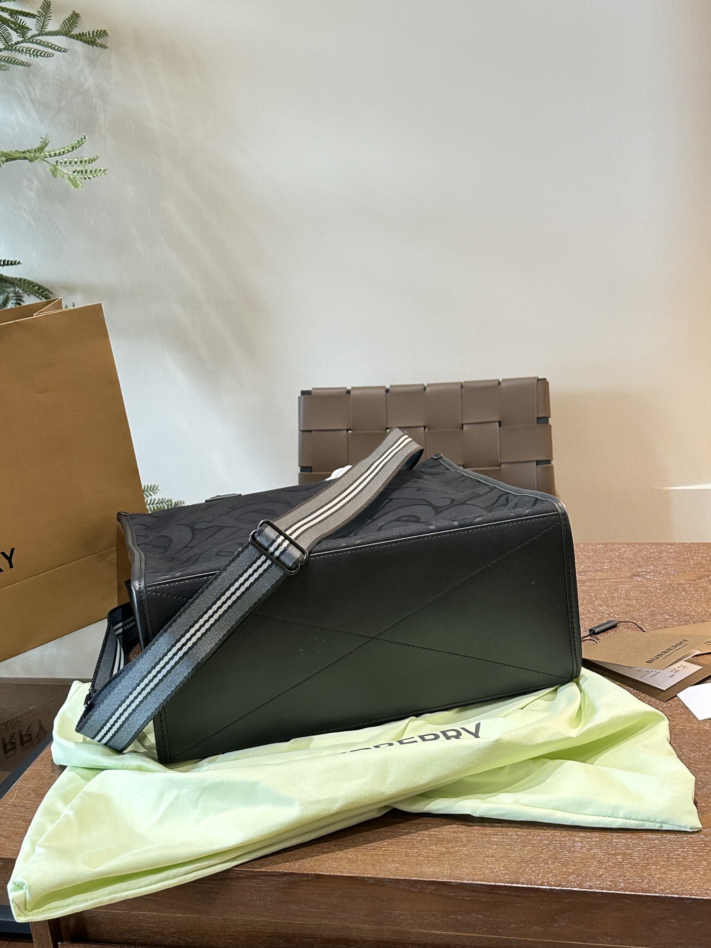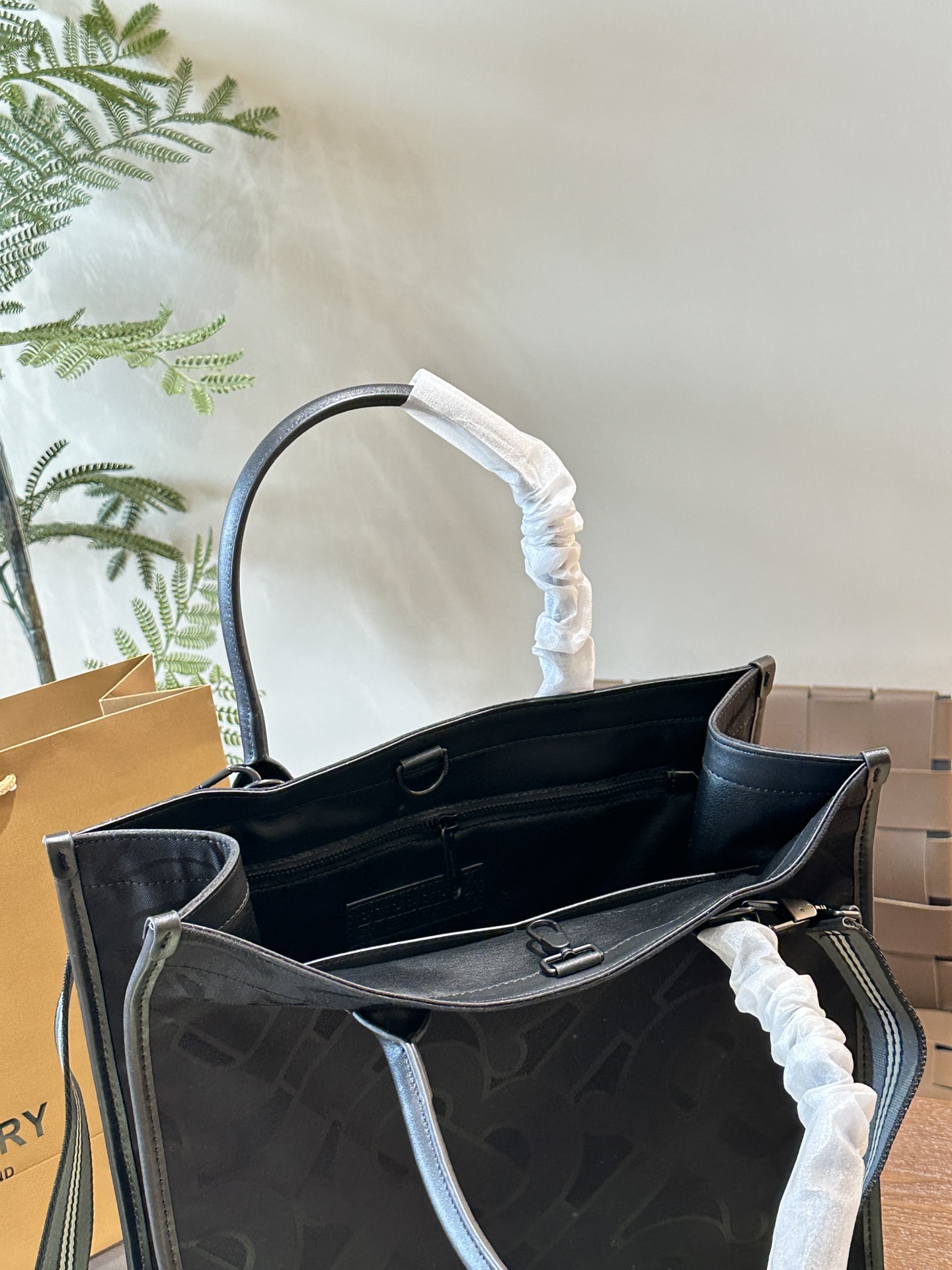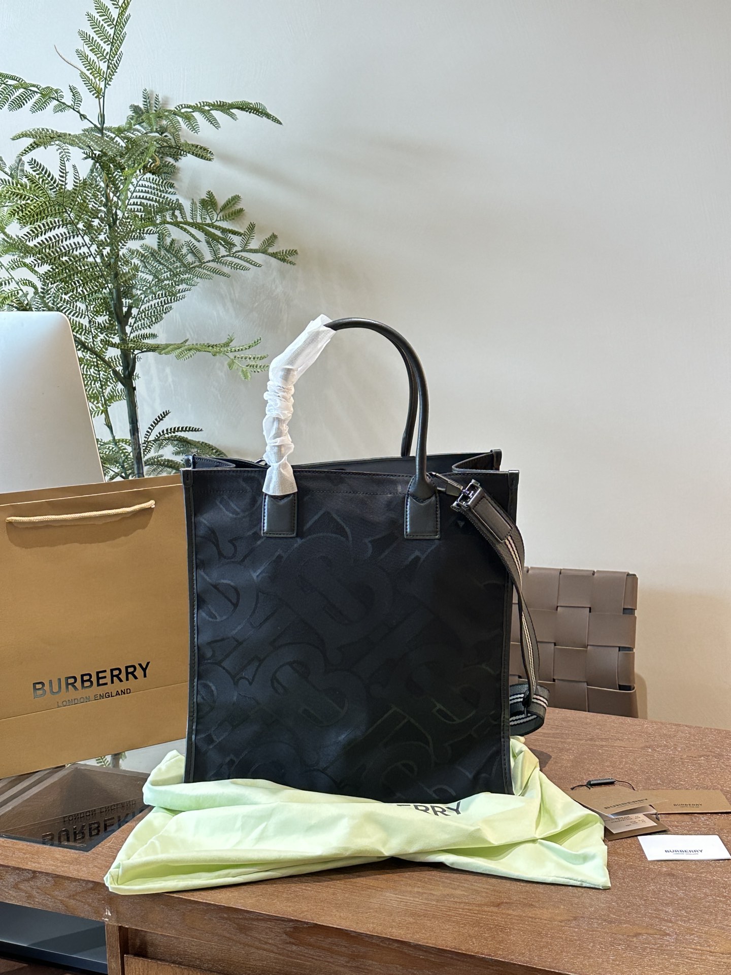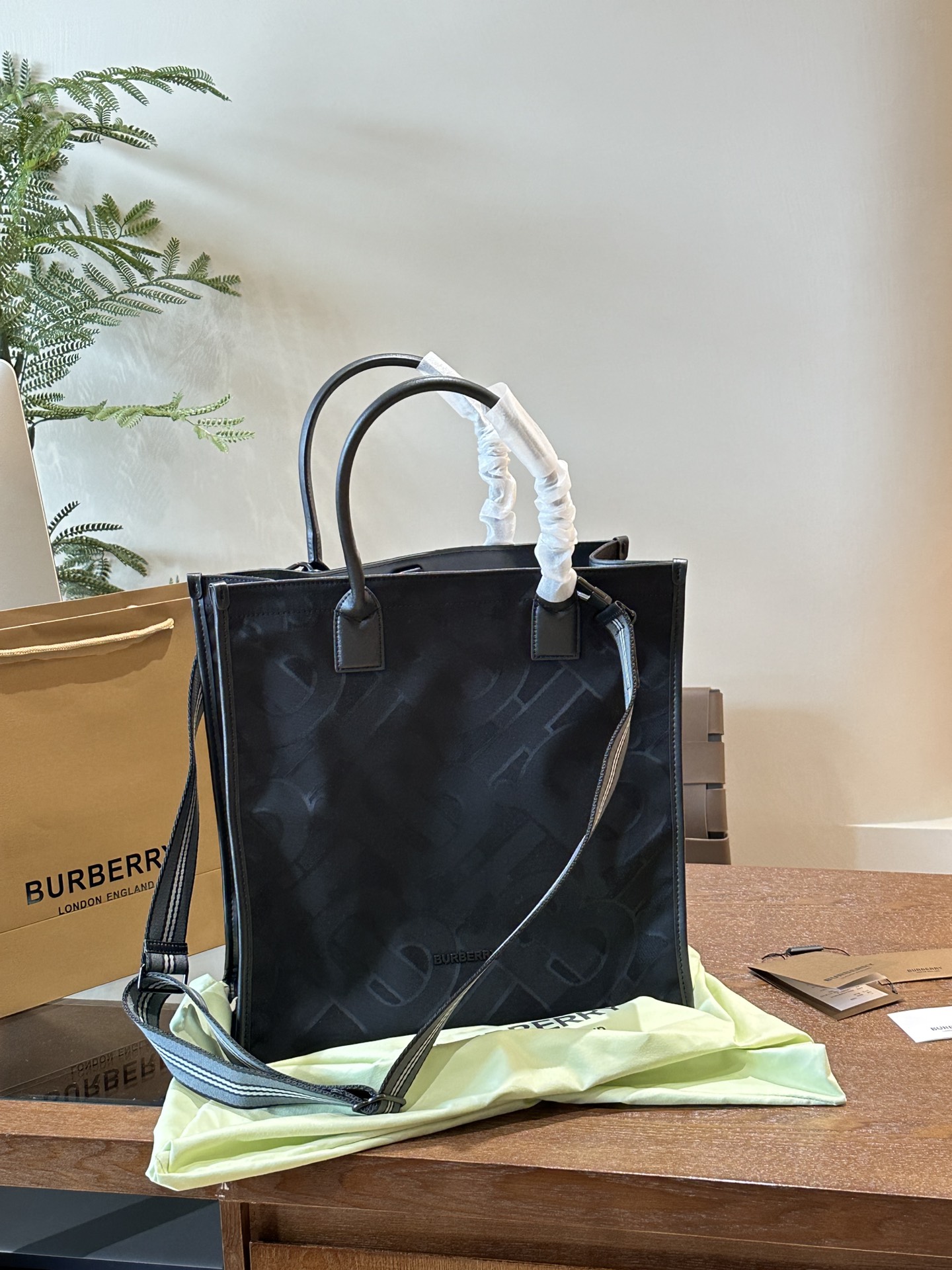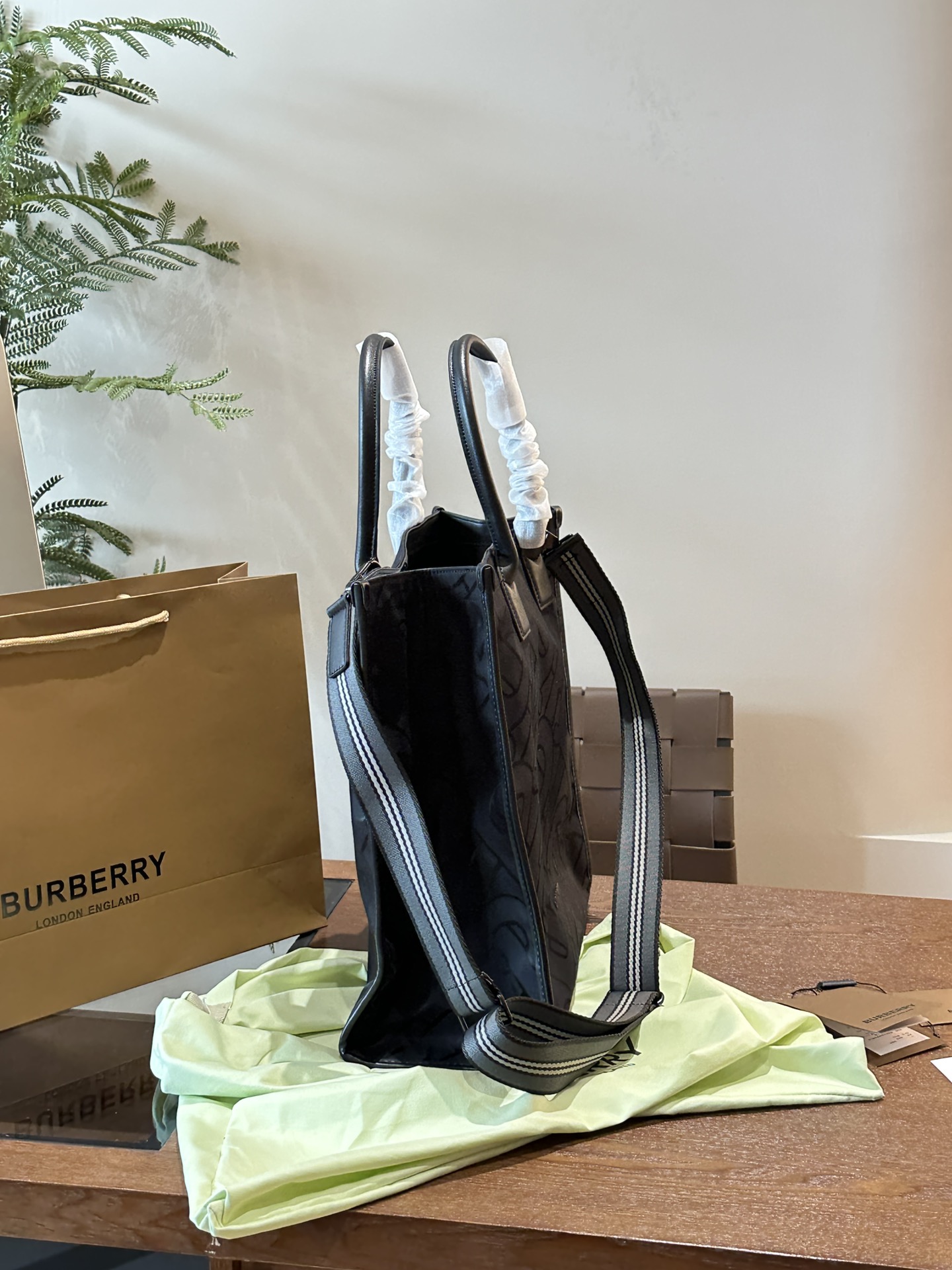 Burberry Burberry Classic Brand Logo Full Print Large Capacity Cotton Detail Music Score Bag Tote Bag Tote Bag Shopping Bag Shoulder Bag Handbag Men's Black