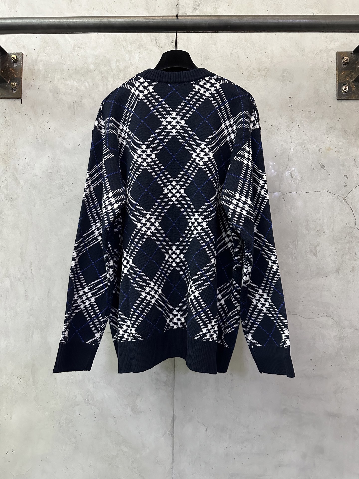 BURBERRY jacquard knit sweater. Material: 80% wool, 20% cashmere. Soft, comfortable, with clear pattern lines. Color: royal blue. Sizes: S, M, L, XL.