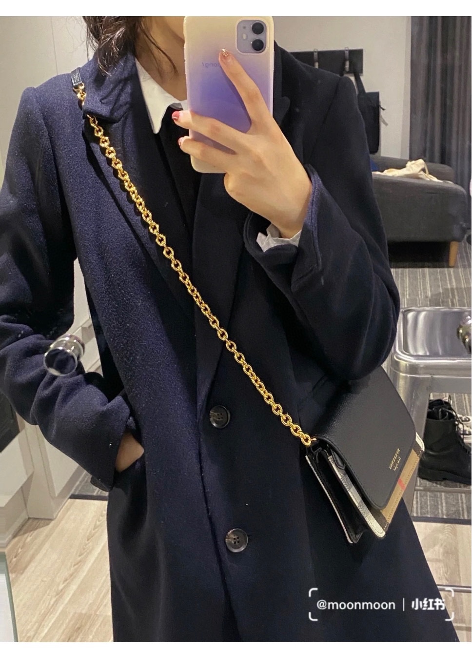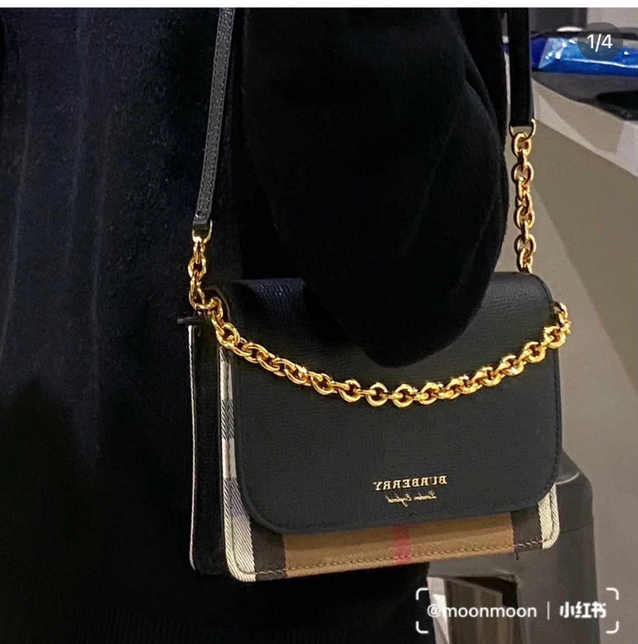 Burberry cowhide and canvas woc chain bag