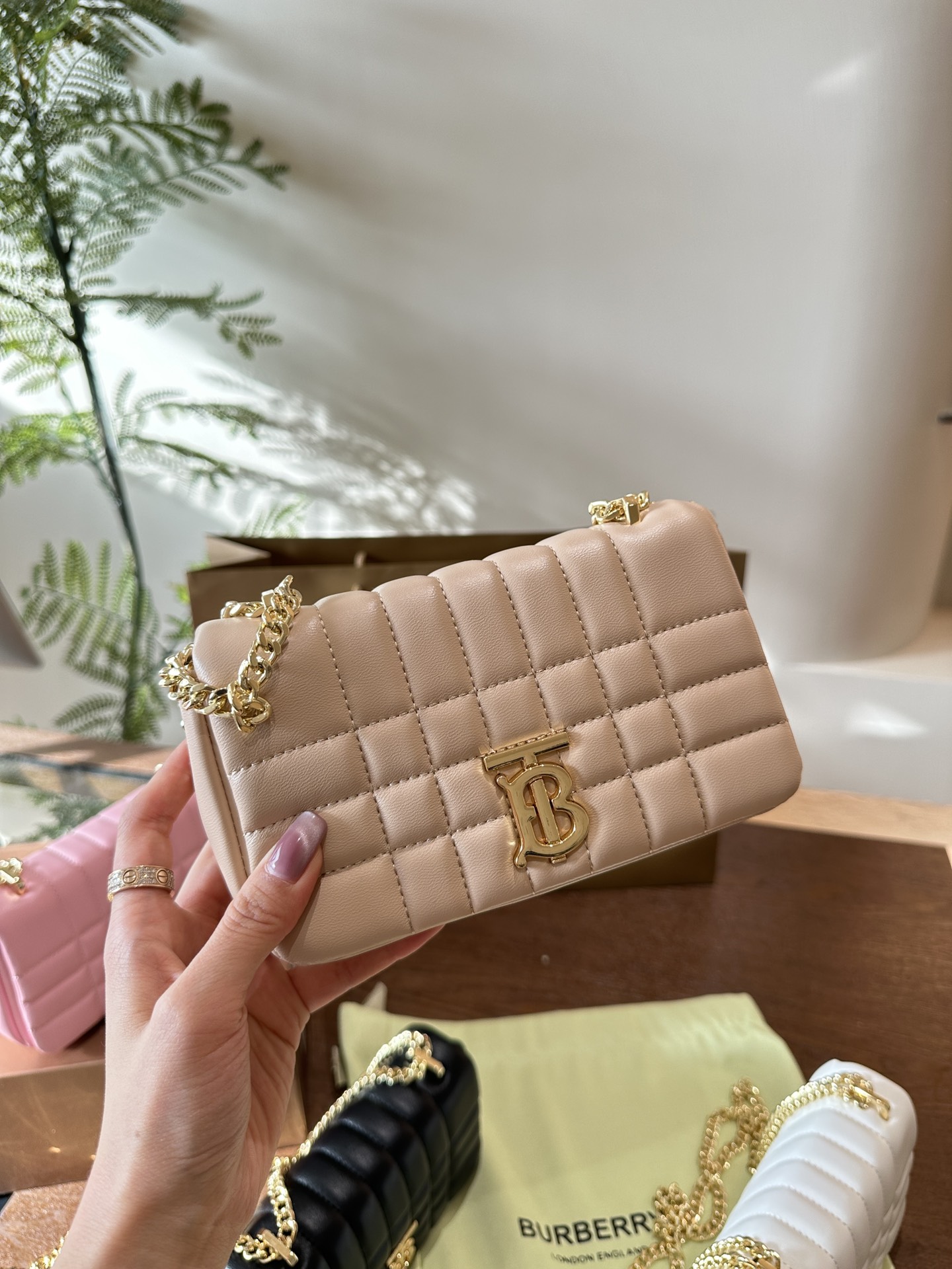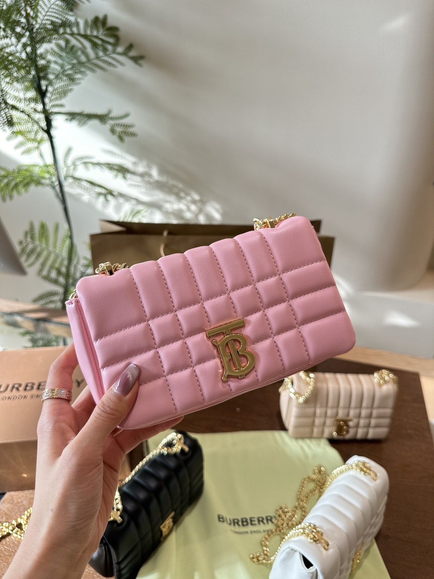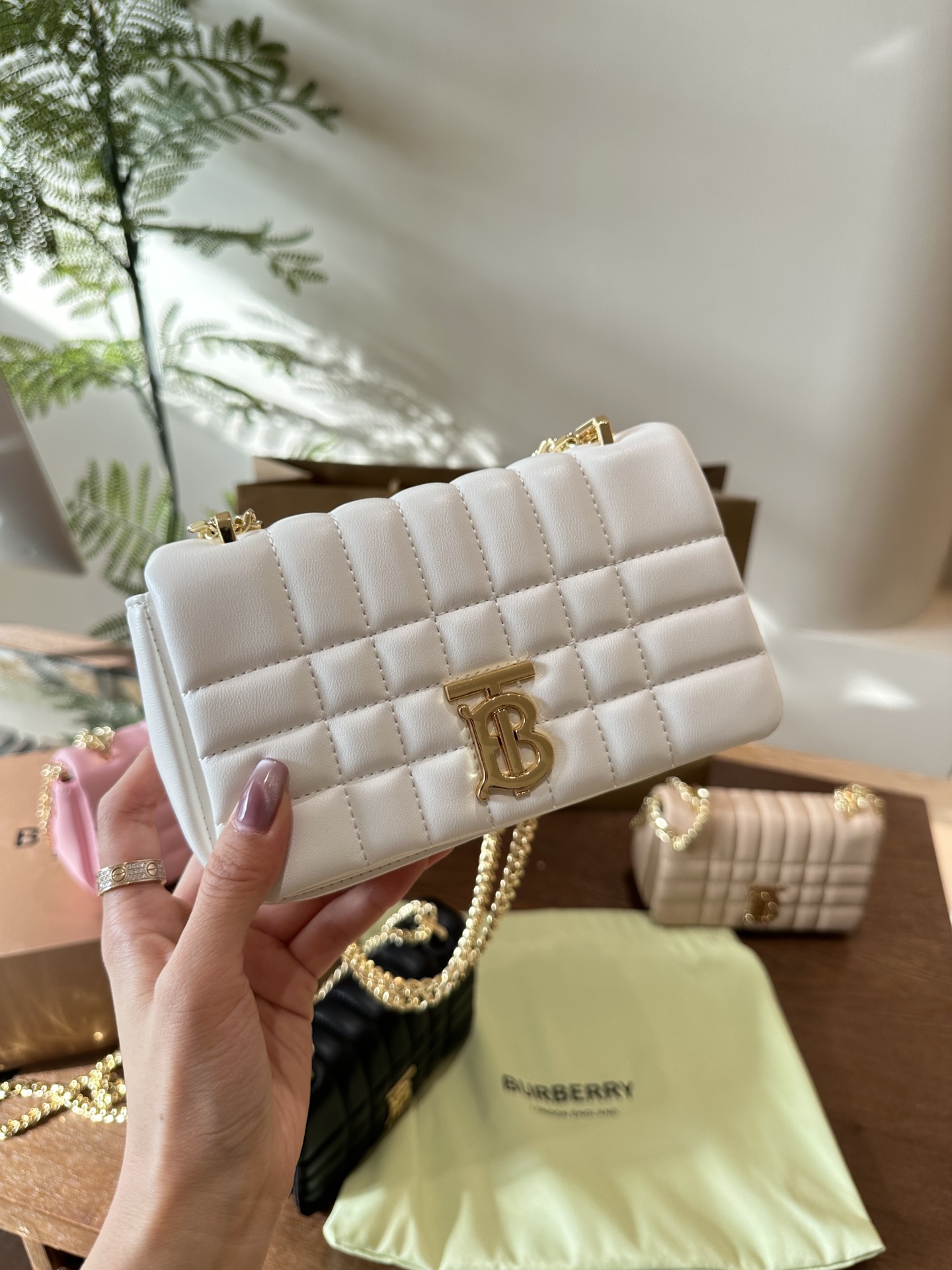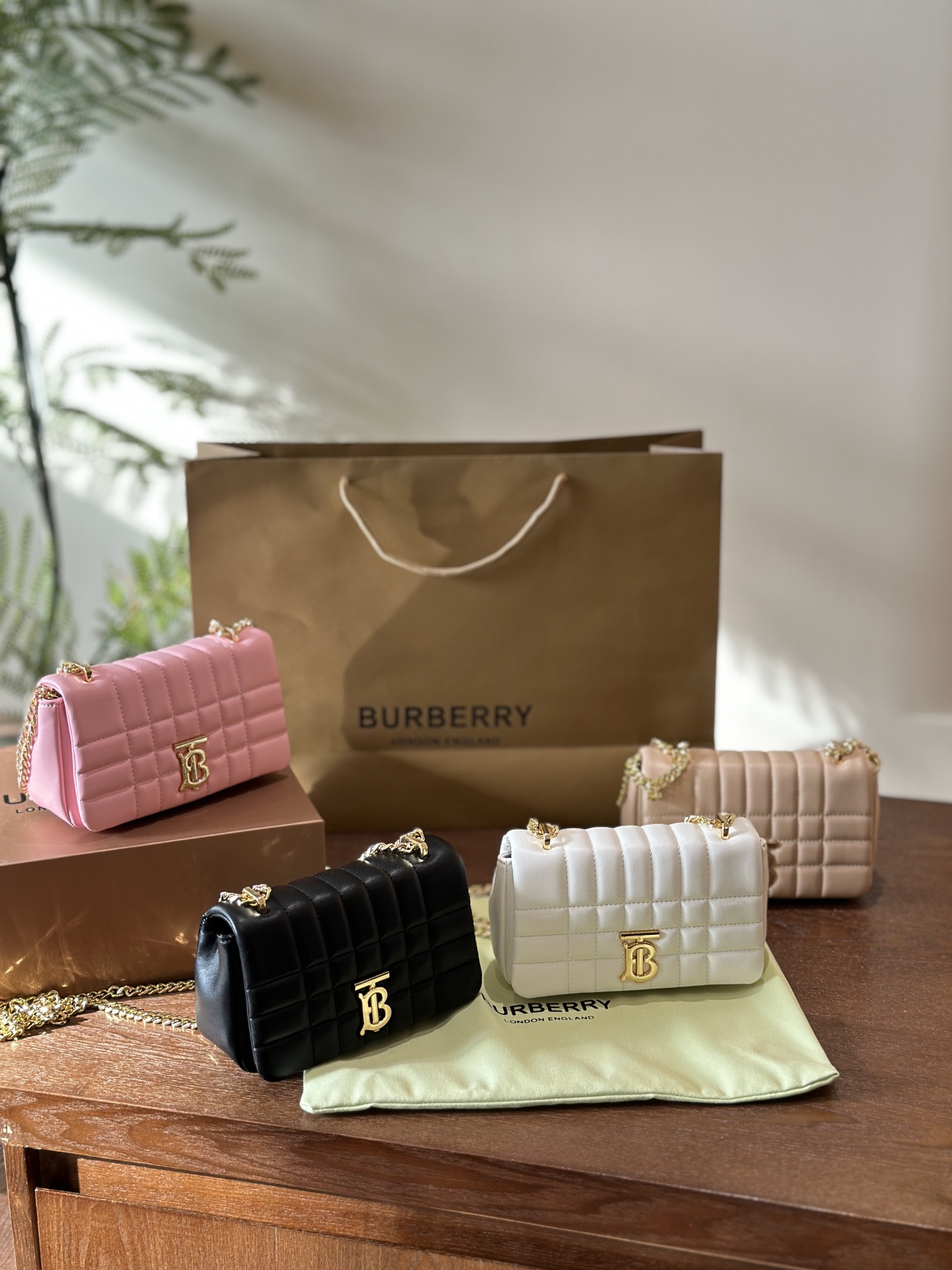 Burberry Lola new chain bag. Soft quilted leather, premium look. Versatile with basics. 19cm small size, foldable box.