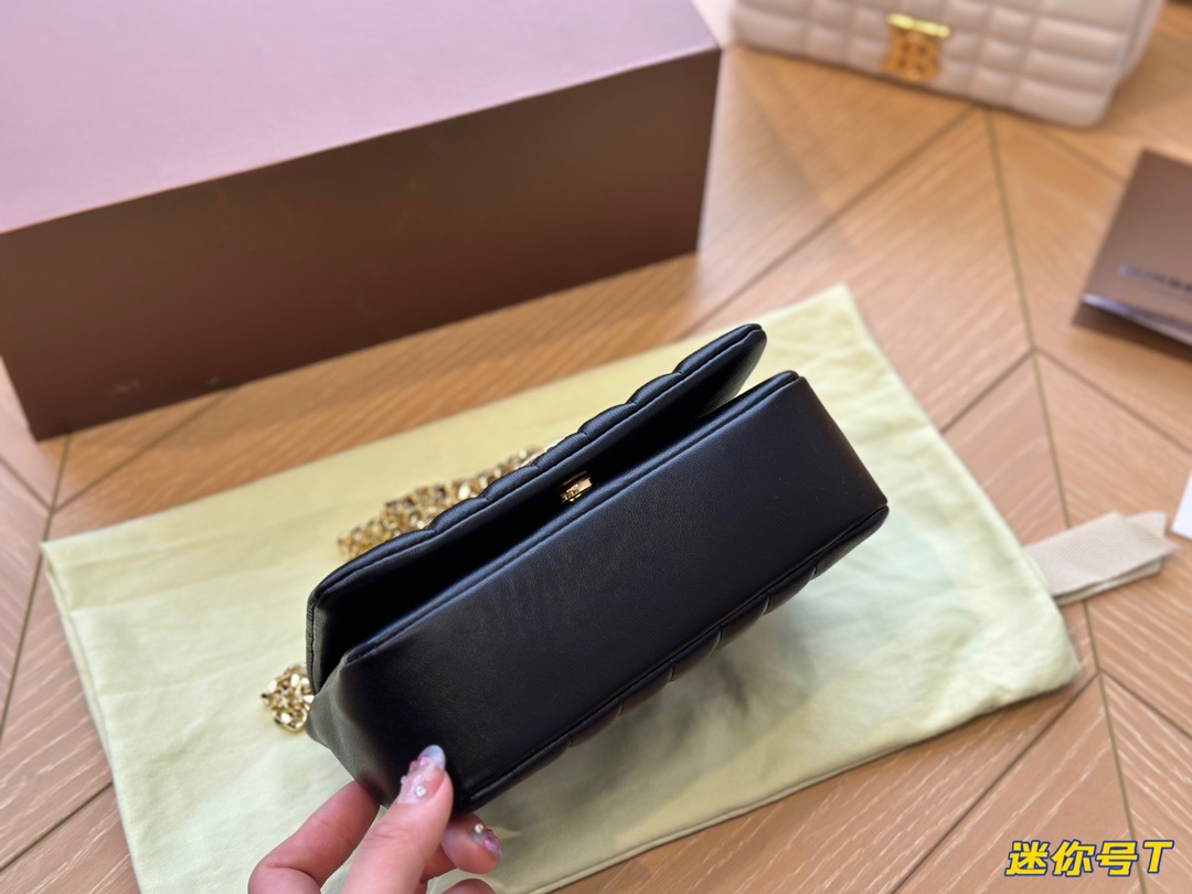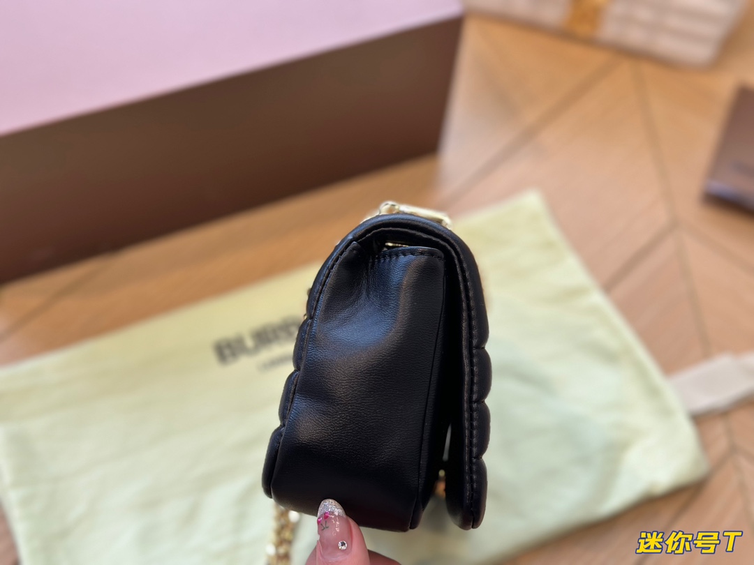 TB logo quilted lamb leather metal chain camera bag handheld single shoulder crossbody bag mini women's black.