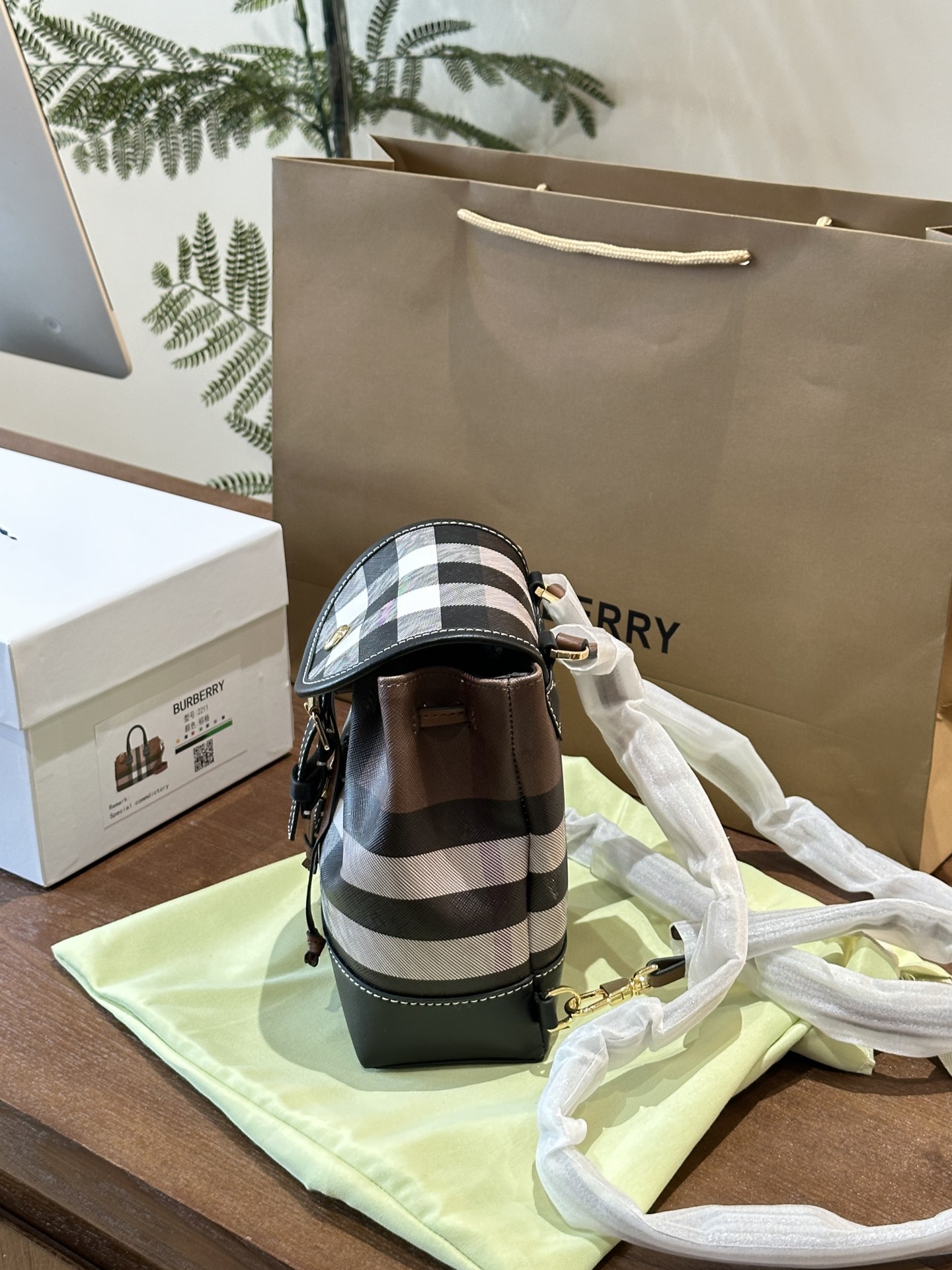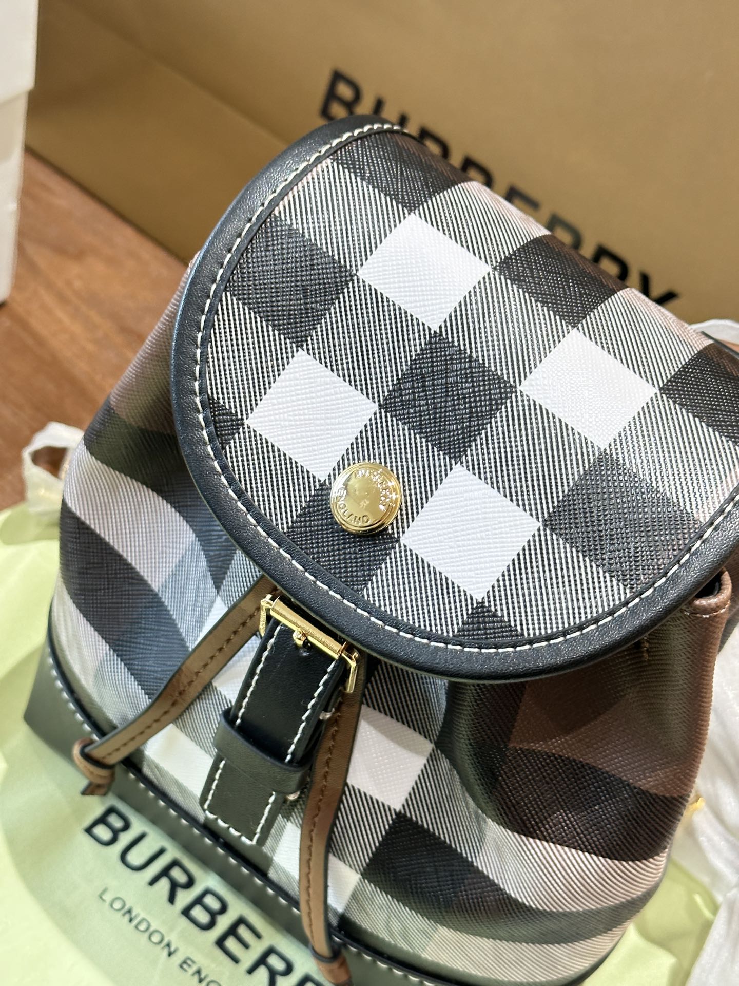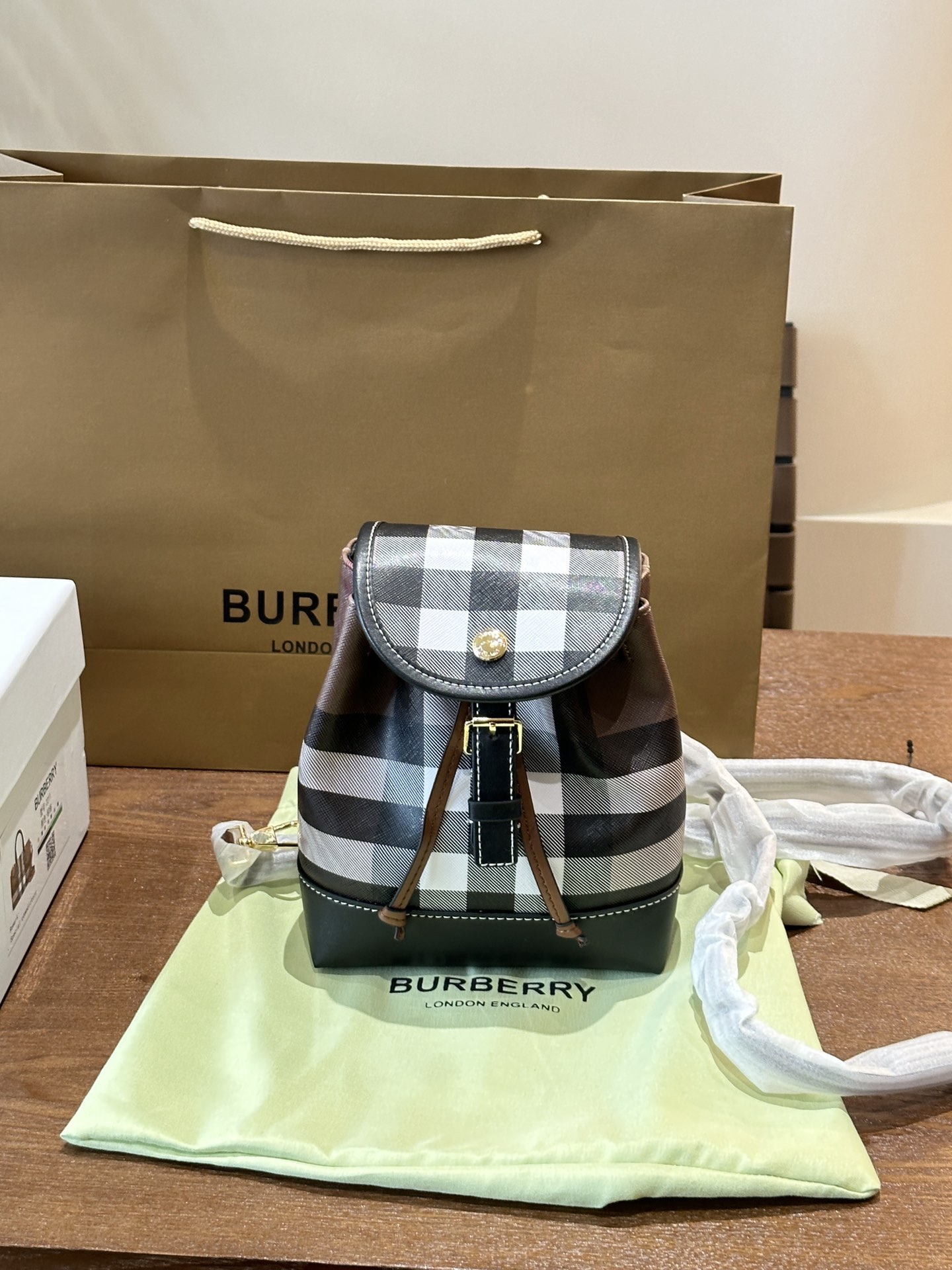 BURBERRY drawstring snap closure checkered pattern backpack mini single bag no accessories dimensions: 15-7-18