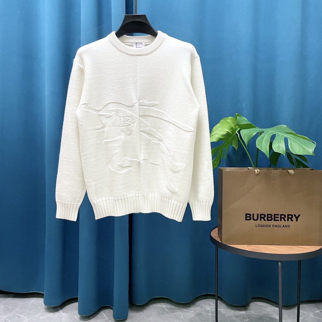 Burberry new jacquard wool sweater, unisex, oversized fit. 500g heavyweight. Imported wool blend, high-quality craftsmanship. Sizes: S, M, L, XL.