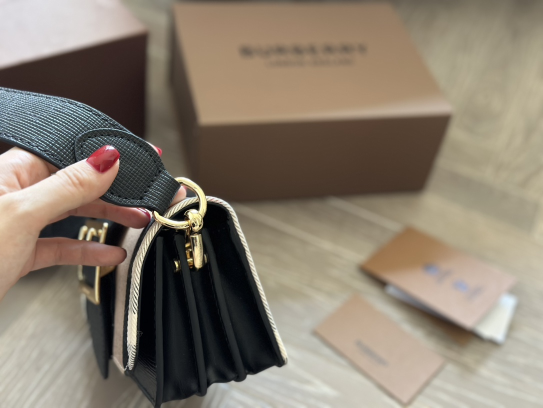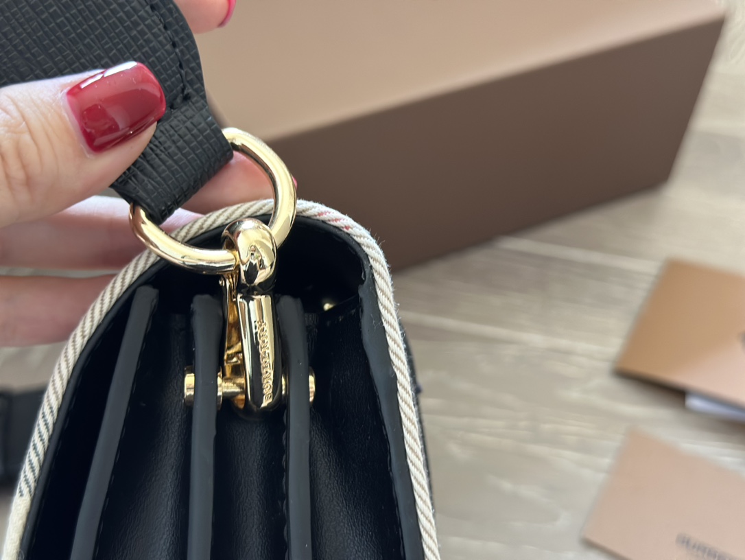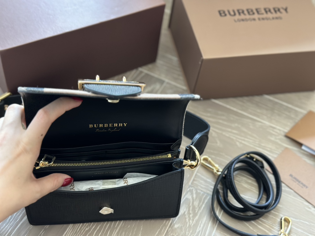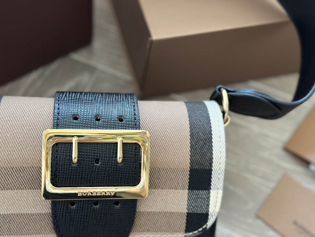 This is the Burberry The Buckle small House check color block bag. I like its thick strap, it can be carried by hand or crossbody.