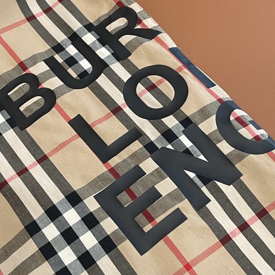 Burberry -> Burberry plaid hem letter print logo long-sleeved shirt