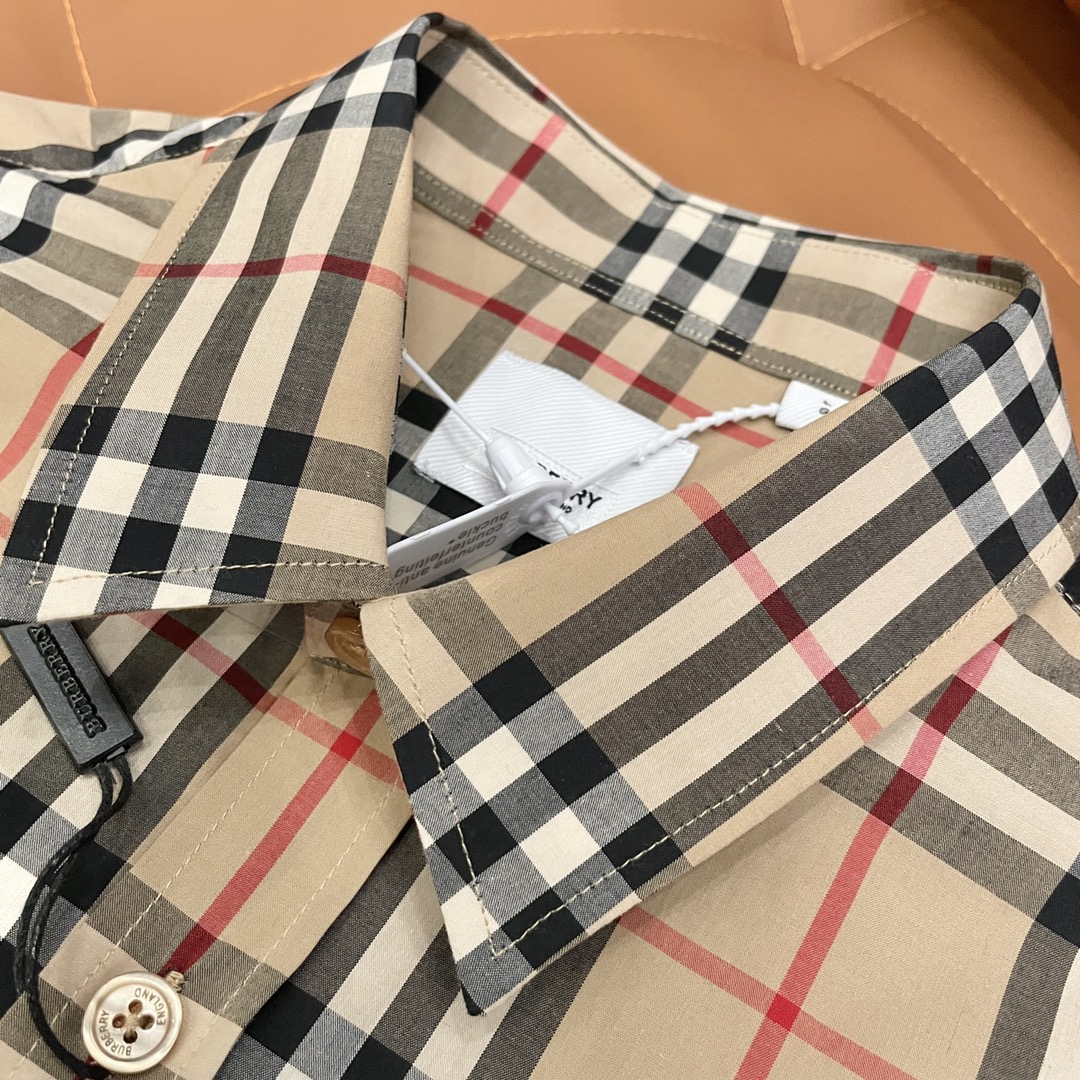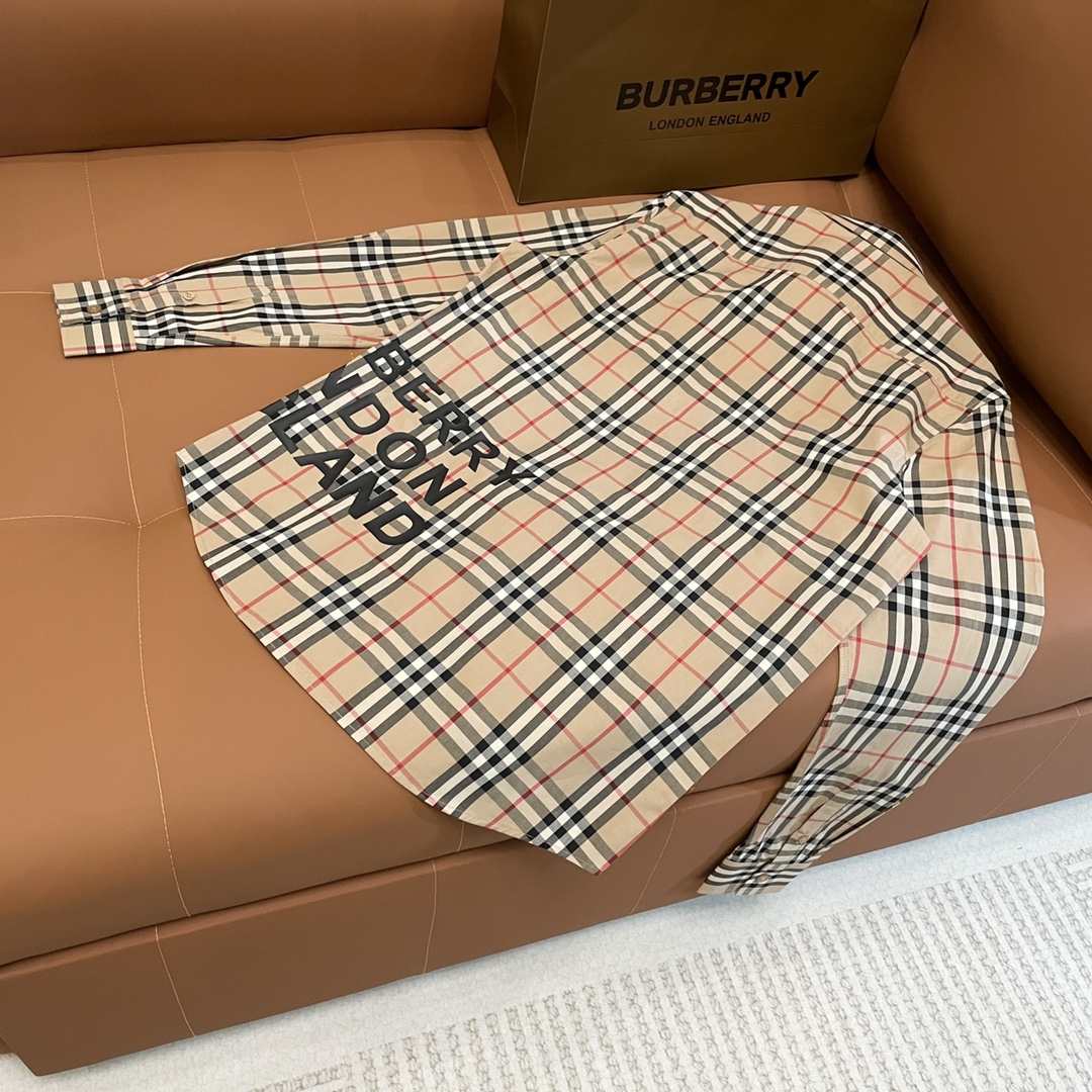 Burberry plaid logo long sleeve shirt, 100% cotton, original design, laser engraved buttons, full branding, unisex.