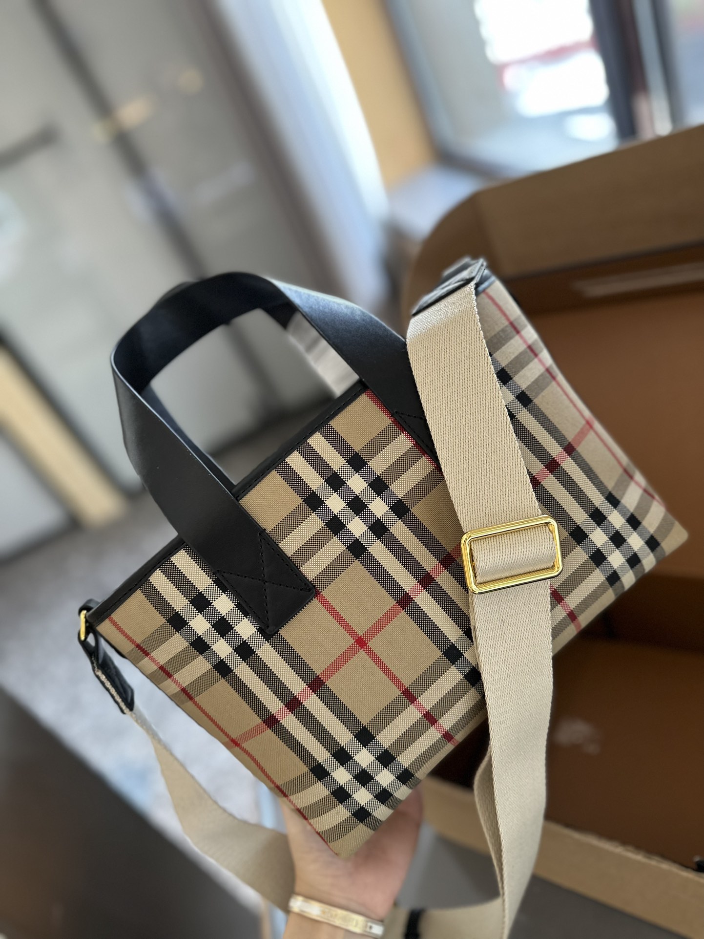 Burberry plaid tote bag, durable and stylish, 25x19cm.