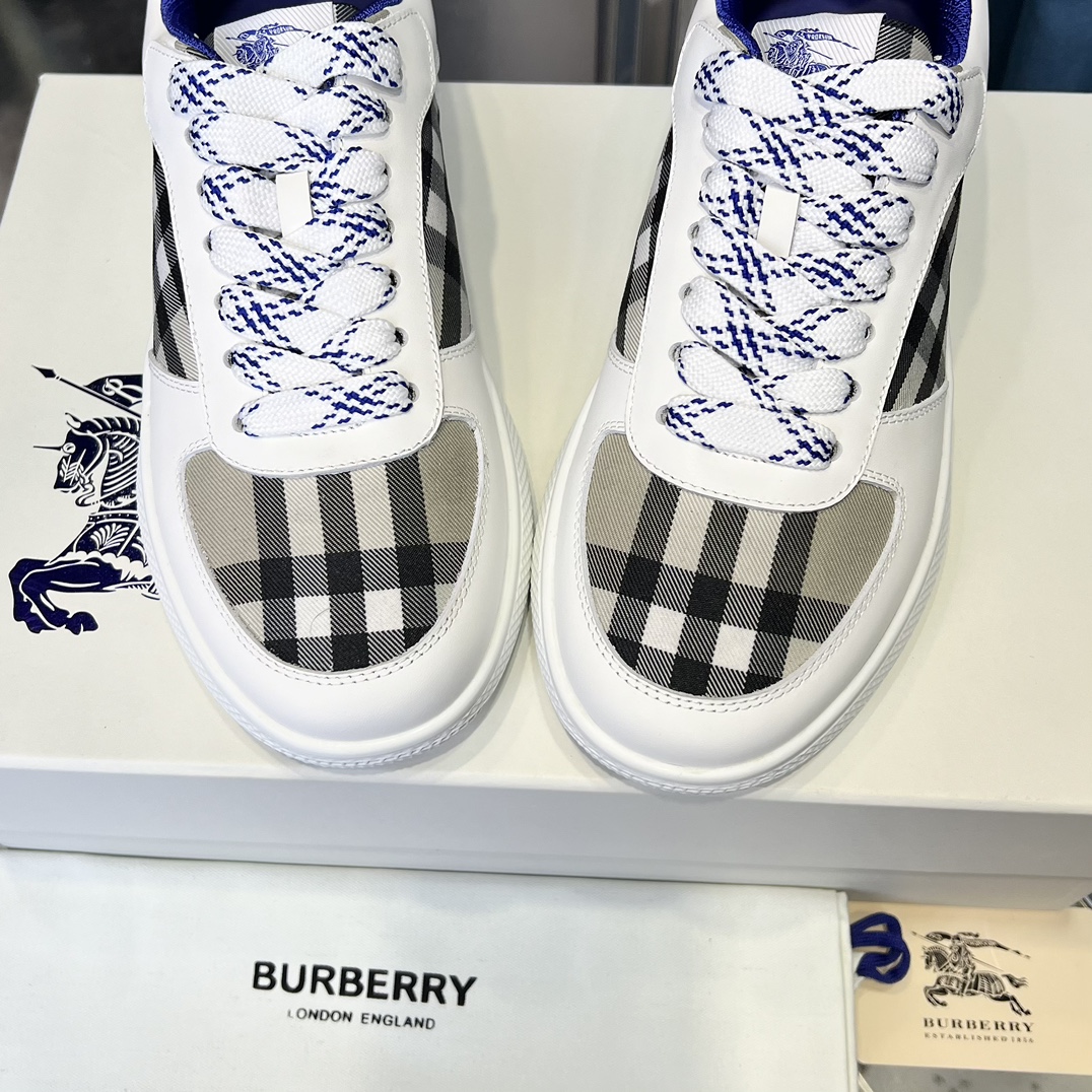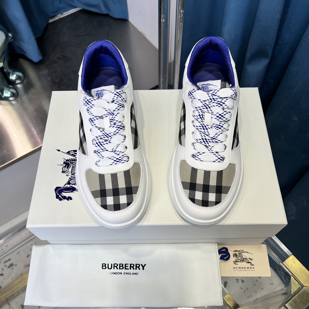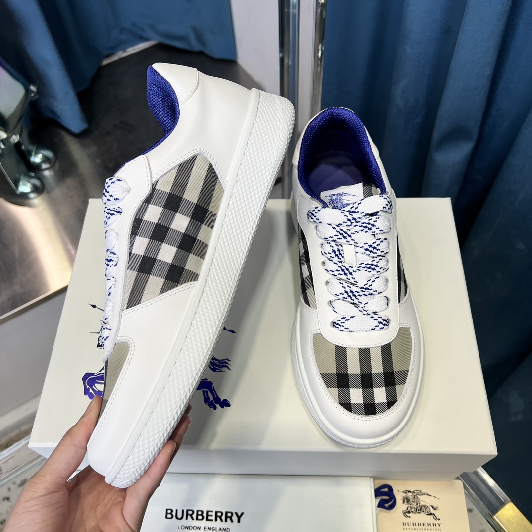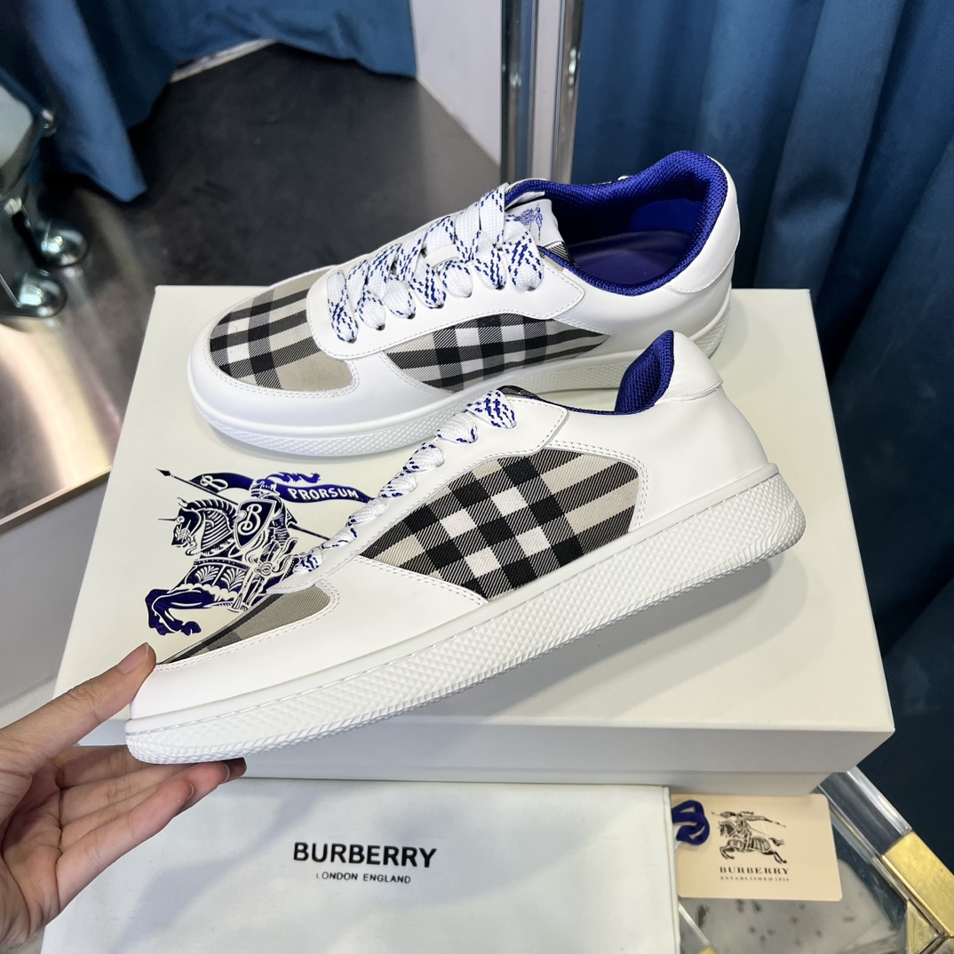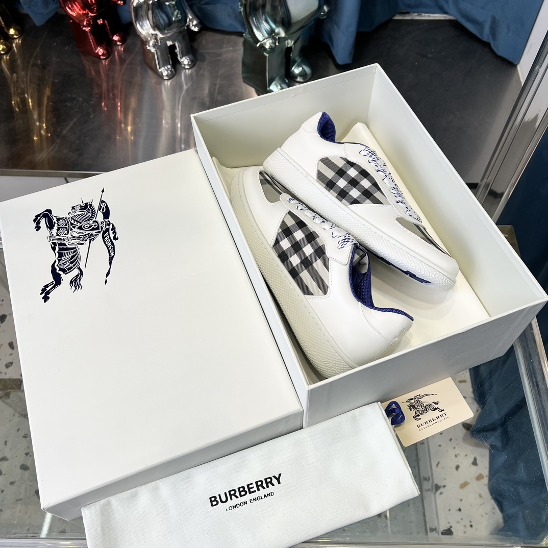 Top-grade Dongguan-made 【BURBERRY】 Upper: Imported Napa calfskin, brand图腾cloth, tongue brand cloth label Lining: Canvas lining, insole; water-stained cowhide Outsole: Ultra-light TPR rubber; dual-color molded outsole High-quality control·Fine workmanship: Highlights (high-end·luxurious·grade) Size: 38-44 (men's 45, customizable)