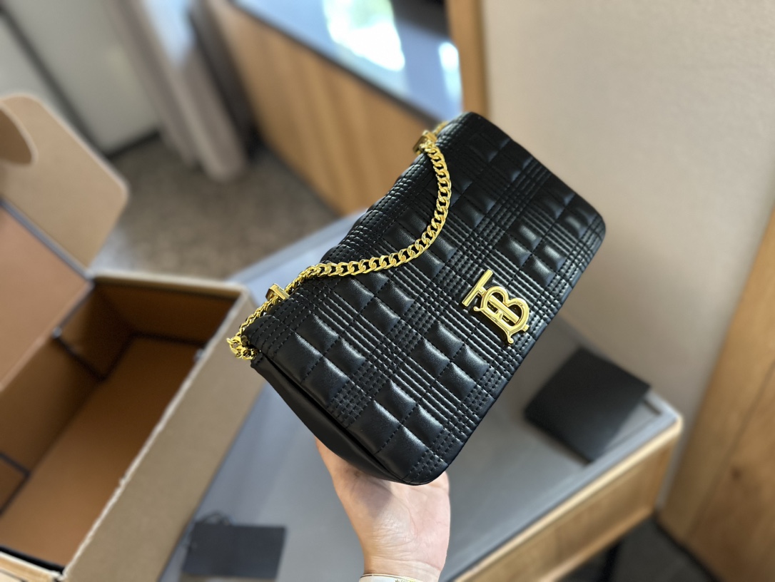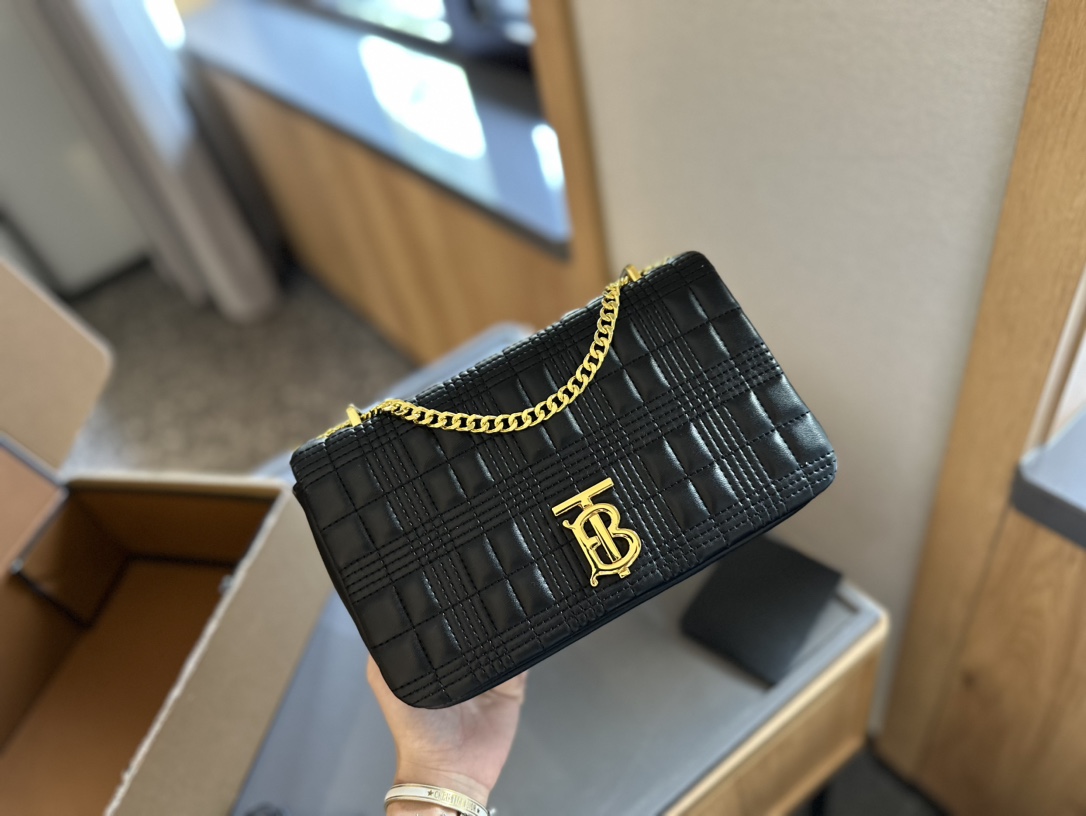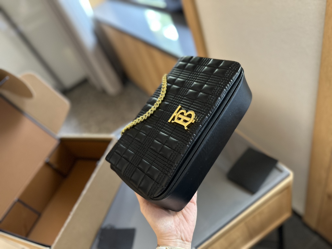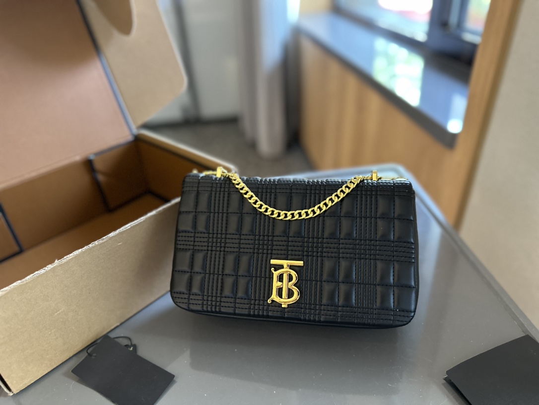 Burberry TB Box Calfskin Quilted Bag with metal clasp, luxurious design, popular style. Size: 23x12cm.
