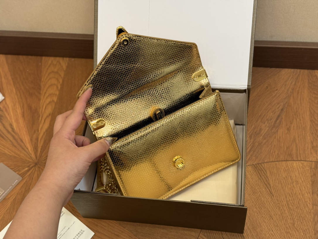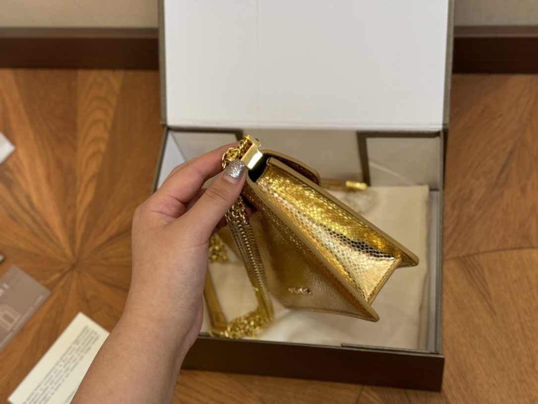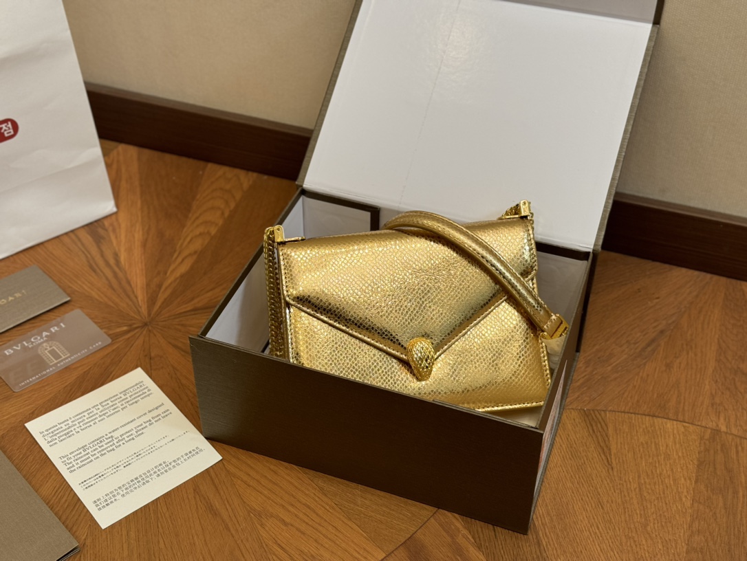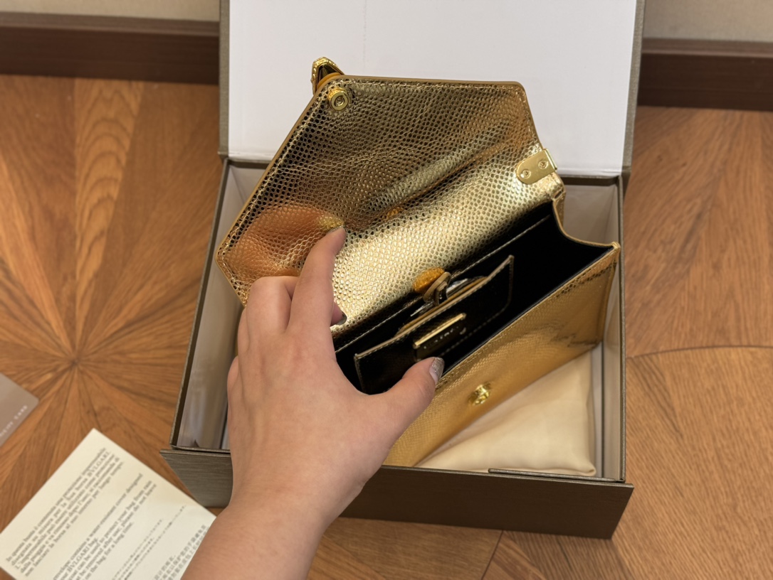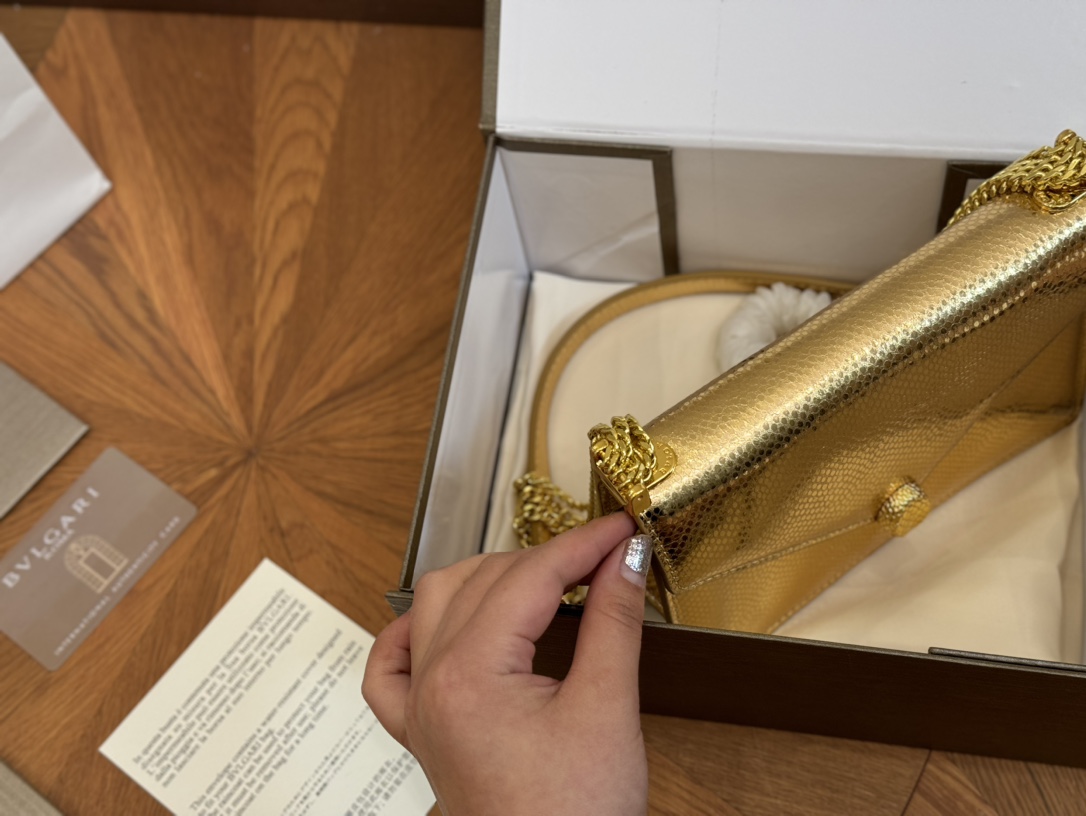 Bvlgari Classic Foldable Box, 19.13cm. Genuine leather, imported snakehead clasp, snake bone chain.