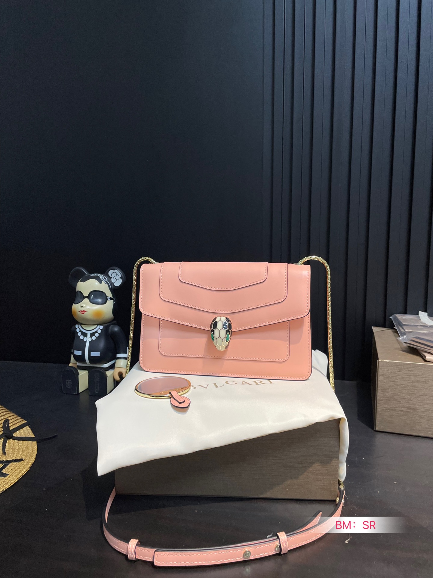 Comes with folding gift box Bvlgari Classic Calfskin quality Imported snakehead hardware buckle Great texture, very versatile Snake bone chain Dimensions: 22*14