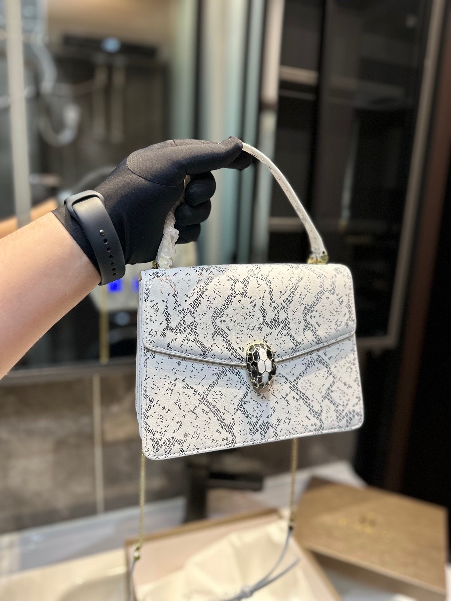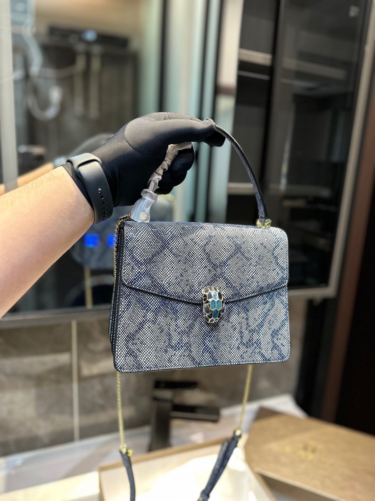 Bvlgari Serpenti bag continuously innovates with new colors and styles, maintaining a luxurious and exquisite presence in the handbag world. Its elegant design is visually stunning. Size: 21x16.
