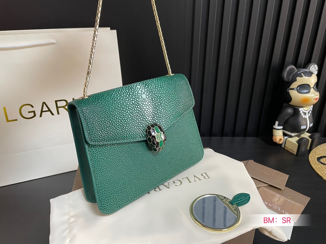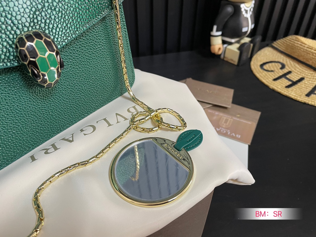 Bvlgari Serpenti bag with folding gift box, continuously innovating with new colors and styles. Exudes luxury and elegance, visually stunning. Dimensions: 20*14.