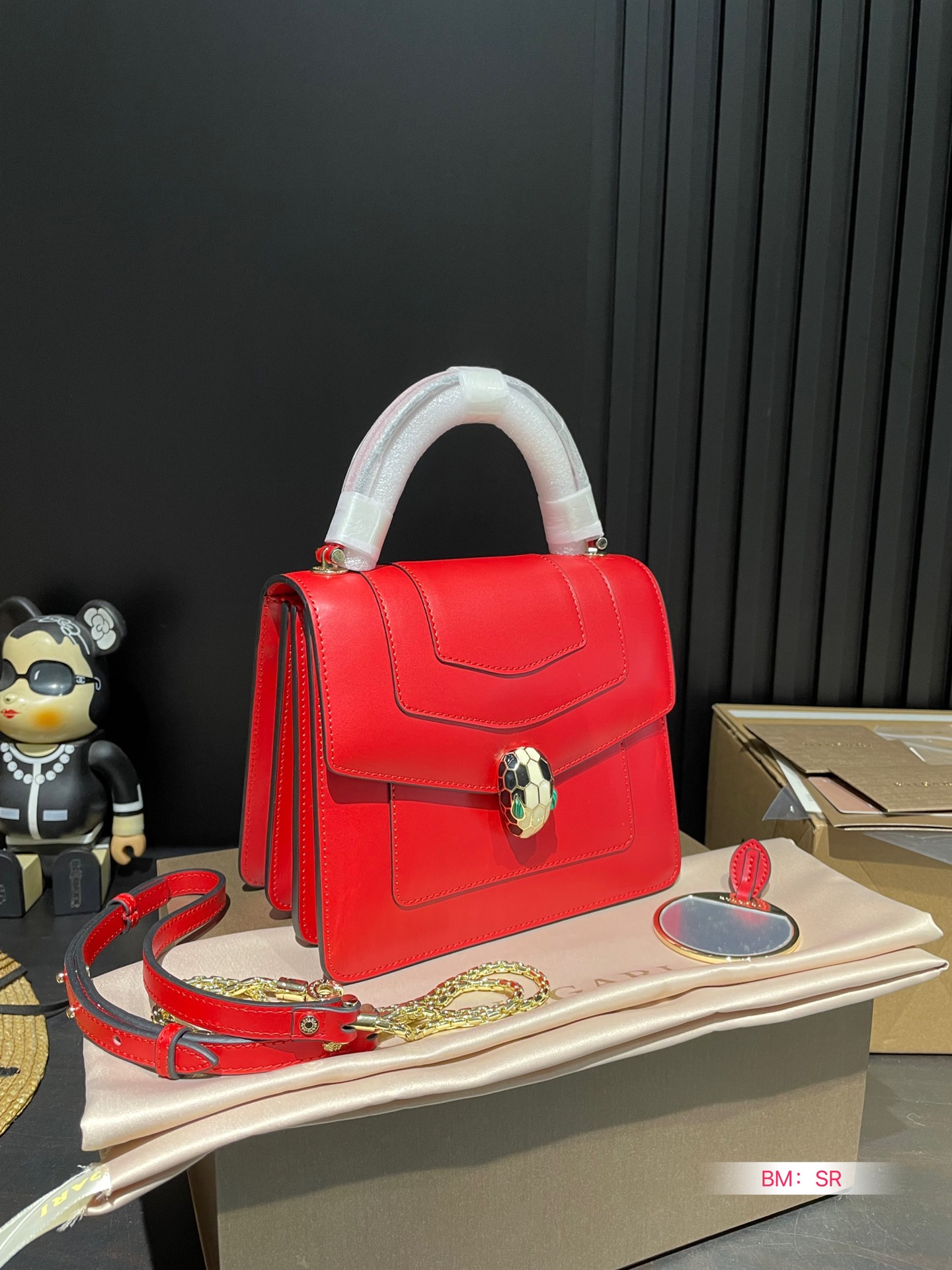 Bvlgari Serpenti bag with folding gift box, continuously innovating with new colors and styles. Exudes luxury and elegance, visually stunning. Dimensions: 20*17.