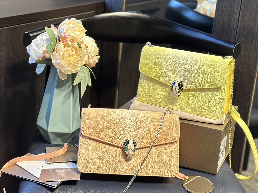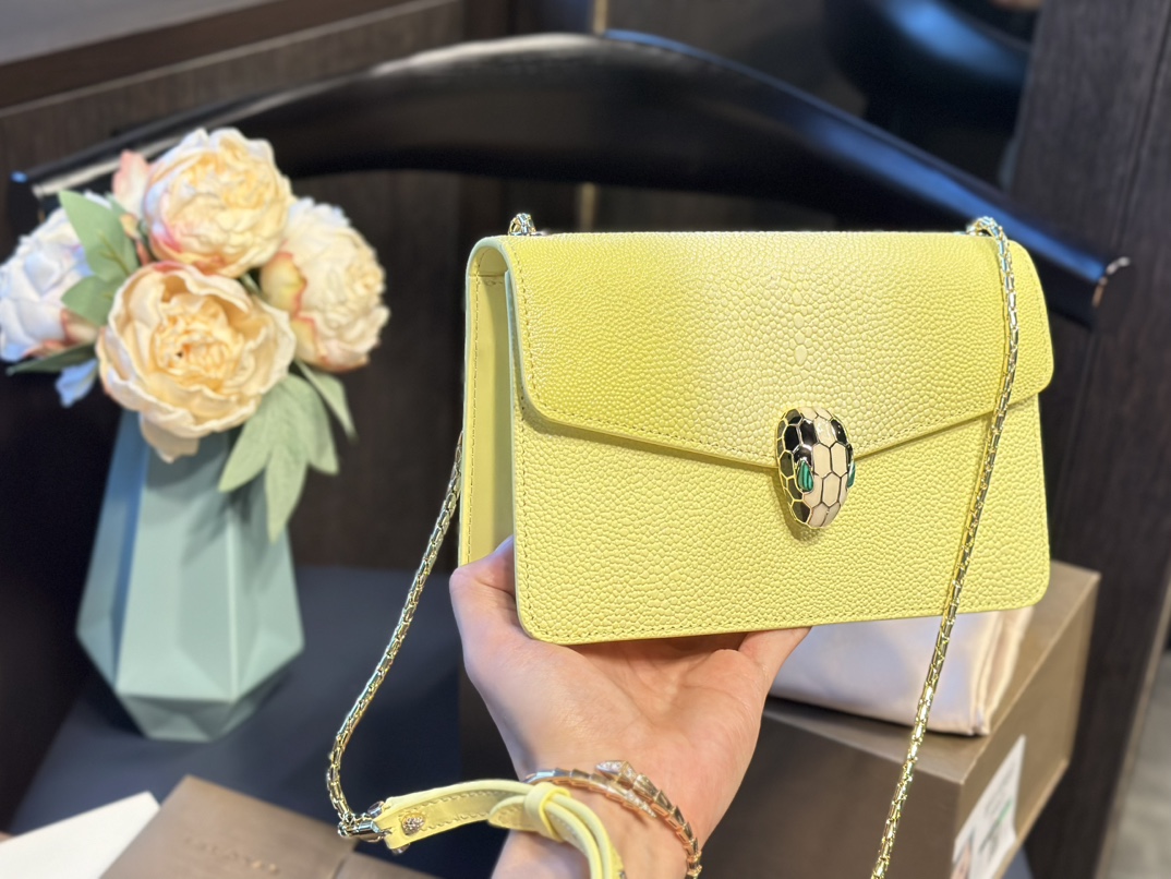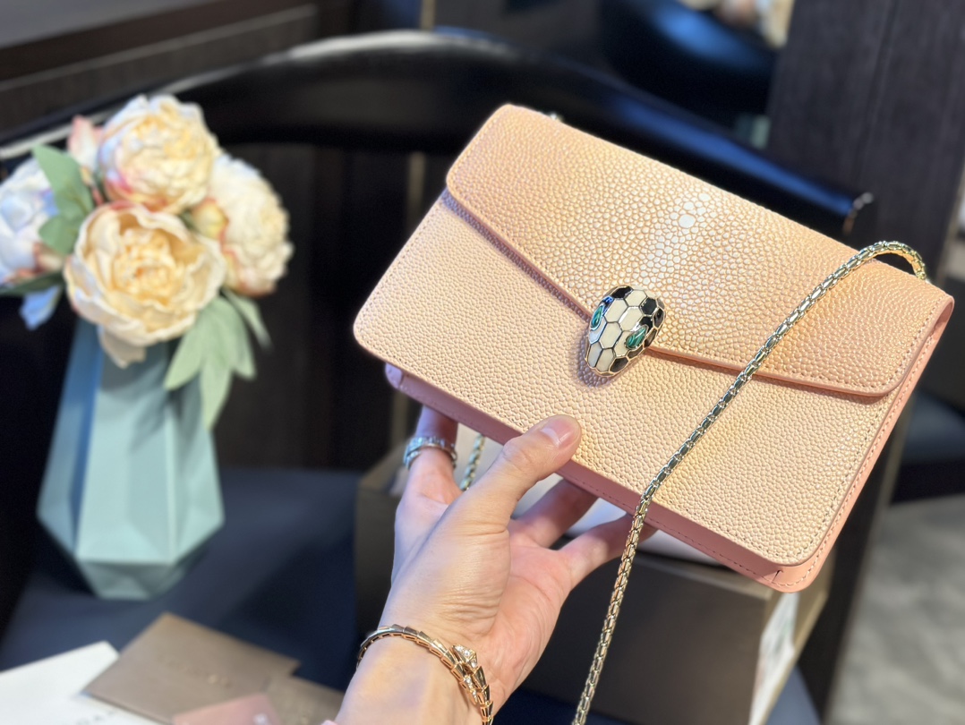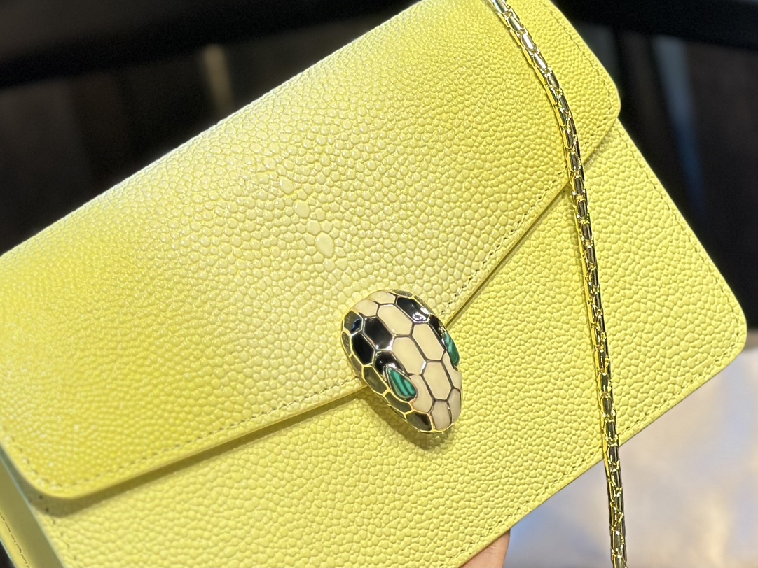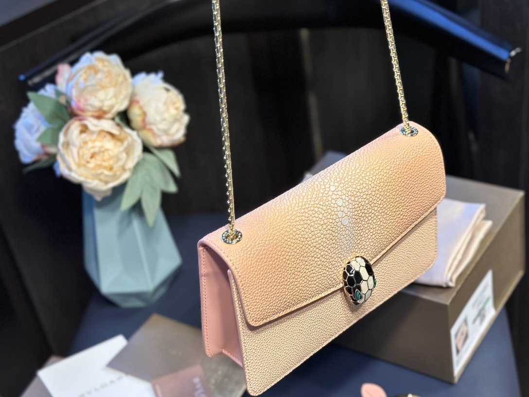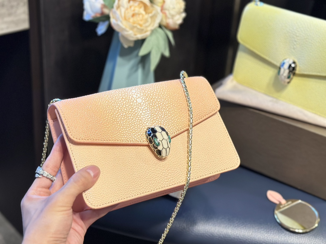 Bvlgari small enamel chain bag, genuine leather, with mirror, gift box, and certificate. Serpenti in Love series, 22cm.