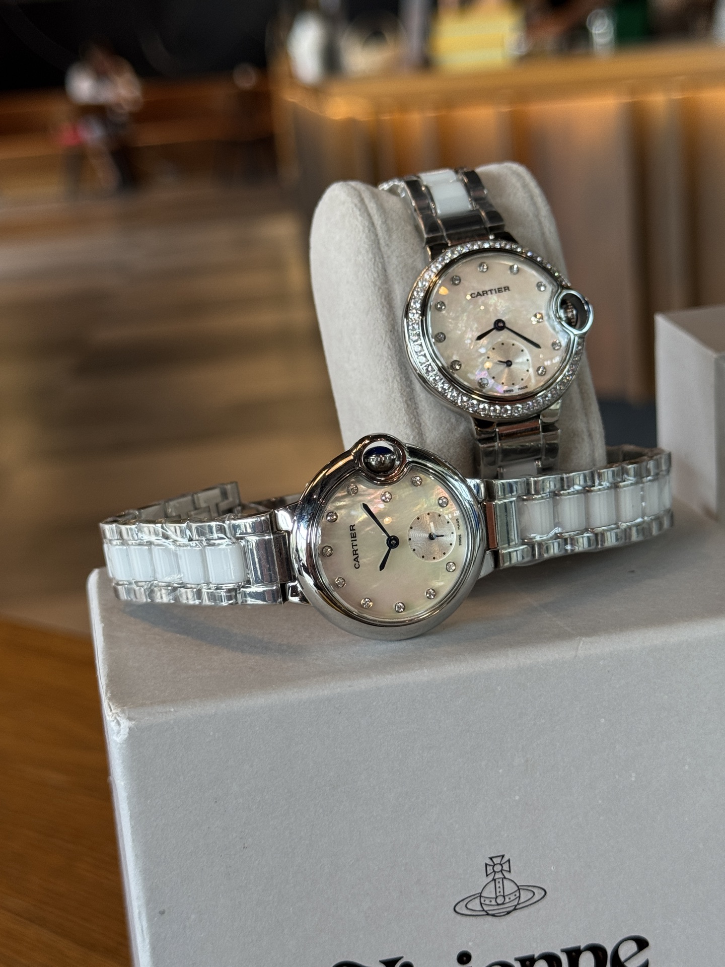 A masterpiece of Cartier Blue Balloon, an exquisite 33mm quartz watch, traditional three-hand design, starry sky operation, time flowing, special process diamond setting, personality, perfect, with fisheye sapphire glass using Swiss original Swiss quartz movement, accurate timekeeping, imported high-gloss cowhide strap, original folding buckle, recognized high-quality full set of packaging with wearing warranty card and tag.